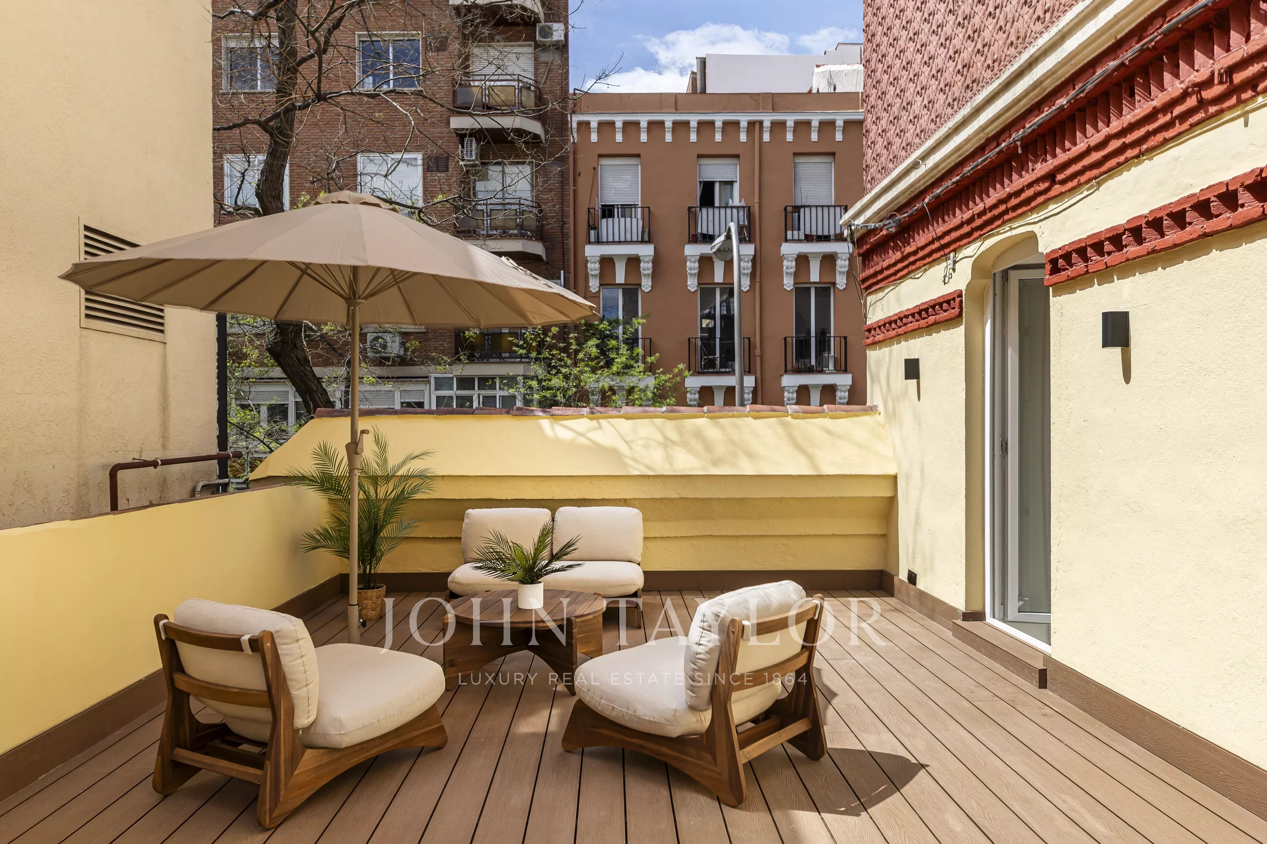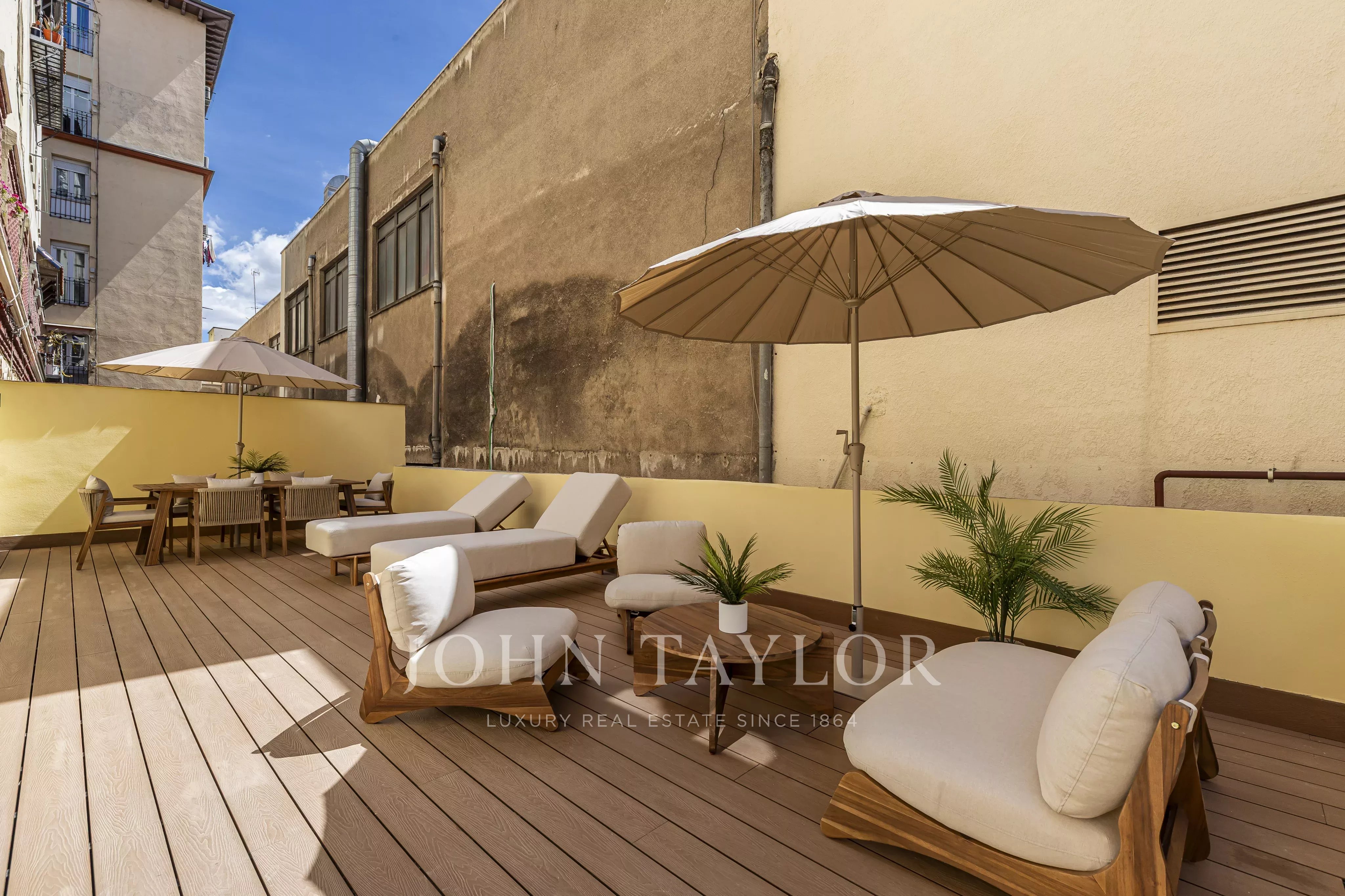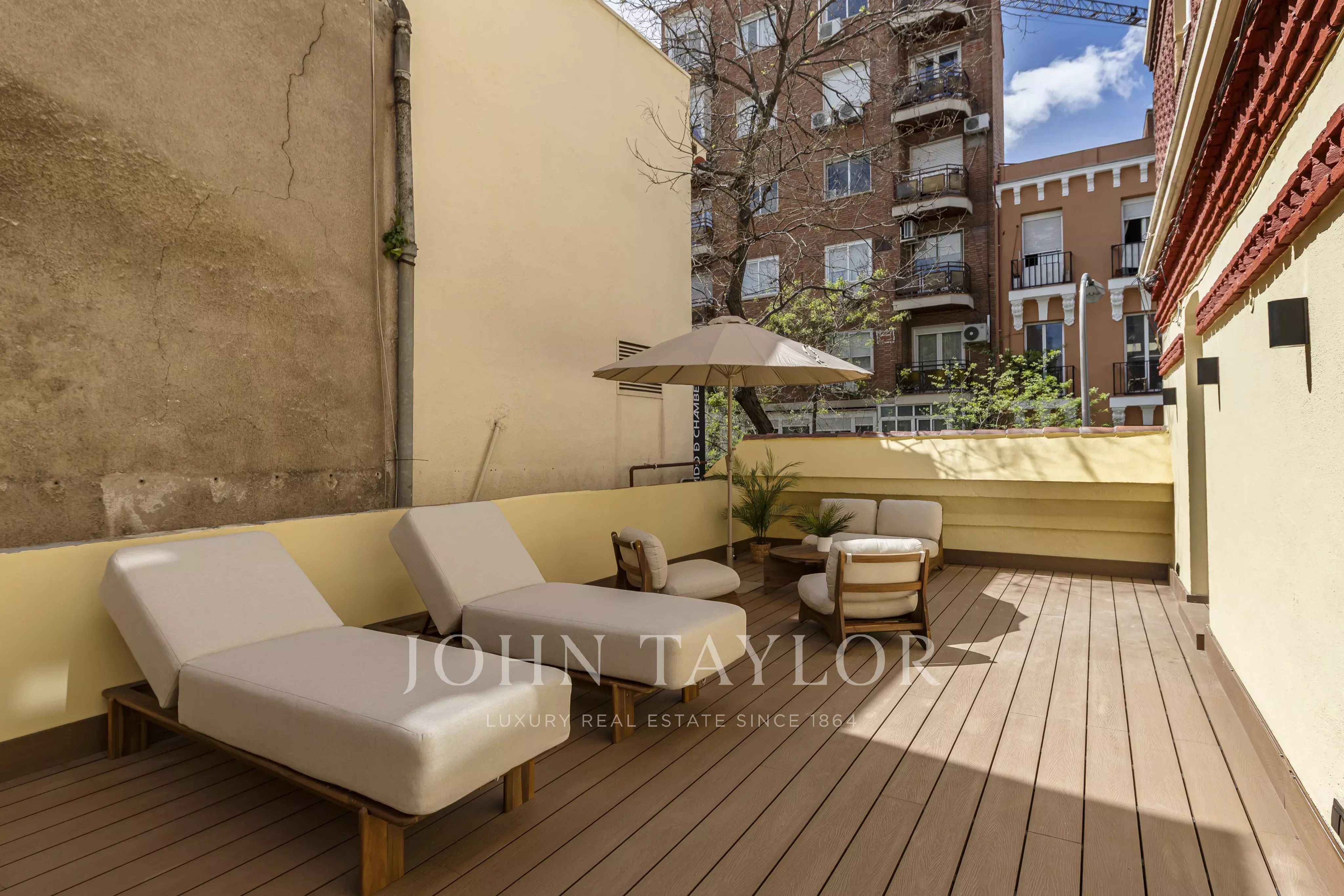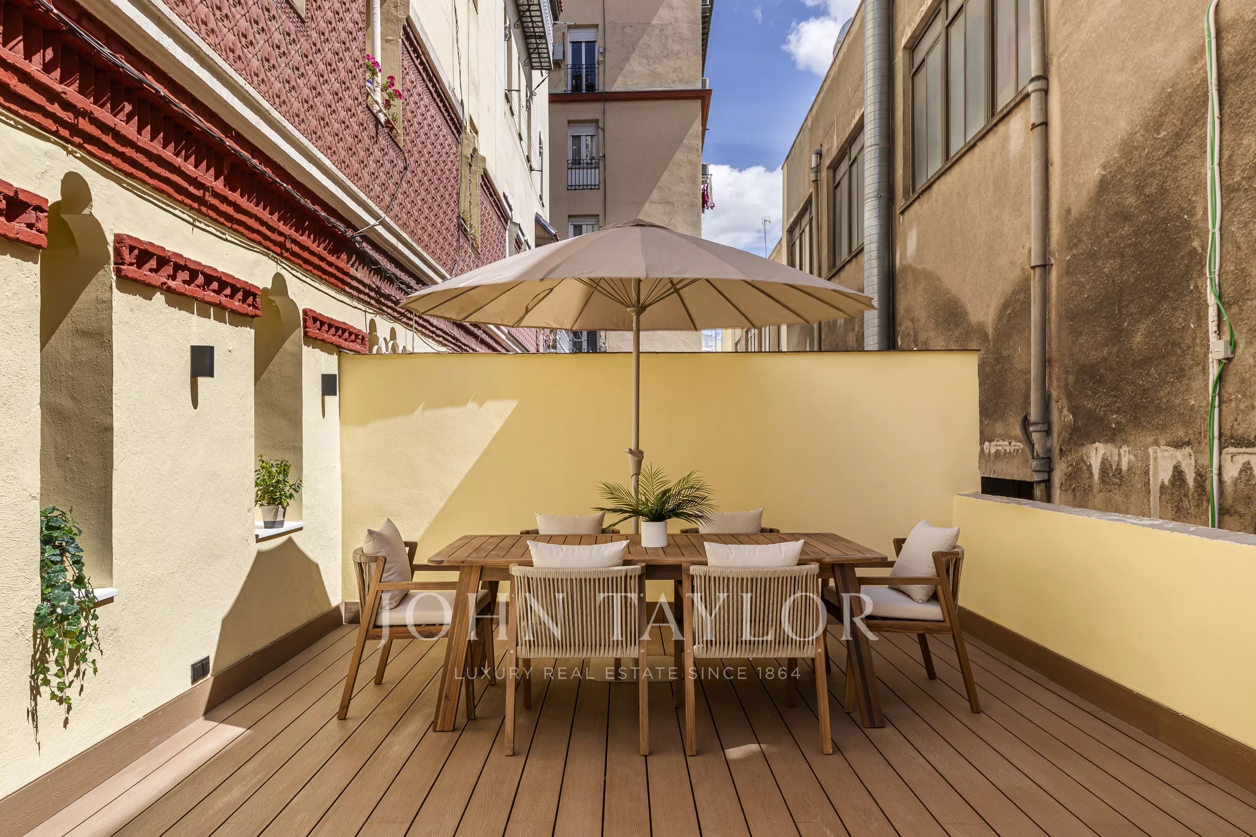 La grande terrasse privative est un véritable havre de paix en plein cœur de la ville, idéale pour se détendre ou recevoir des amis. L’appartement est vendu entièrement meublé, il ne vous reste qu’à poser vos valises et profiter de la vie madrilène dans un des quartiers les plus prisés de la capitale espagnole.