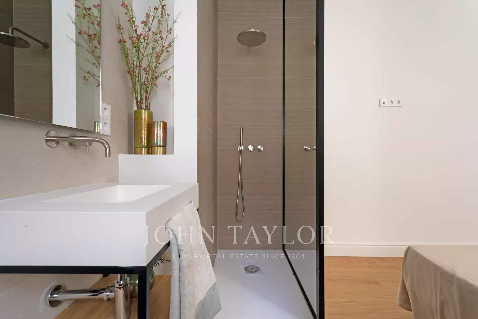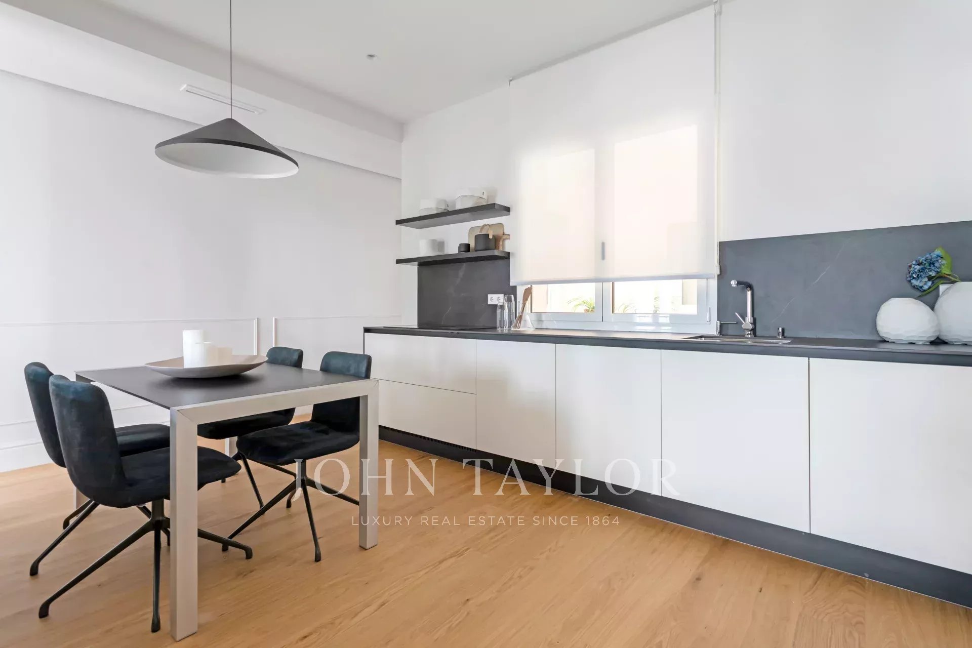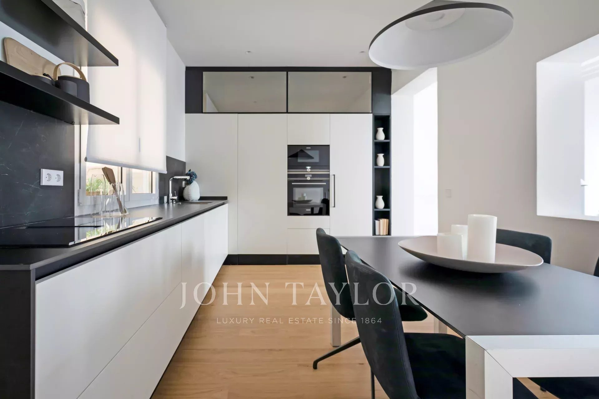 L'intérieur de la propriété a été entièrement rénové selon des normes élevées, en respectant l'essence de l'espace et en améliorant la lumière naturelle. Chaque détail a été soigneusement sélectionné pour offrir une ambiance sophistiquée et confortable d'une élégance intemporelle.
