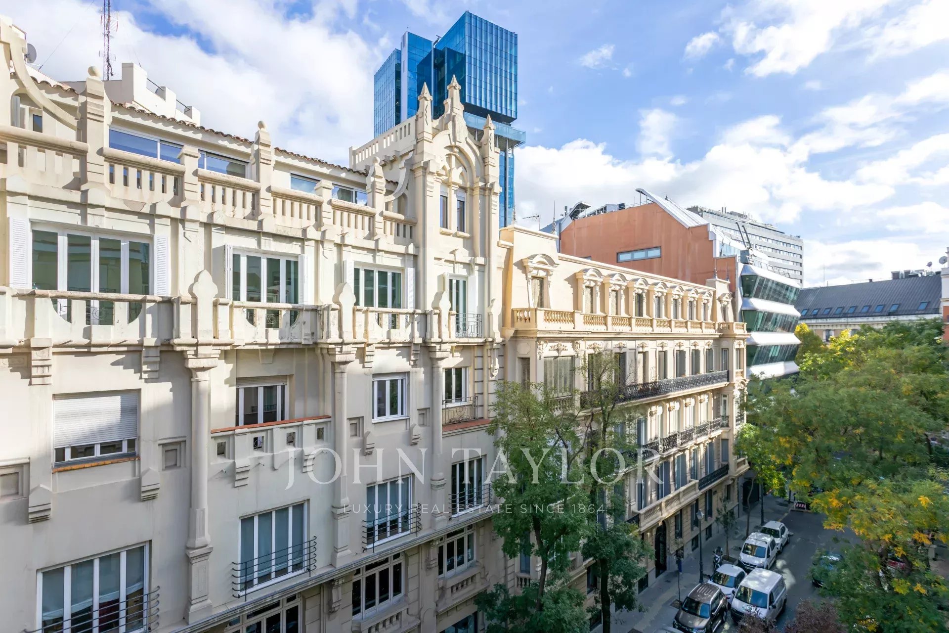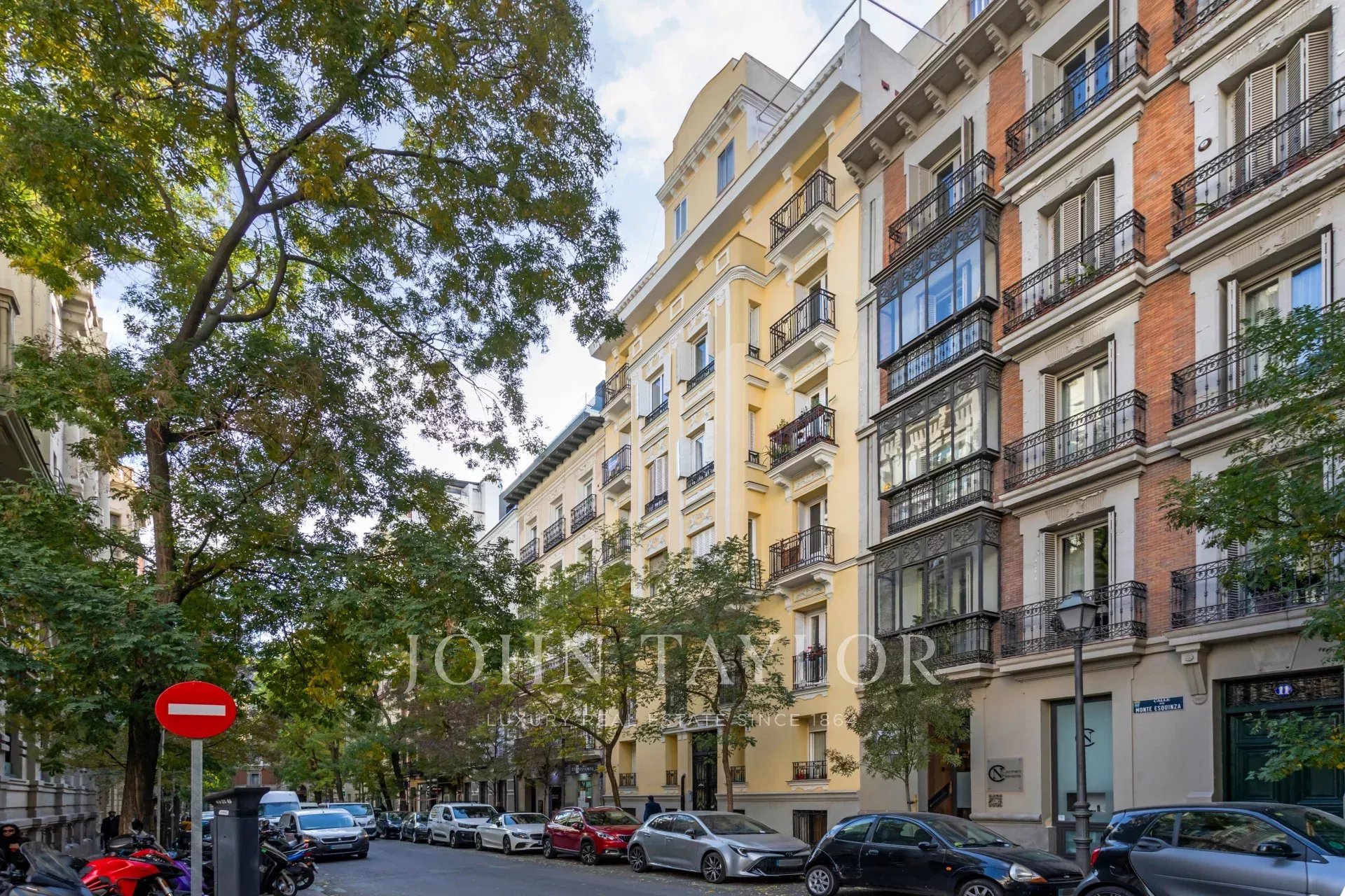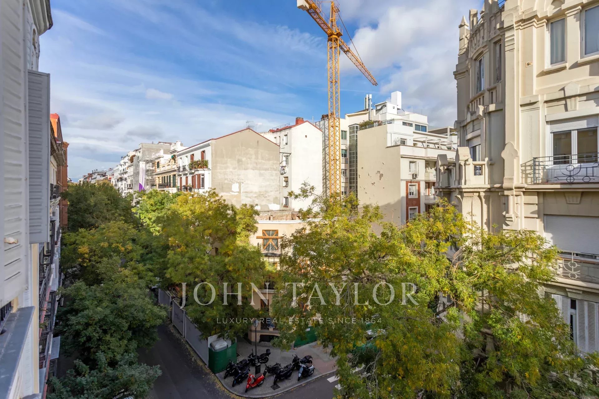 Nous vous présentons cette magnifique propriété récemment rénovée, située dans l'un des quartiers les plus recherchés et les plus élégants de Madrid : le quartier d'Almagro. Située au cinquième étage d'un immeuble des années 1920 à l'architecture classique et à la belle façade, cette luxueuse propriété offre un équilibre parfait entre le charme historique et le confort moderne.