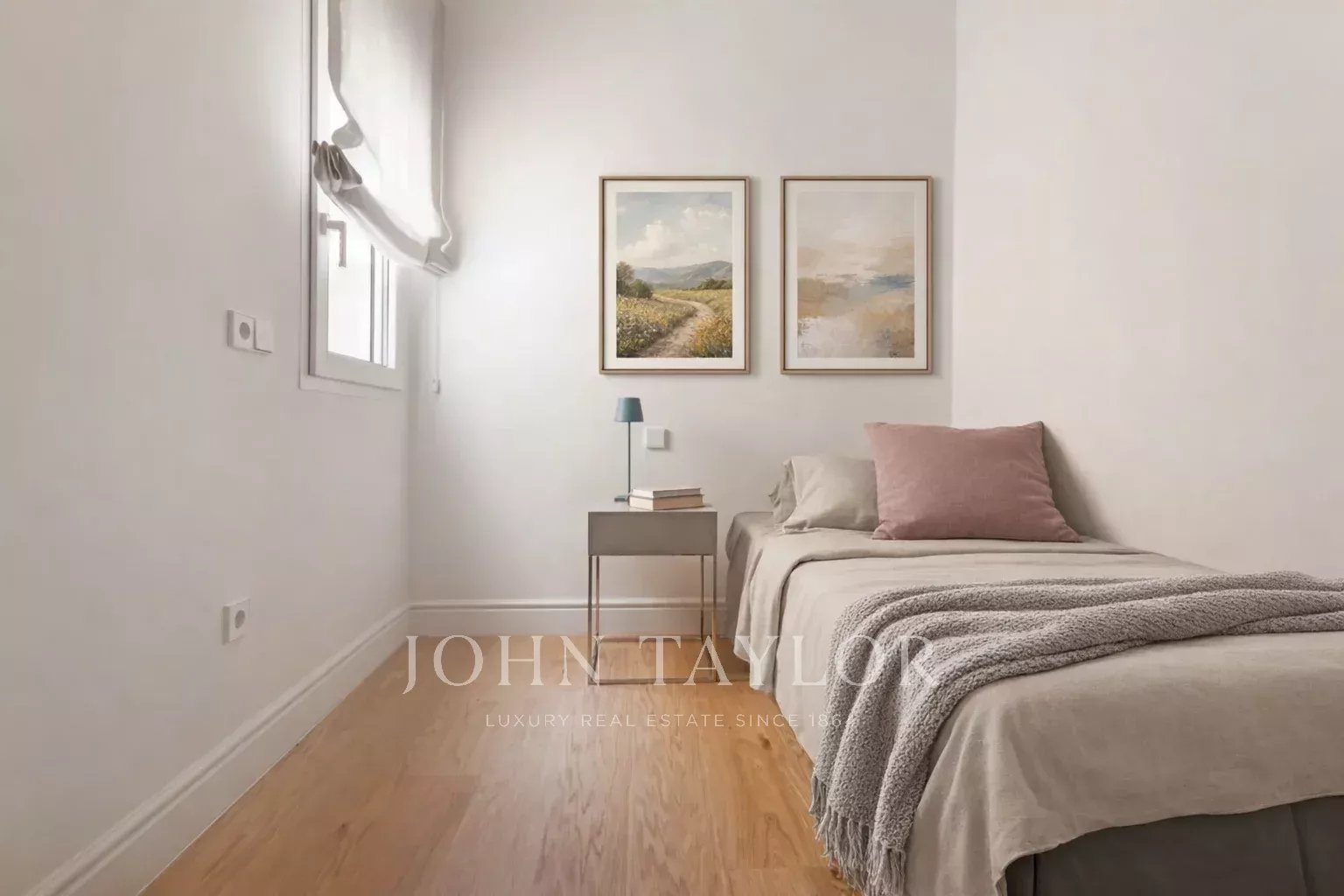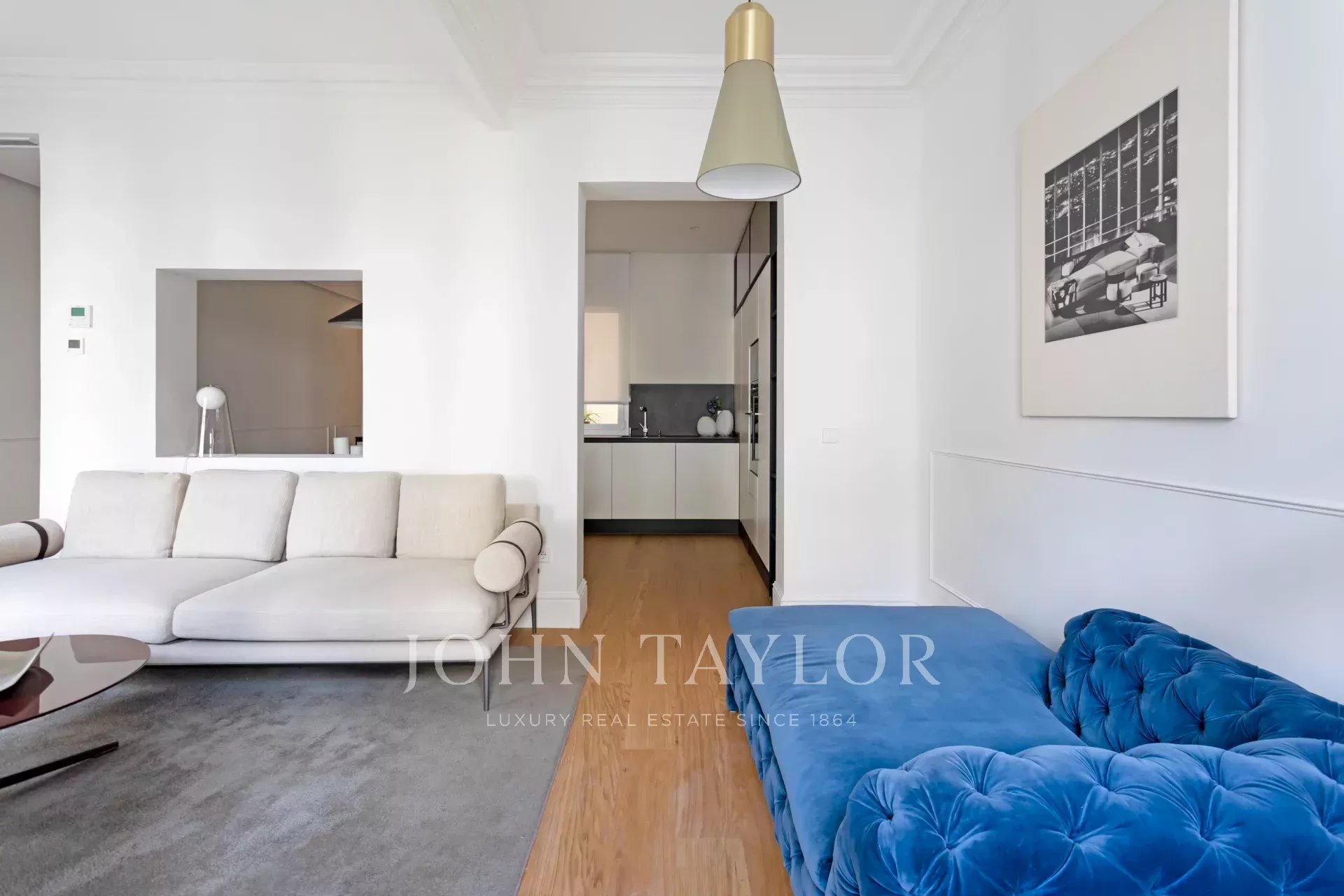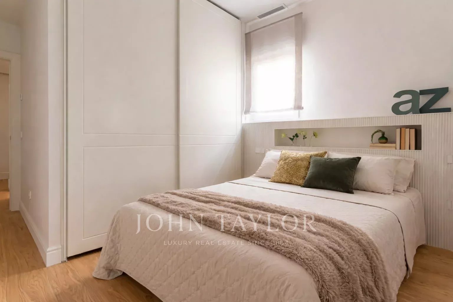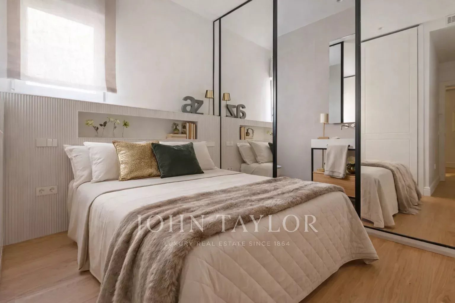 Nous vous présentons cette magnifique propriété récemment rénovée, située dans l'un des quartiers les plus recherchés et les plus élégants de Madrid : le quartier d'Almagro. Située au cinquième étage d'un immeuble des années 1920 à l'architecture classique et à la belle façade, cette luxueuse propriété offre un équilibre parfait entre le charme historique et le confort moderne.