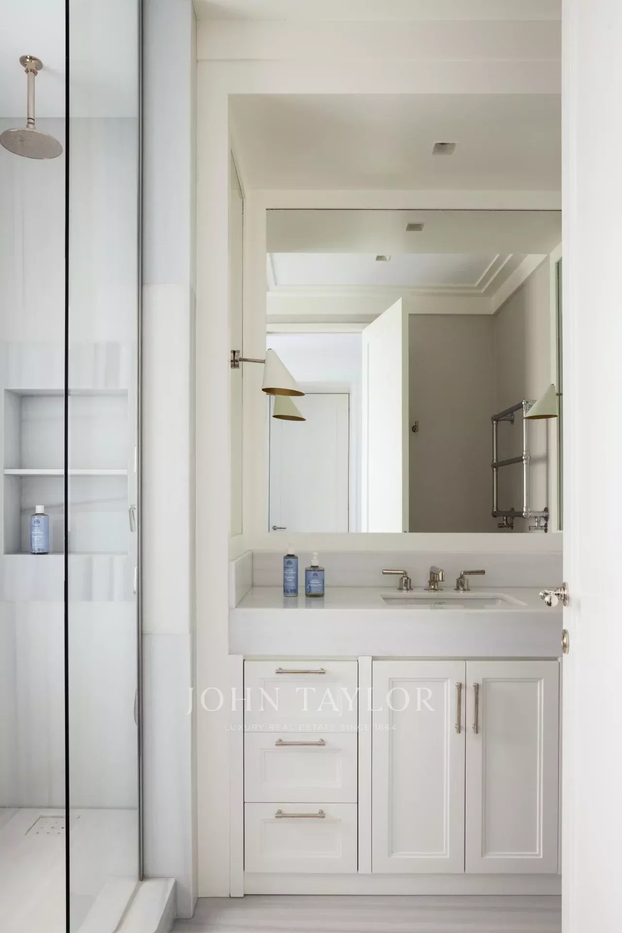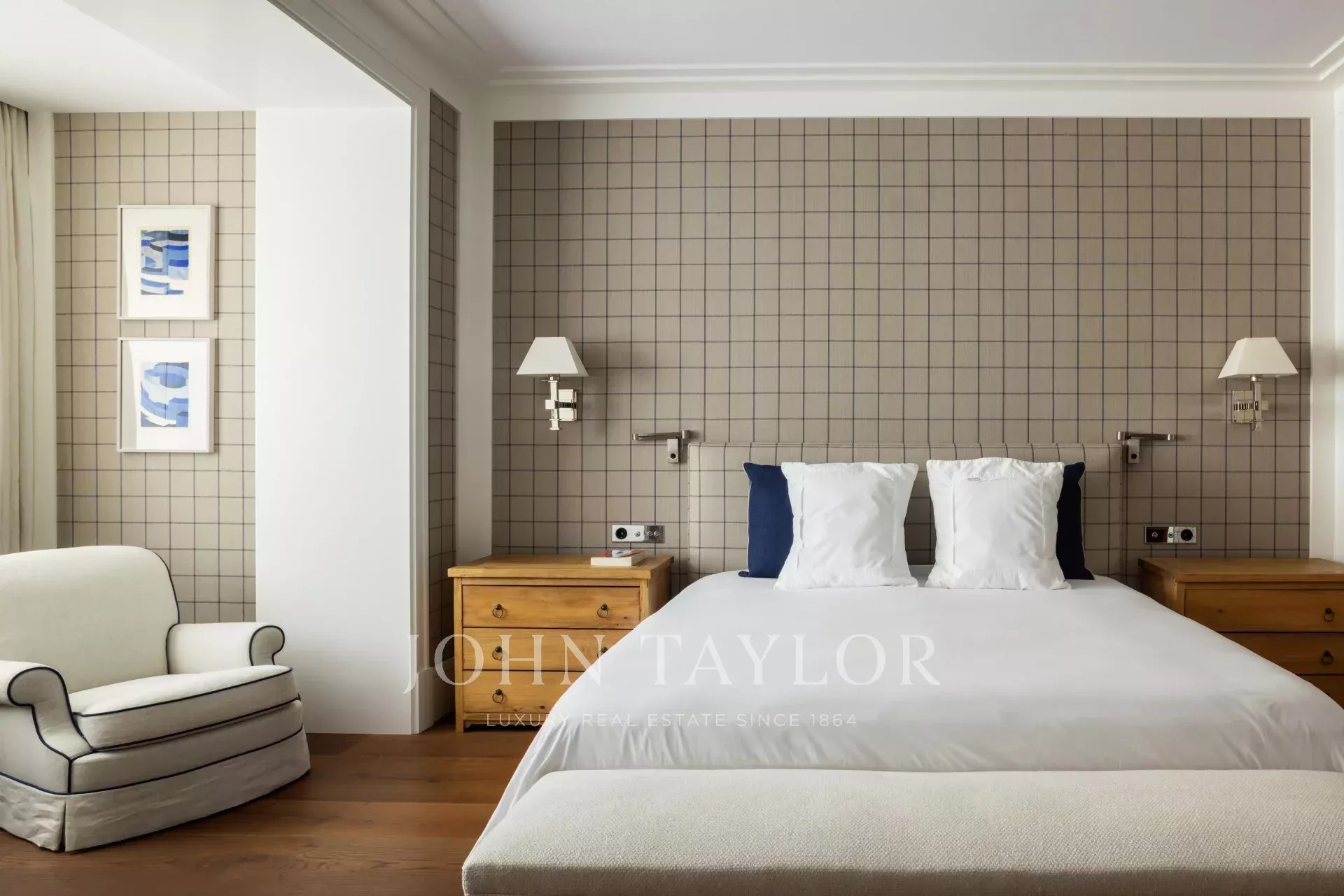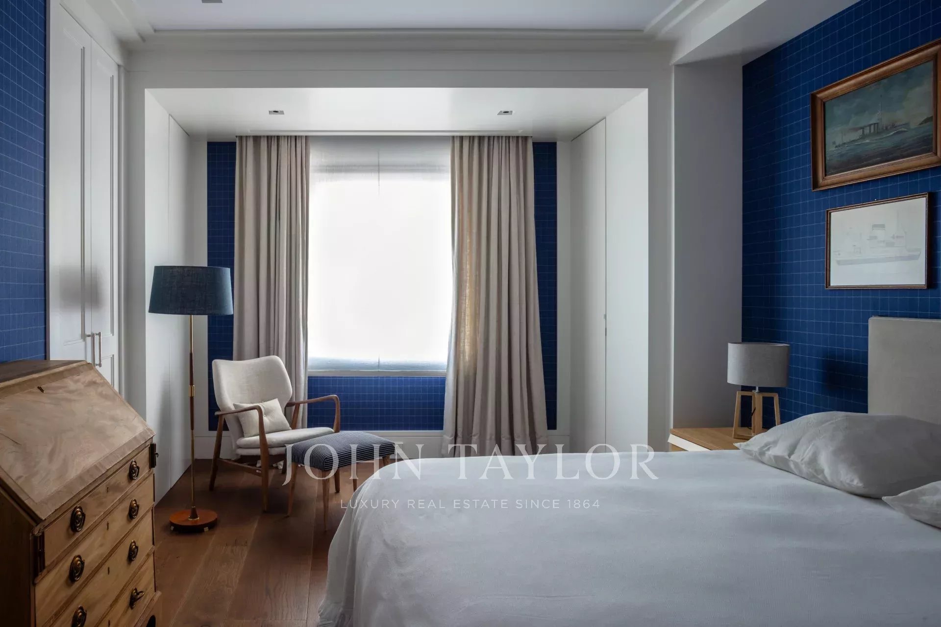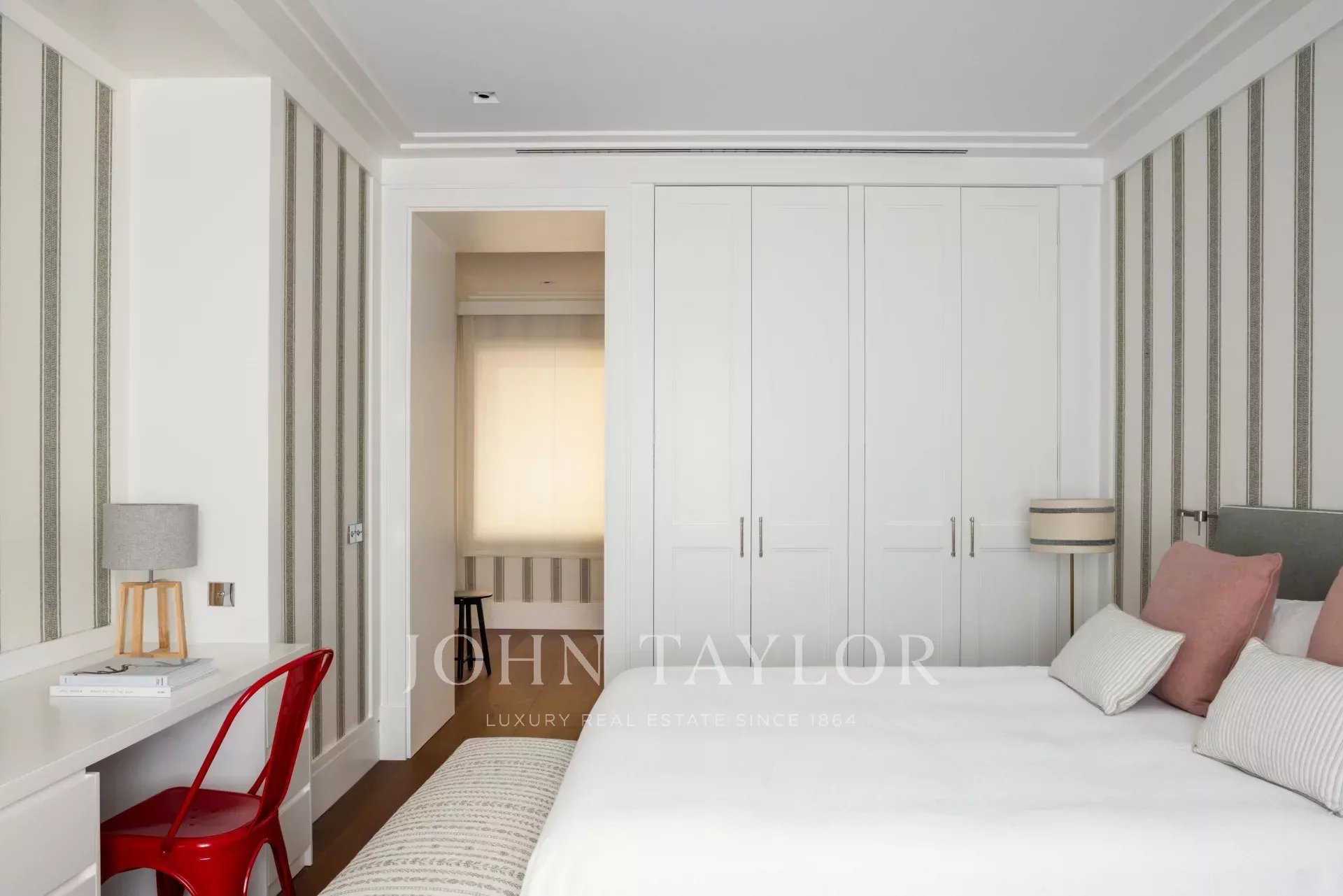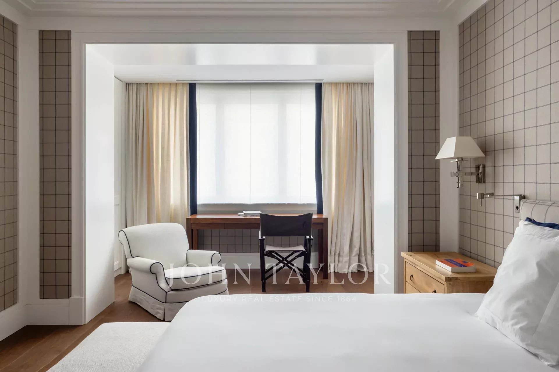 Il y a trois chambres supplémentaires, toutes avec salle de bains, une chambre de bonne avec salle de bains, et une buanderie et un espace de repassage complets, équipés selon les normes professionnelles.