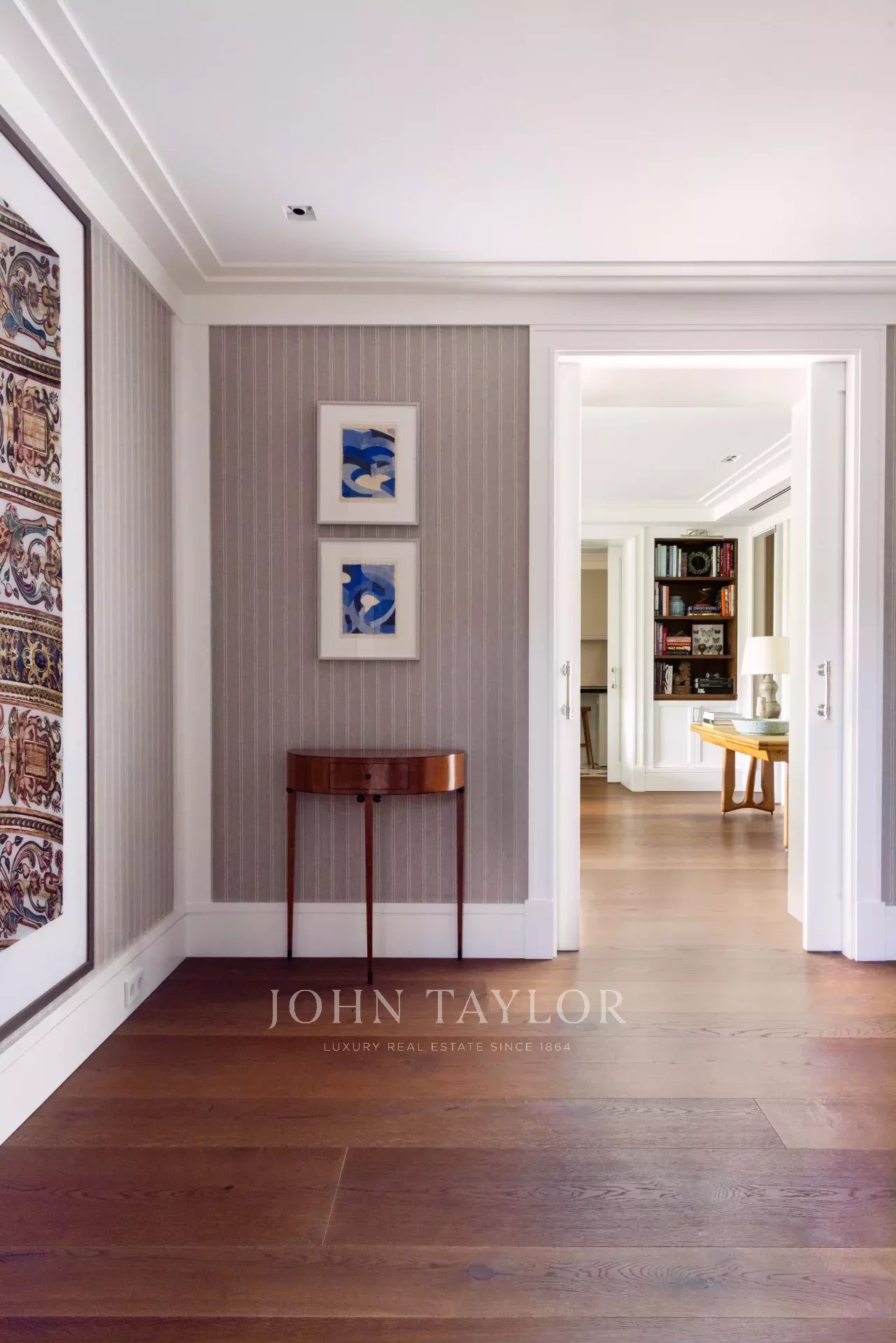 La partie jour est une succession d'espaces lumineux et enveloppants : un hall d'entrée de caractère, une salle à manger séparée, un grand séjour et un salon/bureau cosy, tous reliés par des portes coulissantes qui permettent de moduler l'intimité avec une fluidité absolue.