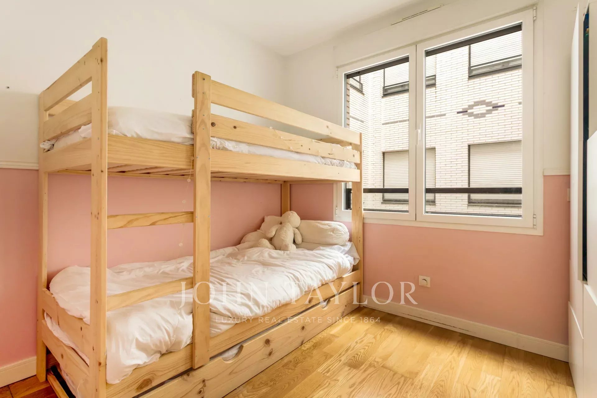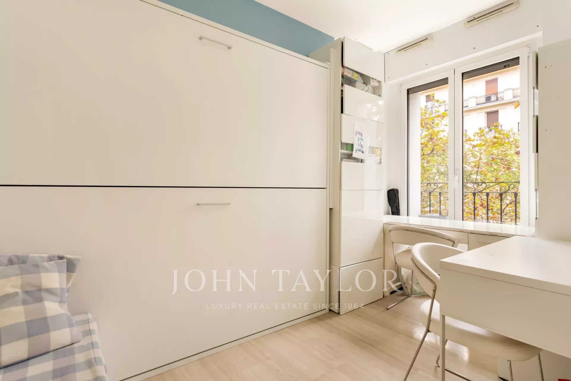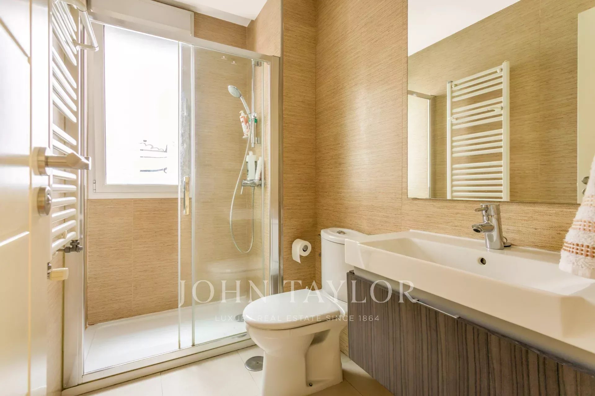 Cet agréable appartement comprend un total de trois chambres à coucher ainsi que deux salles de bains, dont une en suite. L'acquéreur pourra l'adapter à ses goûts personnels en revenant à la configuration d'origine (suppression de la troisième chambre extérieure pour retrouver le grand séjour d'origine avec deux balcons).