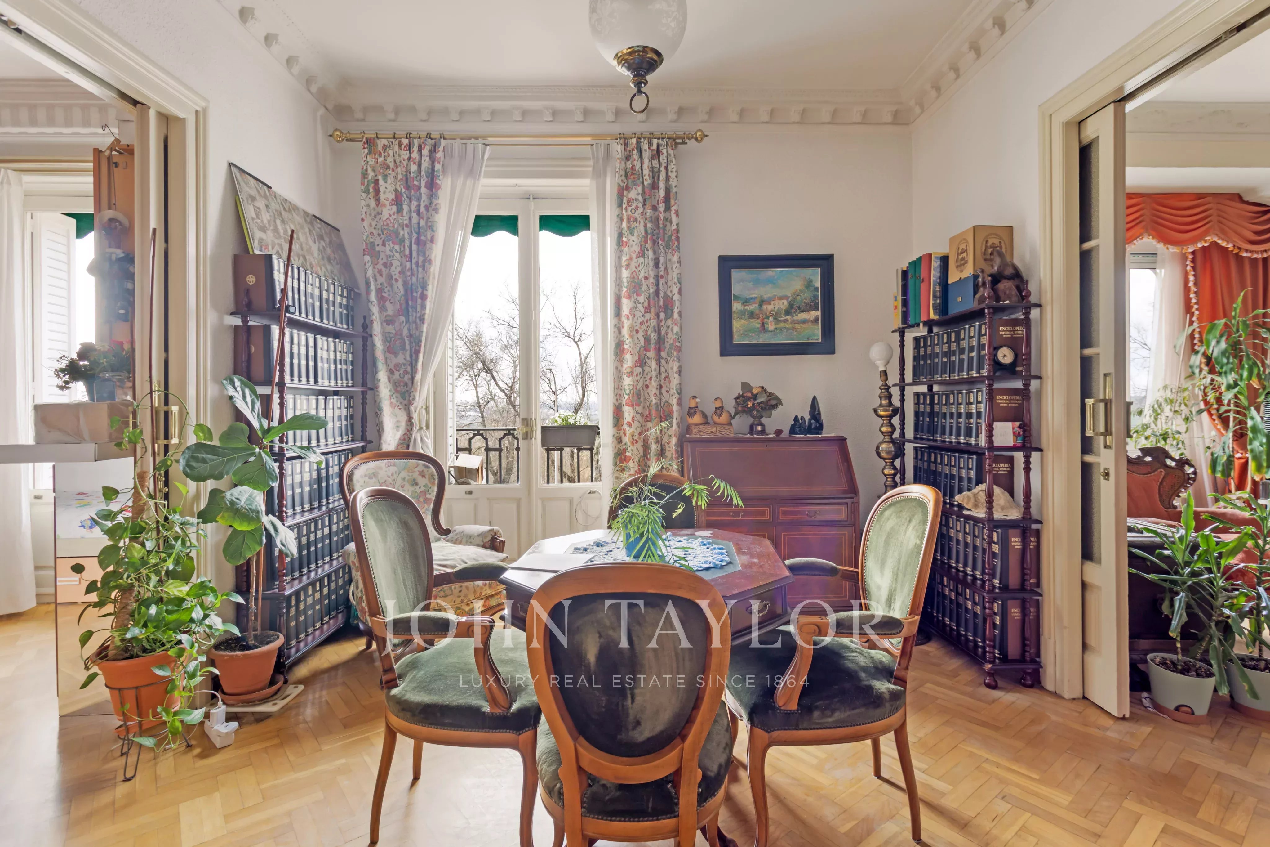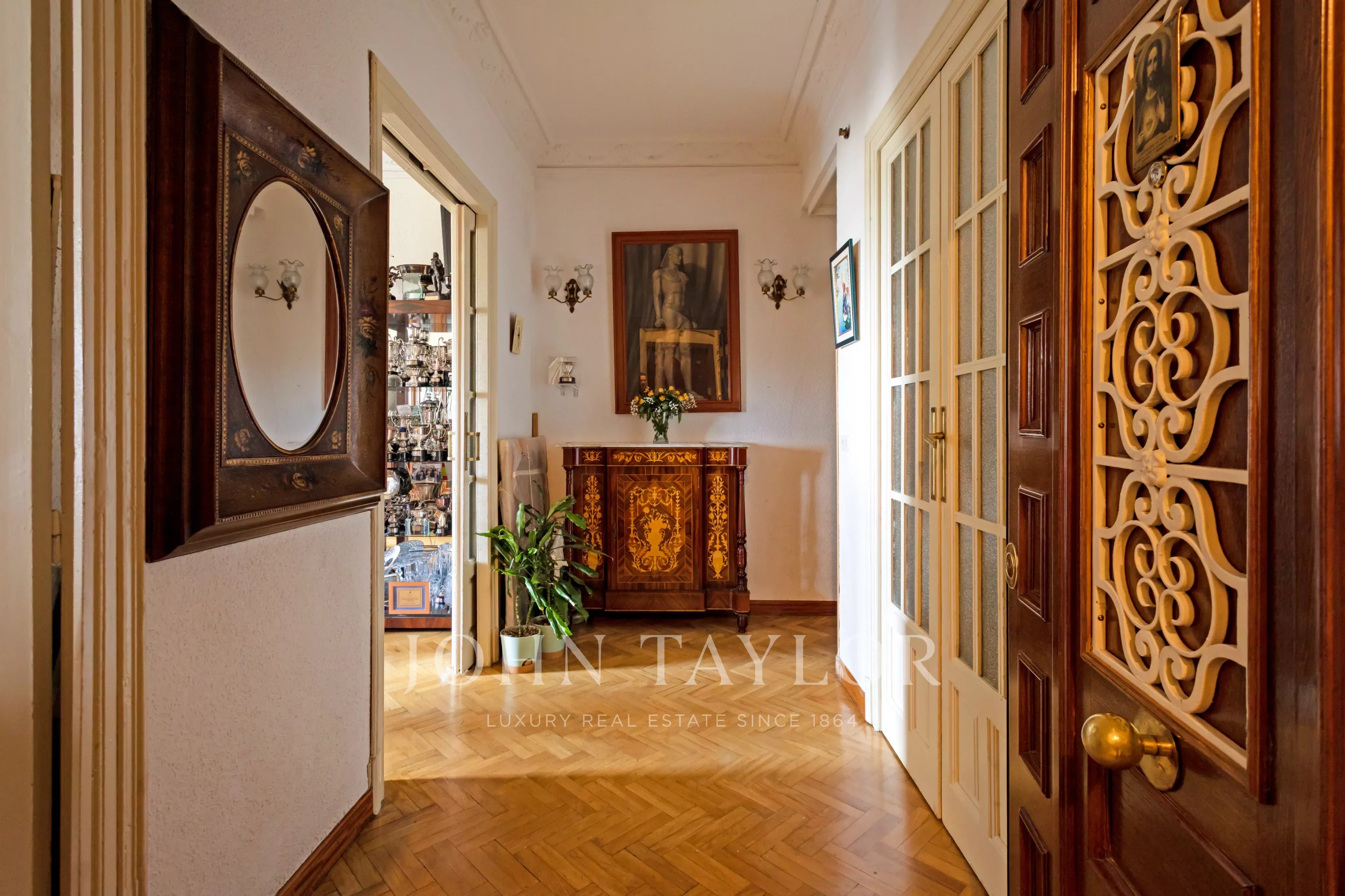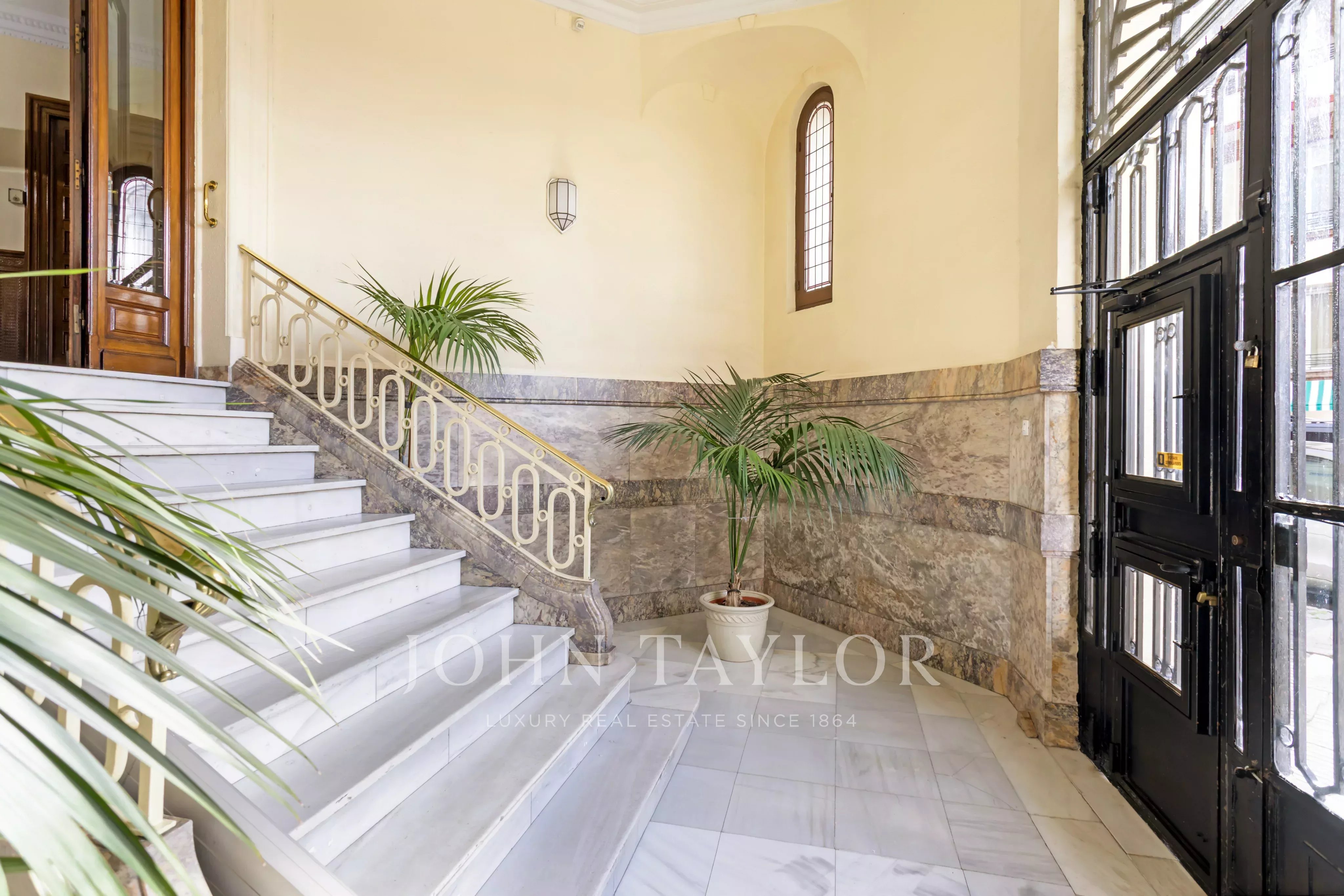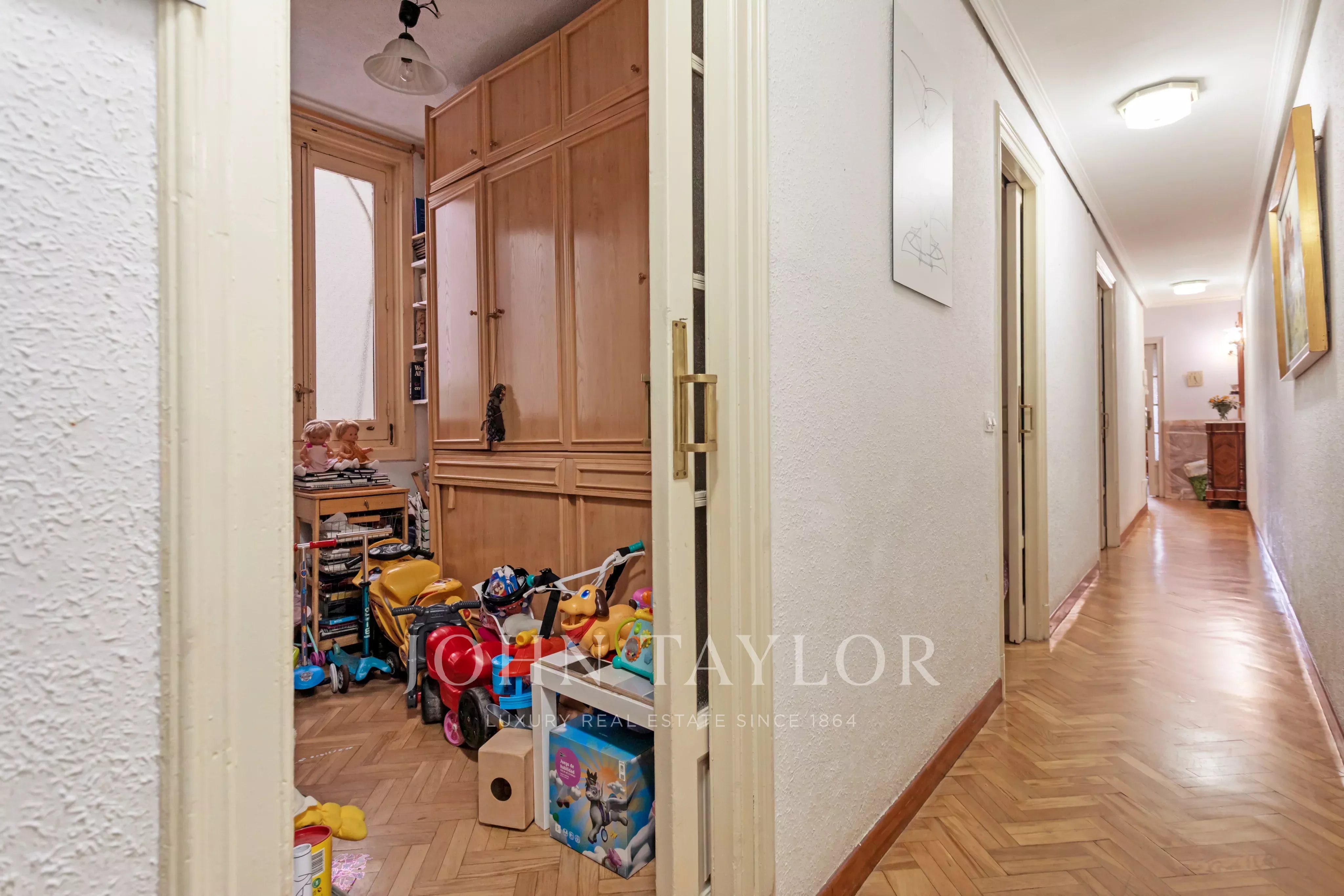 La propriété se distingue par son caractère majestueux, ses hauts plafonds, ses moulures classiques et son architecture qui évoque l'élégance d'un authentique appartement palatial. Le salon, spacieux et baigné de lumière naturelle, s'ouvre sur d'imposants balcons avec vue directe sur le parc, un espace protégé qui garantit une intimité absolue et des vues inaltérables dans le temps.