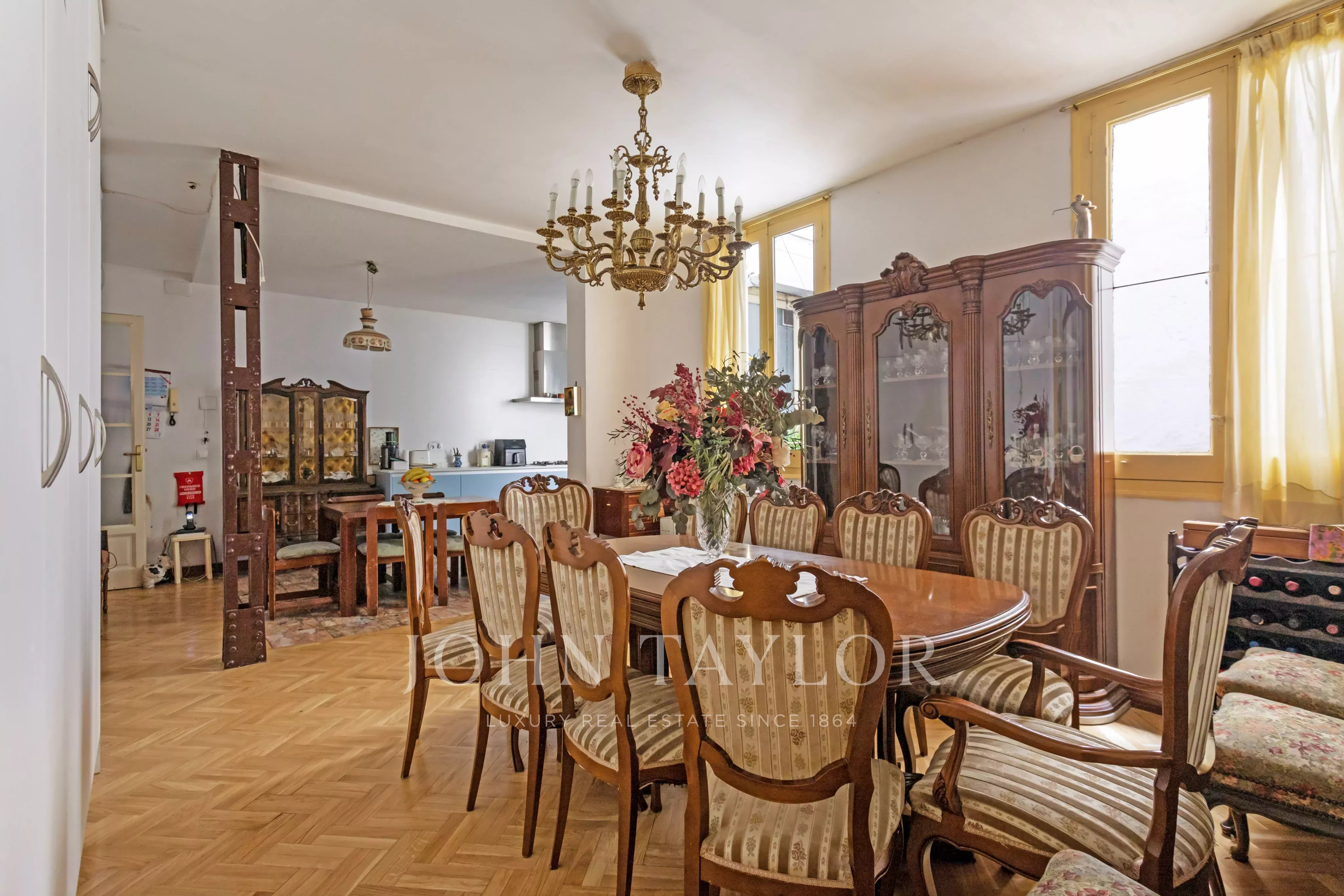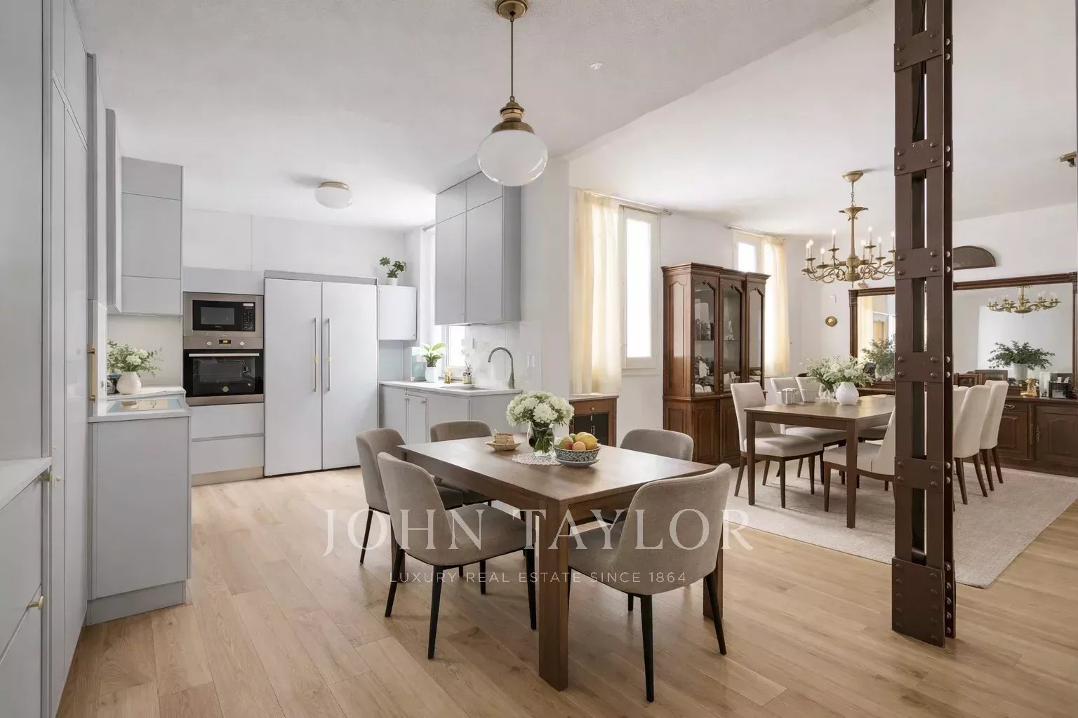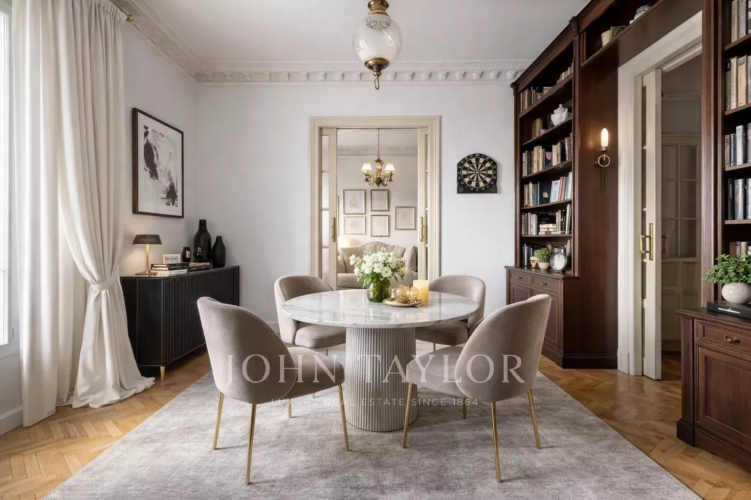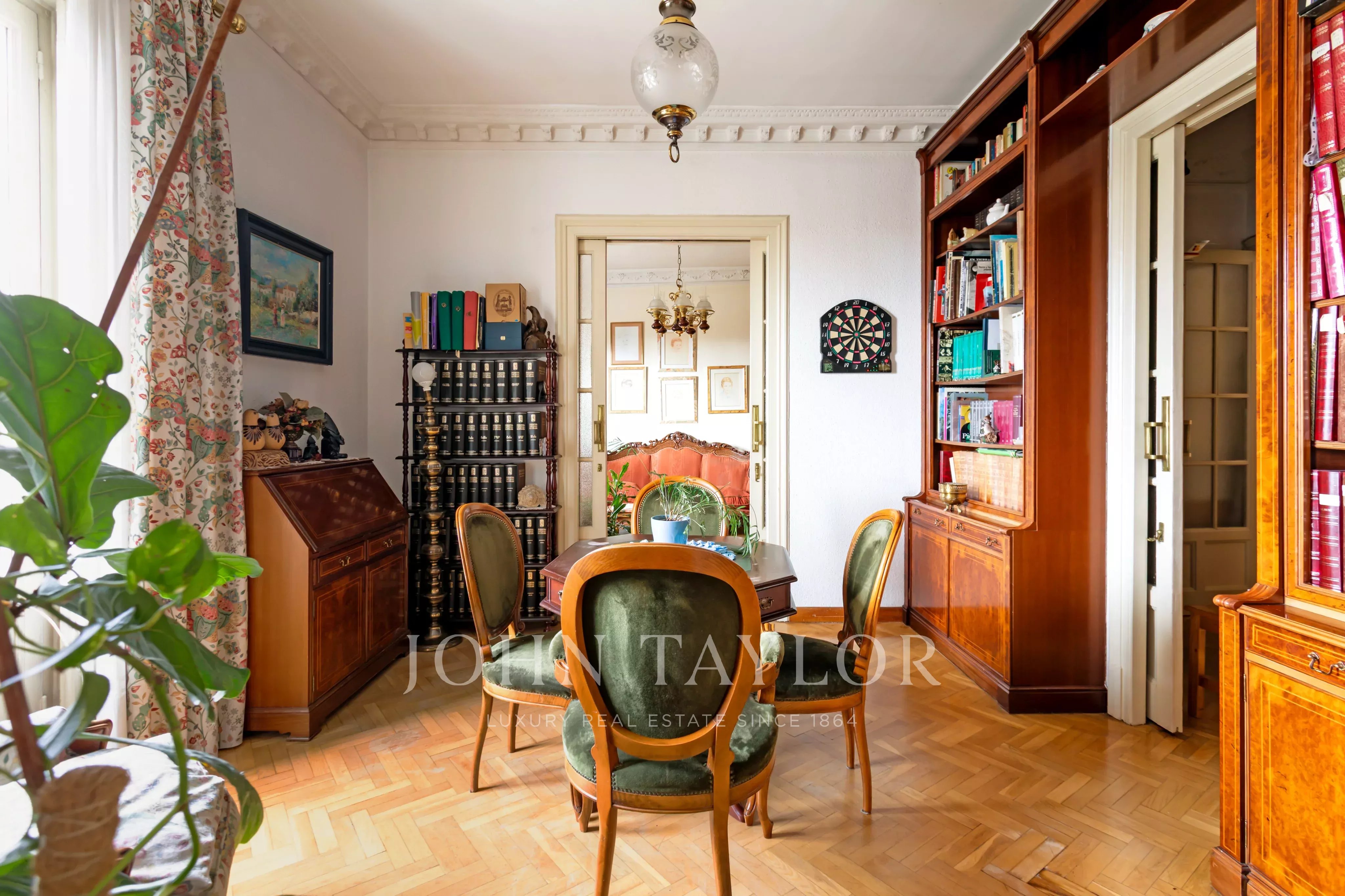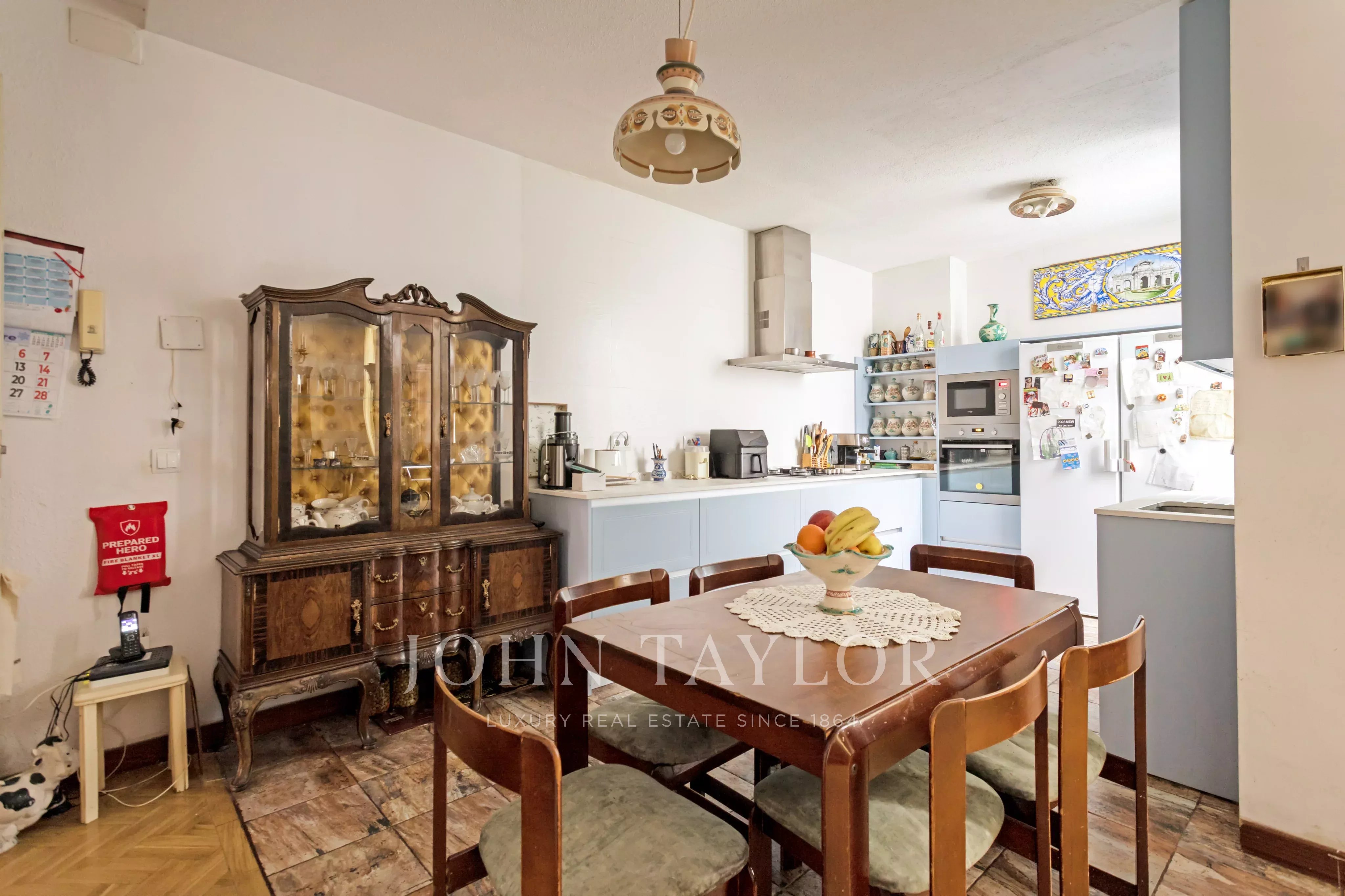 La propriété se distingue par son caractère majestueux, ses hauts plafonds, ses moulures classiques et son architecture qui évoque l'élégance d'un authentique appartement palatial. Le salon, spacieux et baigné de lumière naturelle, s'ouvre sur d'imposants balcons avec vue directe sur le parc, un espace protégé qui garantit une intimité absolue et des vues inaltérables dans le temps.