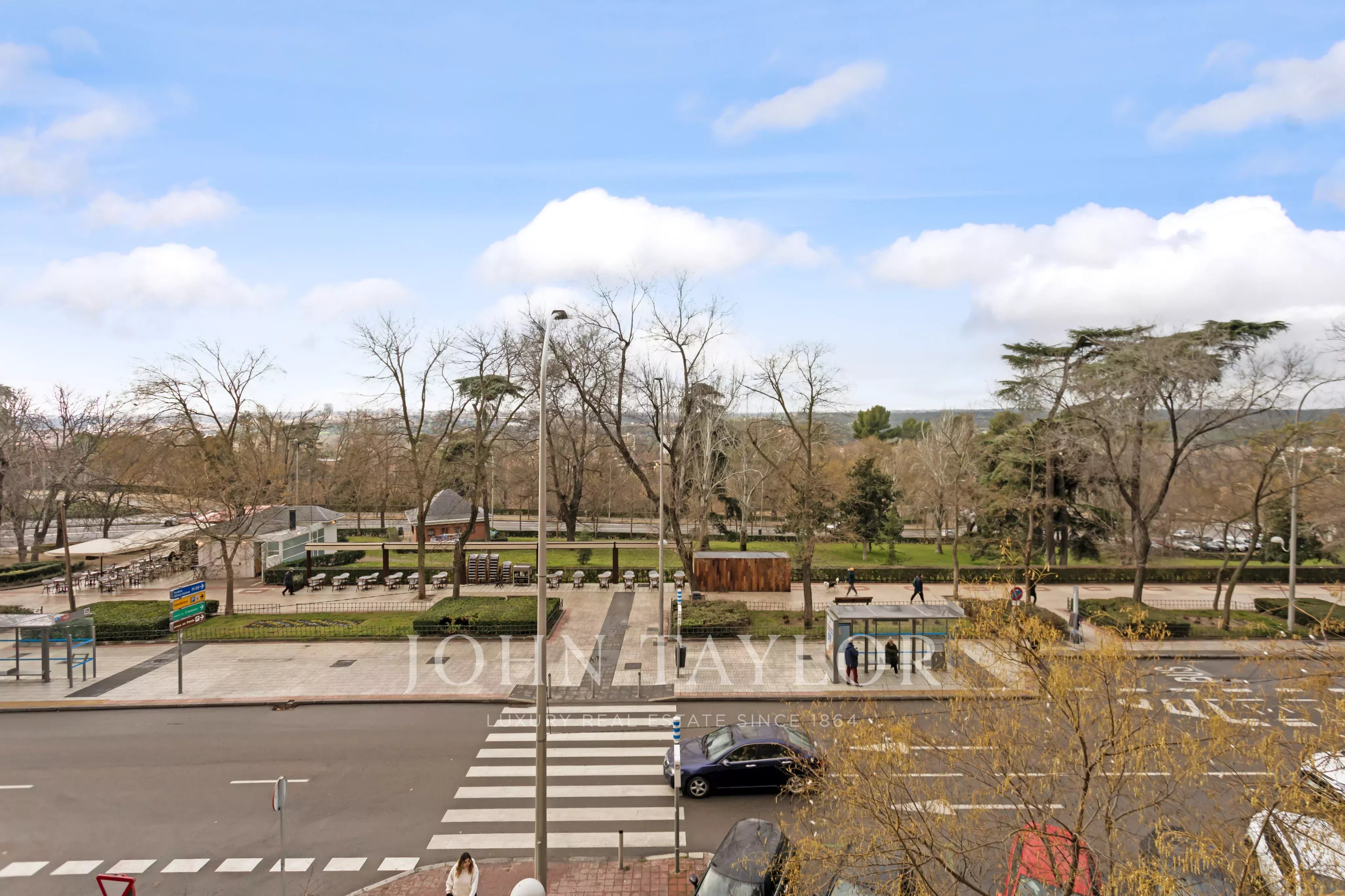Nous présentons en exclusivité cette imposante propriété avec des vues spectaculaires sur le Parque del Oeste, qui s'étendent visuellement jusqu'à la verdure de la Casa de Campo. Depuis ses balcons, chaque coucher de soleil se transforme en un spectacle unique, offrant un coucher de soleil fascinant dans l'un des cadres les plus privilégiés de Madrid.