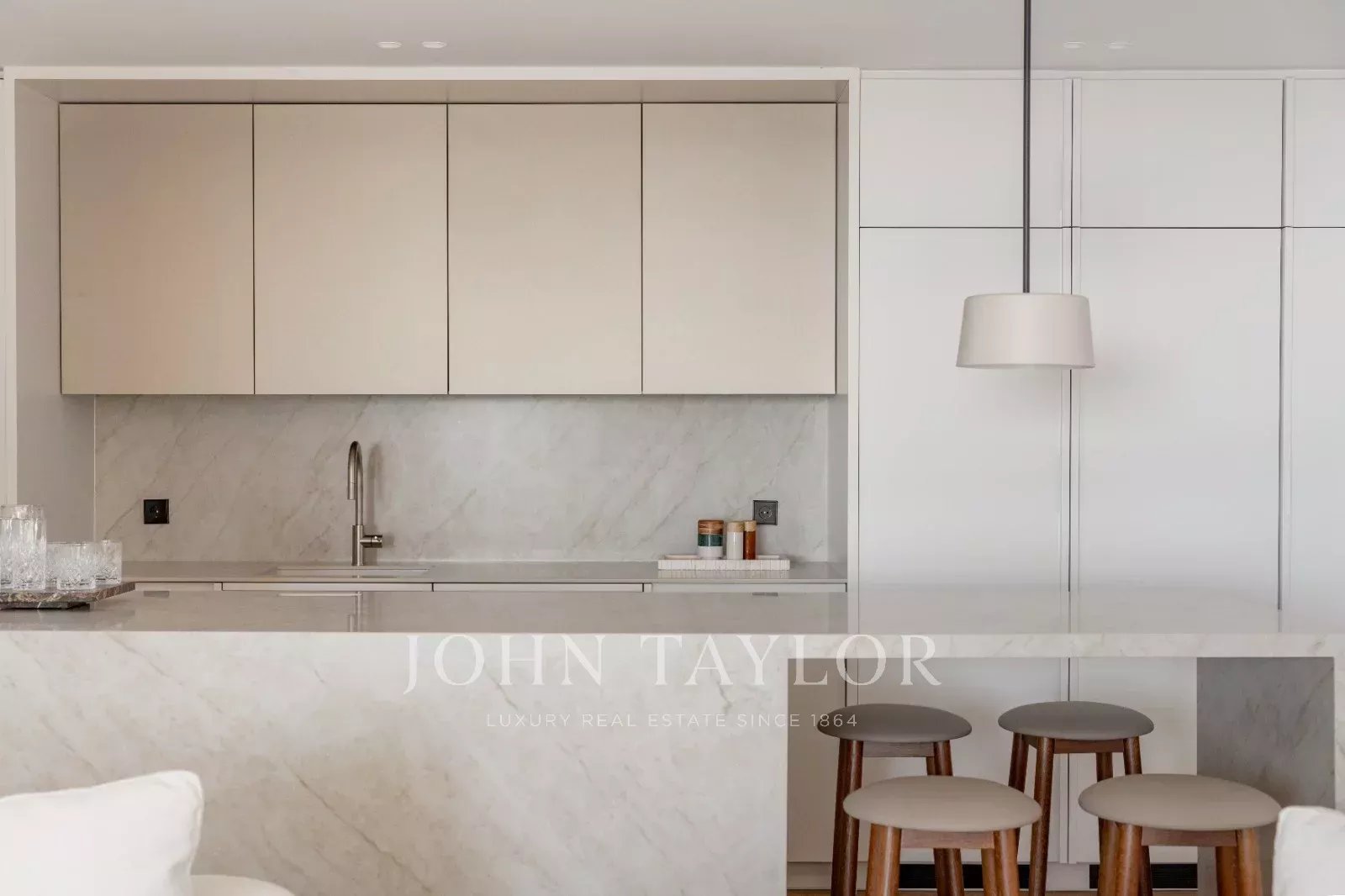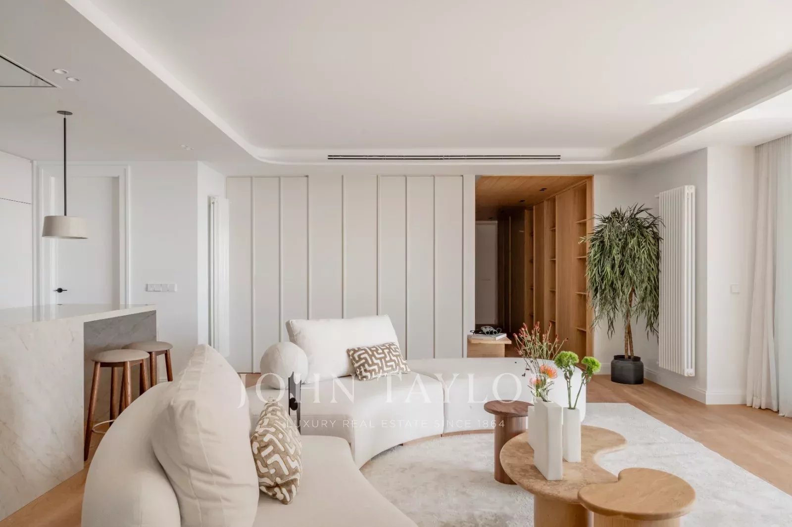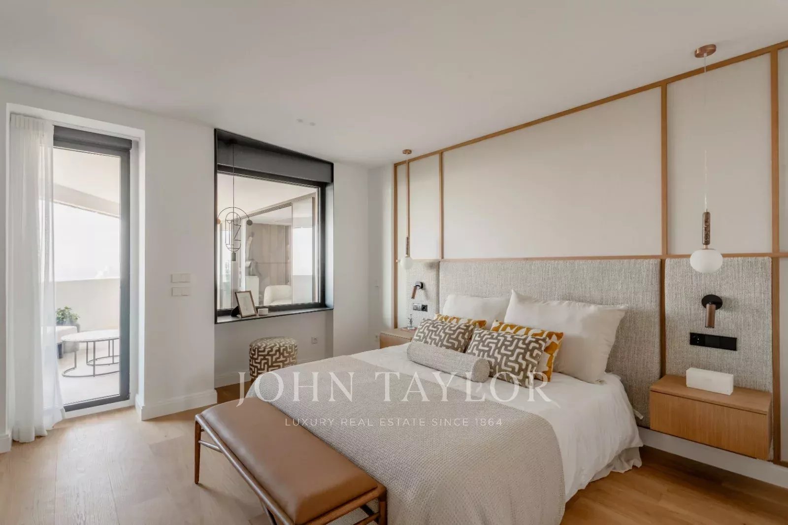 John Taylor présente une propriété unique sur le marché. Il est situé au 27e et dernier étage de l'emblématique Torre de Valencia, conçue par le célèbre architecte Javier Carvajal. Depuis la propriété, et grâce à sa hauteur de 94 mètres, nous bénéficions d'une vue absolument privilégiée sur toute la ville, du parc du Retiro à la Puerta de Alcalá. L'orientation sud et les vues dégagées offrent une luminosité unique.