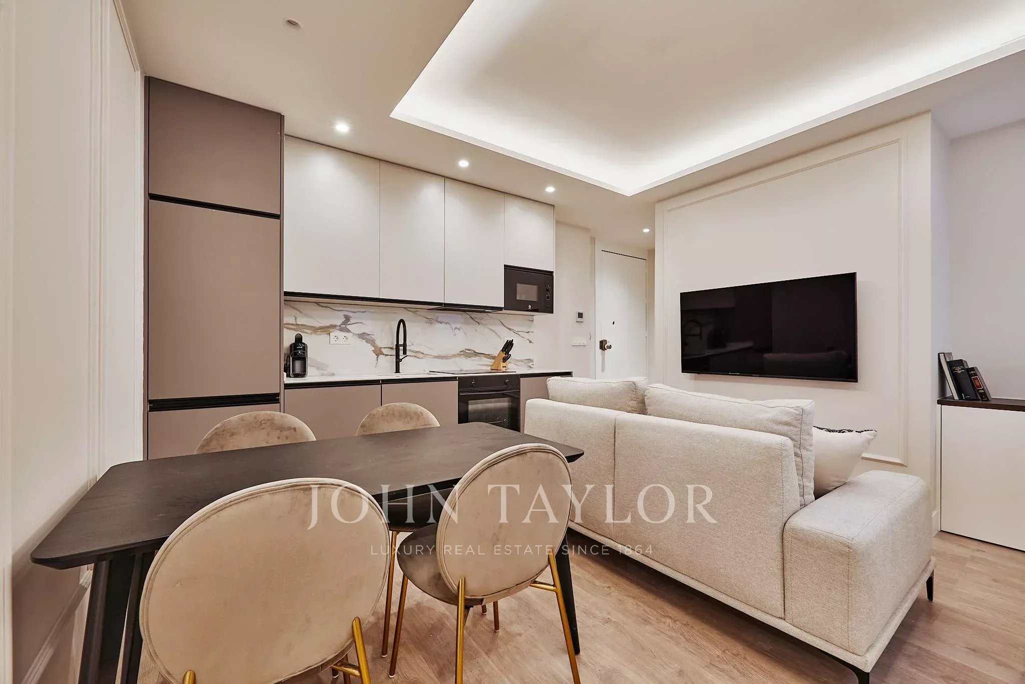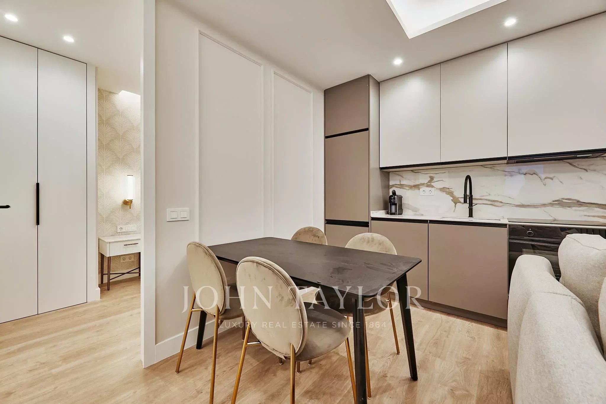 Située au deuxième étage intérieur d'un bâtiment classique avec ascenseur et gardien, la maison a été rénovée avec un design fonctionnel et soigné, optimisant chaque espace. Le salon avec cuisine intégrée, entièrement équipée, crée une ambiance pratique et chaleureuse.