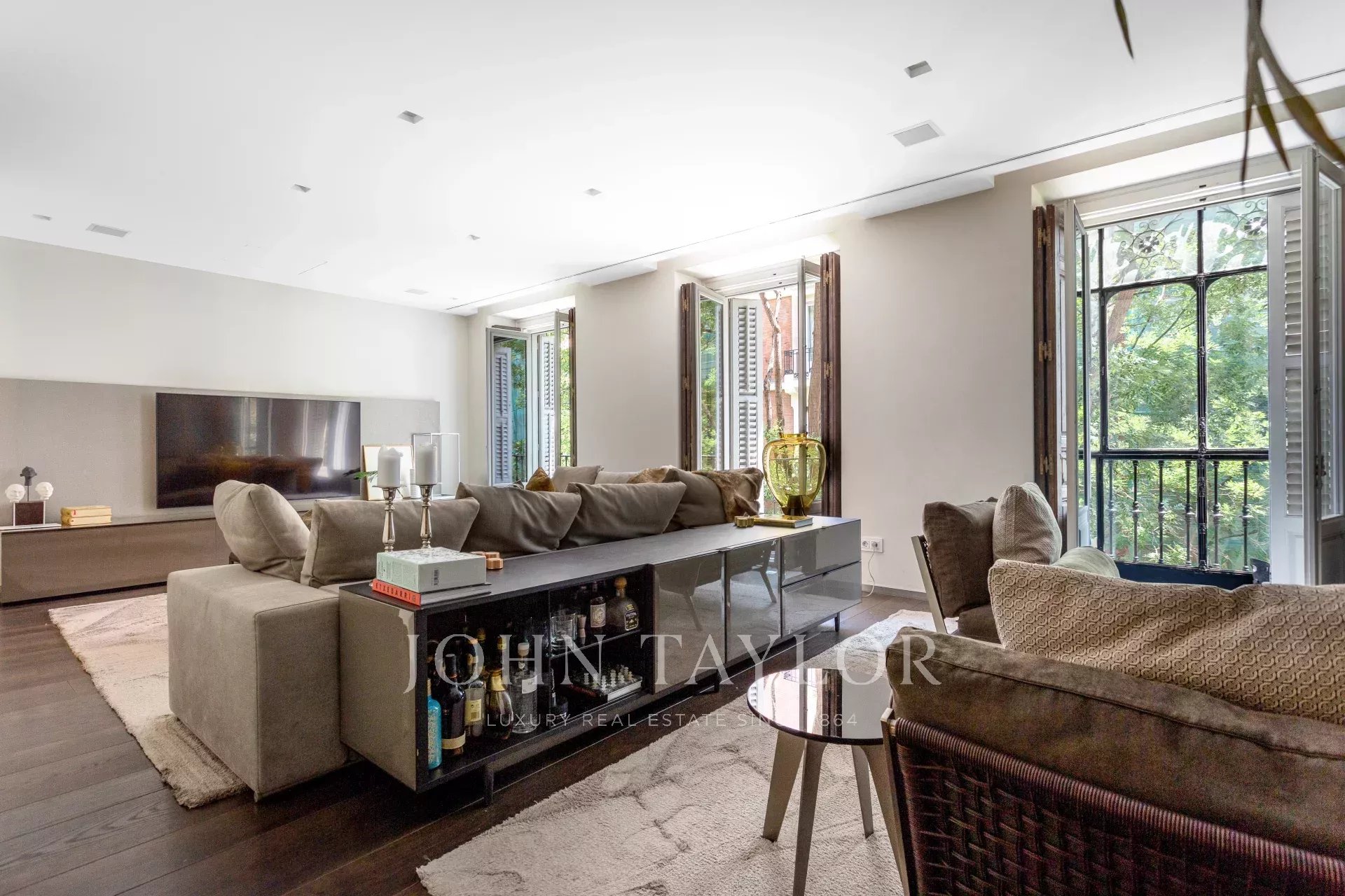 Au cœur du quartier des Jerónimos se trouve cet élégant appartement conçu par la prestigieuse Pascua Ortega et la maison Minotti, avec un emplacement imbattable à proximité du parc du Retiro, du musée du Prado, de l'église des Jerónimos et des jardins botaniques. Dans une rue tranquille du quartier le plus monumental de Madrid, cette propriété est située au troisième étage d'un bâtiment classique datant de 1915. Il s'agit d'une rénovation de luxe avec les meilleures qualités du marché.