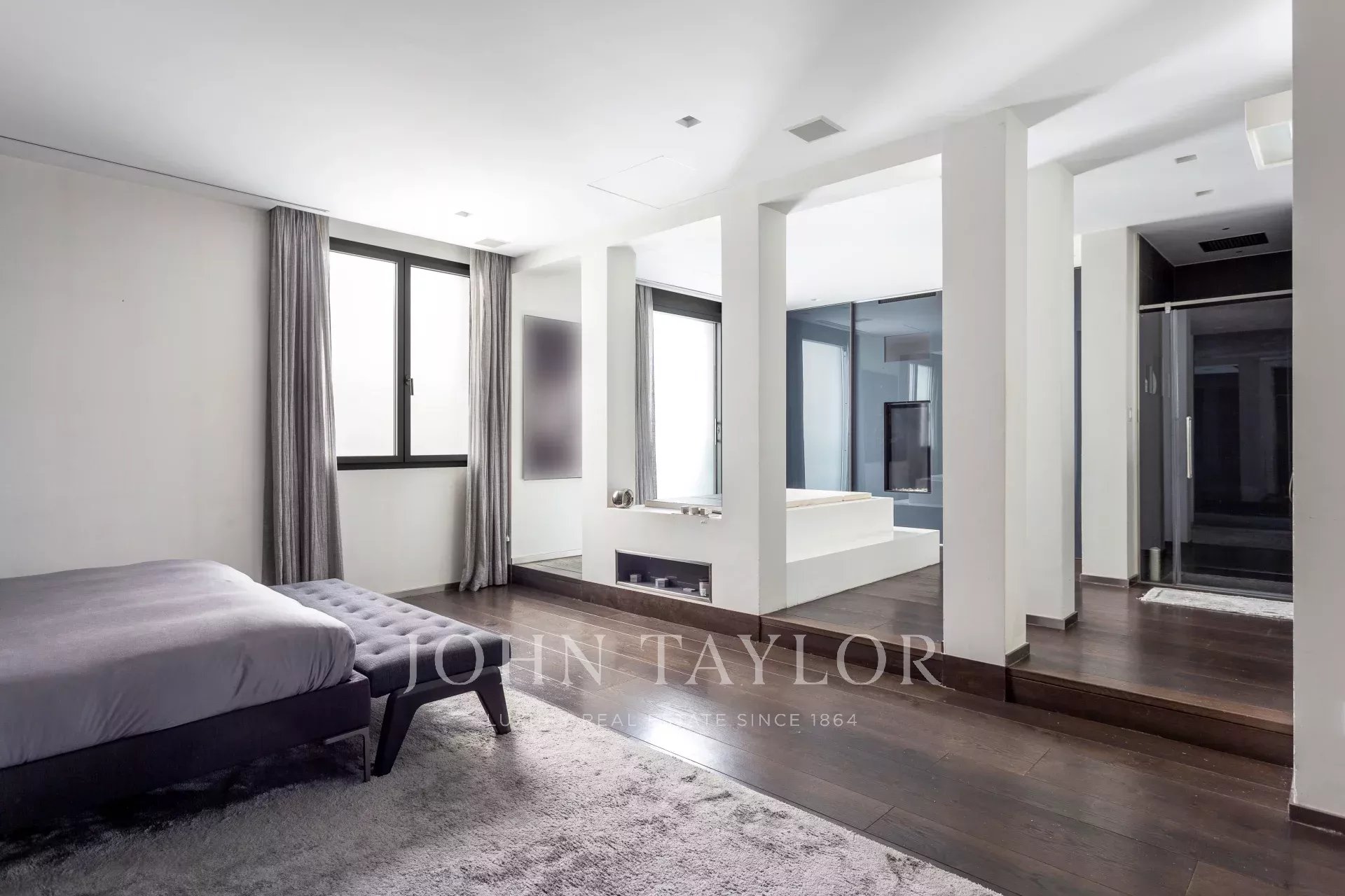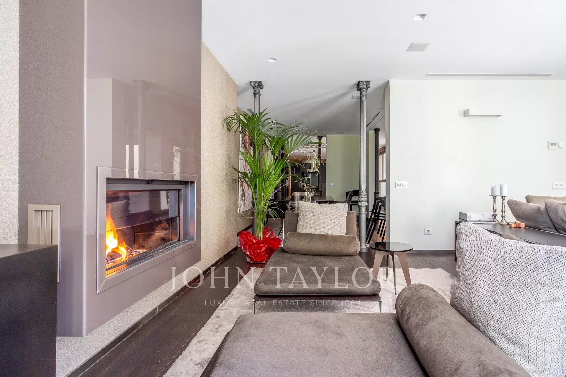 L'appartement dispose de l'air conditionné chaud/froid dans toutes les pièces et du chauffage par le sol, ainsi que d'une cheminée à bois dans le salon et d'une cheminée à gaz dans la chambre principale.