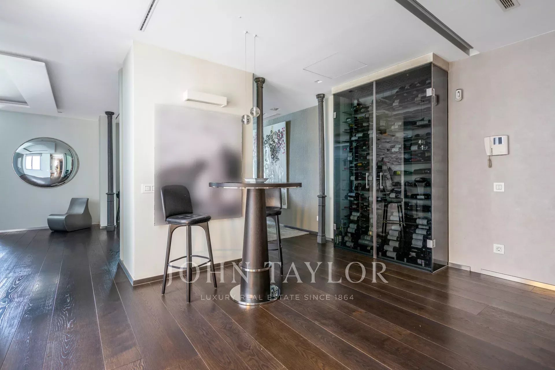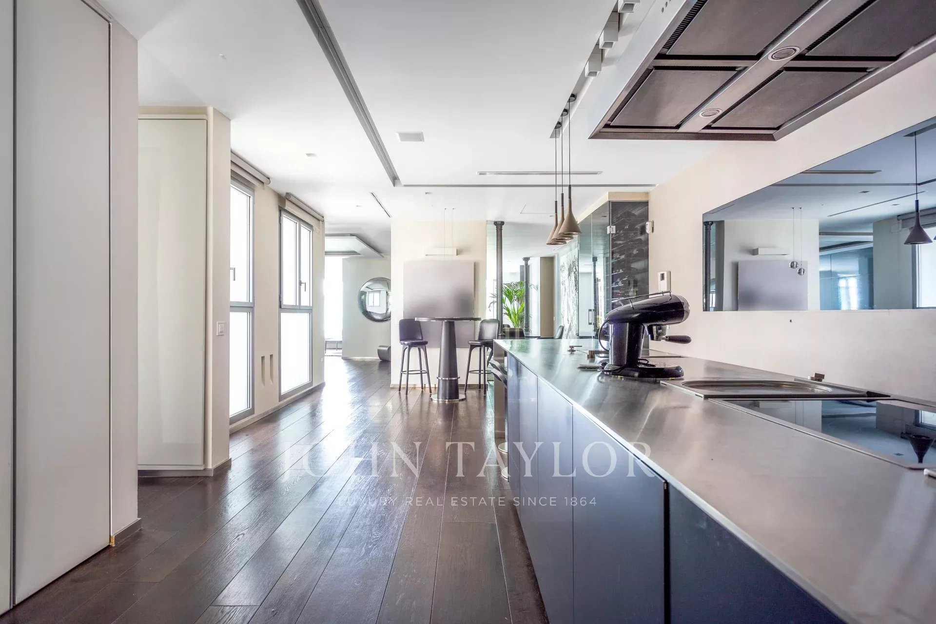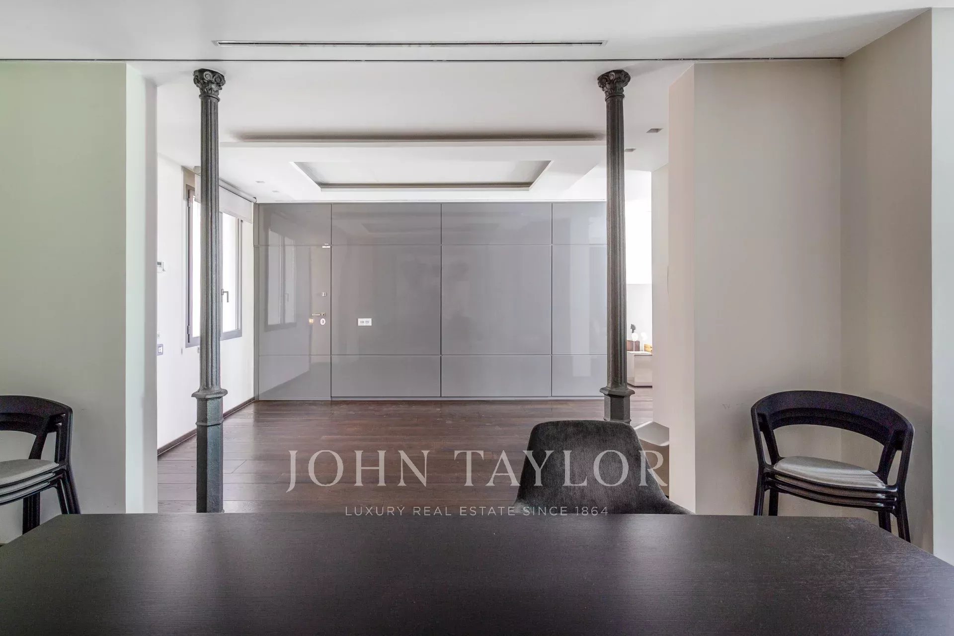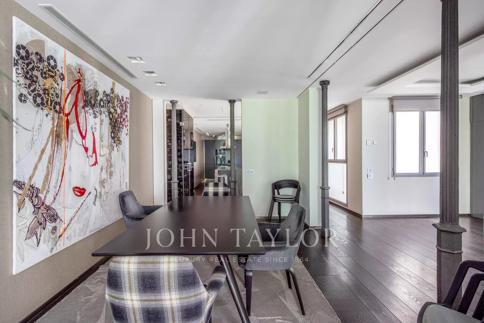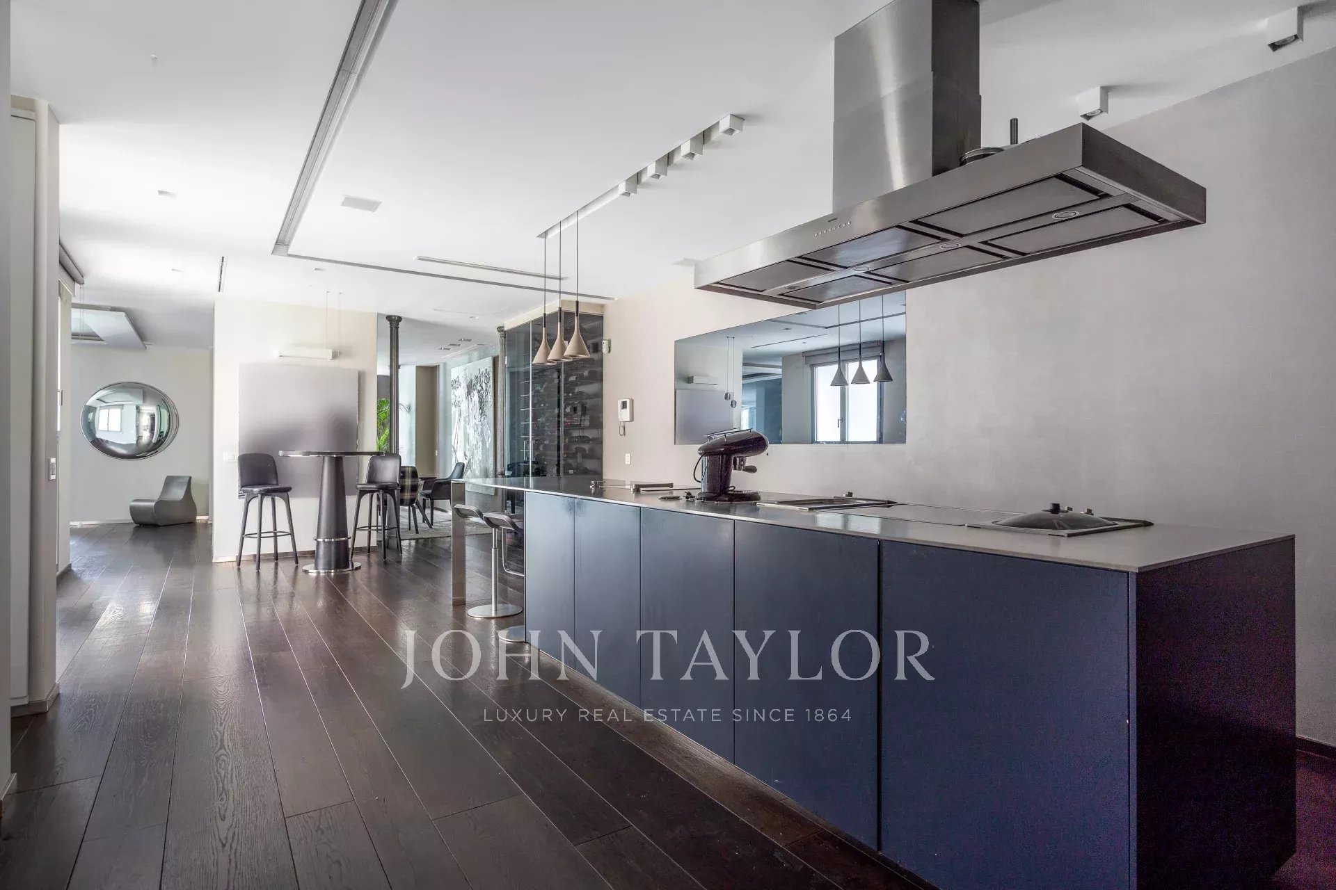 L'appartement dispose d'un espace social ouvert comprenant un salon avec deux balcons et un point de vue sur la rue, une grande salle à manger, des toilettes pour les invités et une cuisine moderne Gaggenau entièrement équipée des meilleurs appareils électroménagers.