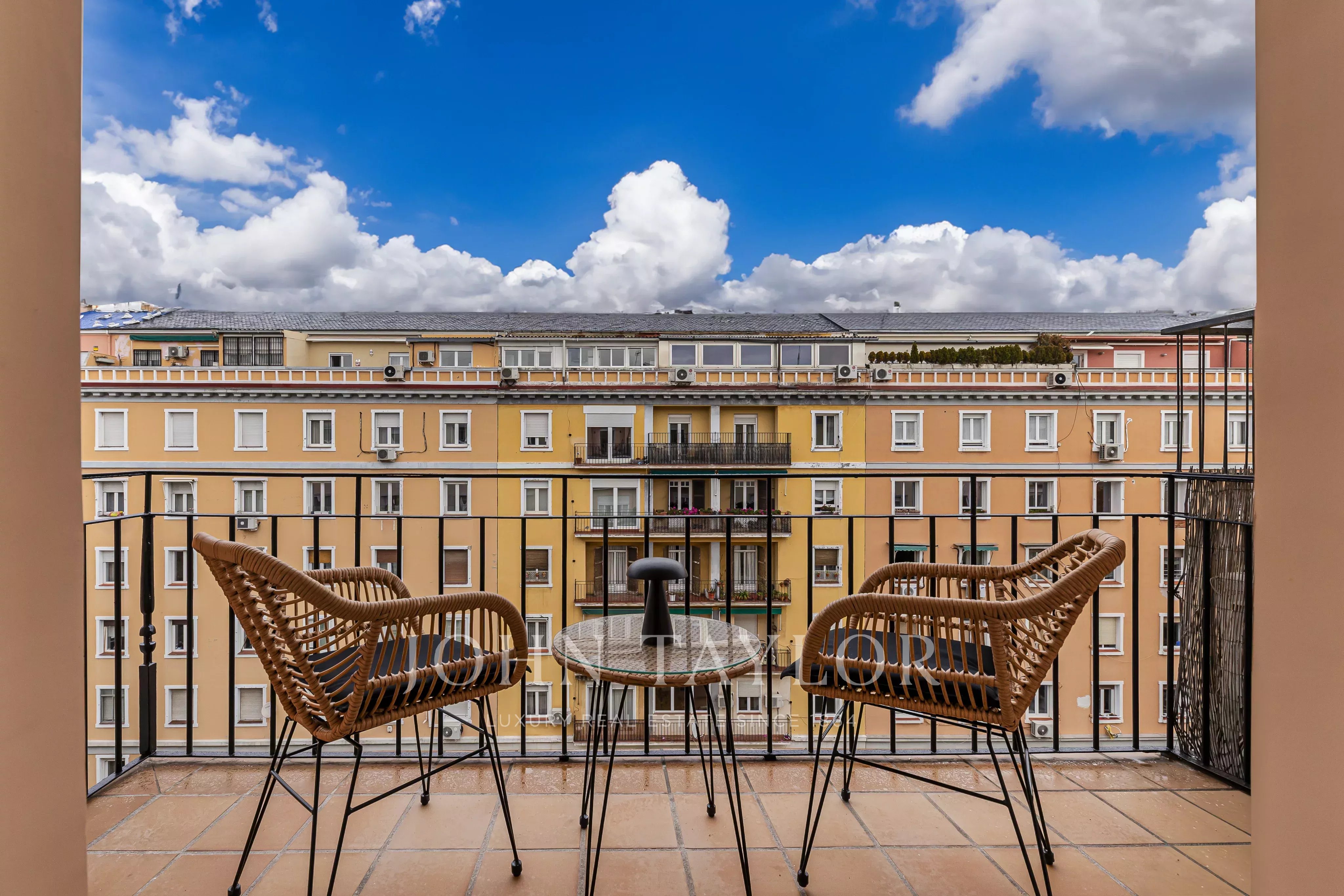 Un salon-salle à manger spacieux et lumineux qui nous invite à profiter des vues impressionnantes sur le Retiro depuis sa terrasse.