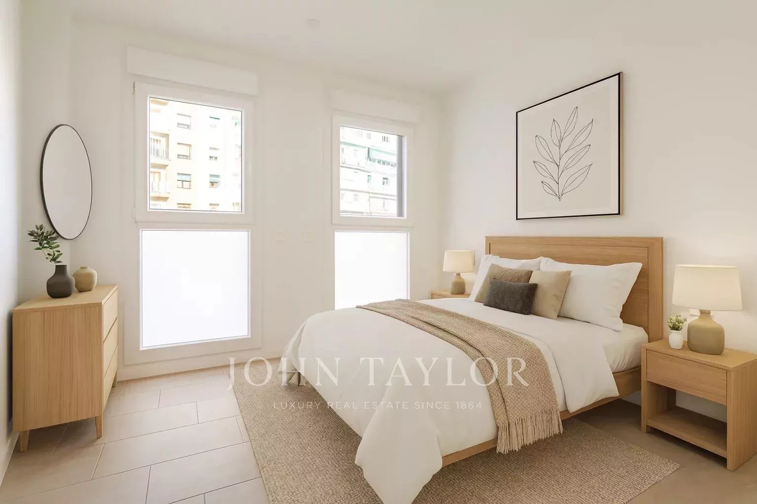 La propriété est située au premier étage de l'immeuble, a une superficie de 127 m², avec 82 m² de logement privé, est distribuée en distributeur avec placards, cuisine intégrée dans le séjour, entièrement équipée, espace buanderie séparé. Salon/salle à manger. Le coin nuit se compose de deux chambres. Chambre principale avec dressing et salle de bain en suite. Une salle de bains complète supplémentaire desservira la chambre secondaire. L'ensemble de l'appartement est extérieur, à l'exception des salles de bains.