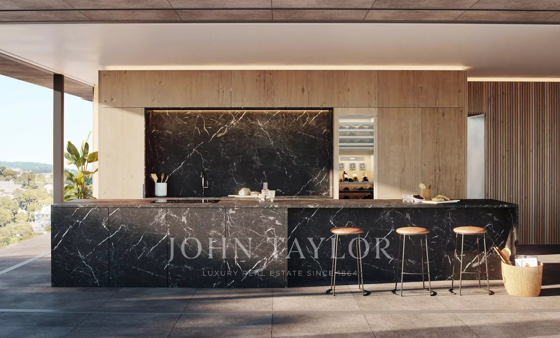 À quelques pas seulement de l'un des secrets les mieux gardés de Majorque : une étroite plage de sable, des falaises aventureuses et des eaux turquoises. Tout dans le Bendinat Panorama est une question de décisions parfaitement pondérées. L'emplacement surélevé et éclairé, la communauté, la vue sur la mer, les matériaux, les plans d'étage, le service et le confort rassurant de la sécurité. Les piscines d'entraînement professionnelles, les arbres et les jardins environnants luxuriants, la proximité des meilleurs restaurants internationaux et des événements culturels, ainsi que la perfection 5 étoiles de chaque détail, escalier, coin salon et service de conciergerie facilement accessible. Vous venez, vous vivez, vous partez. Tout le reste est pris en charge. Le tout soigneusement emballé dans un concept qui vous permettra de vous consacrer à autre chose qu'à l'inquiétude. Parce qu'arriver dans cette deuxième maison, c'est laisser le monde
