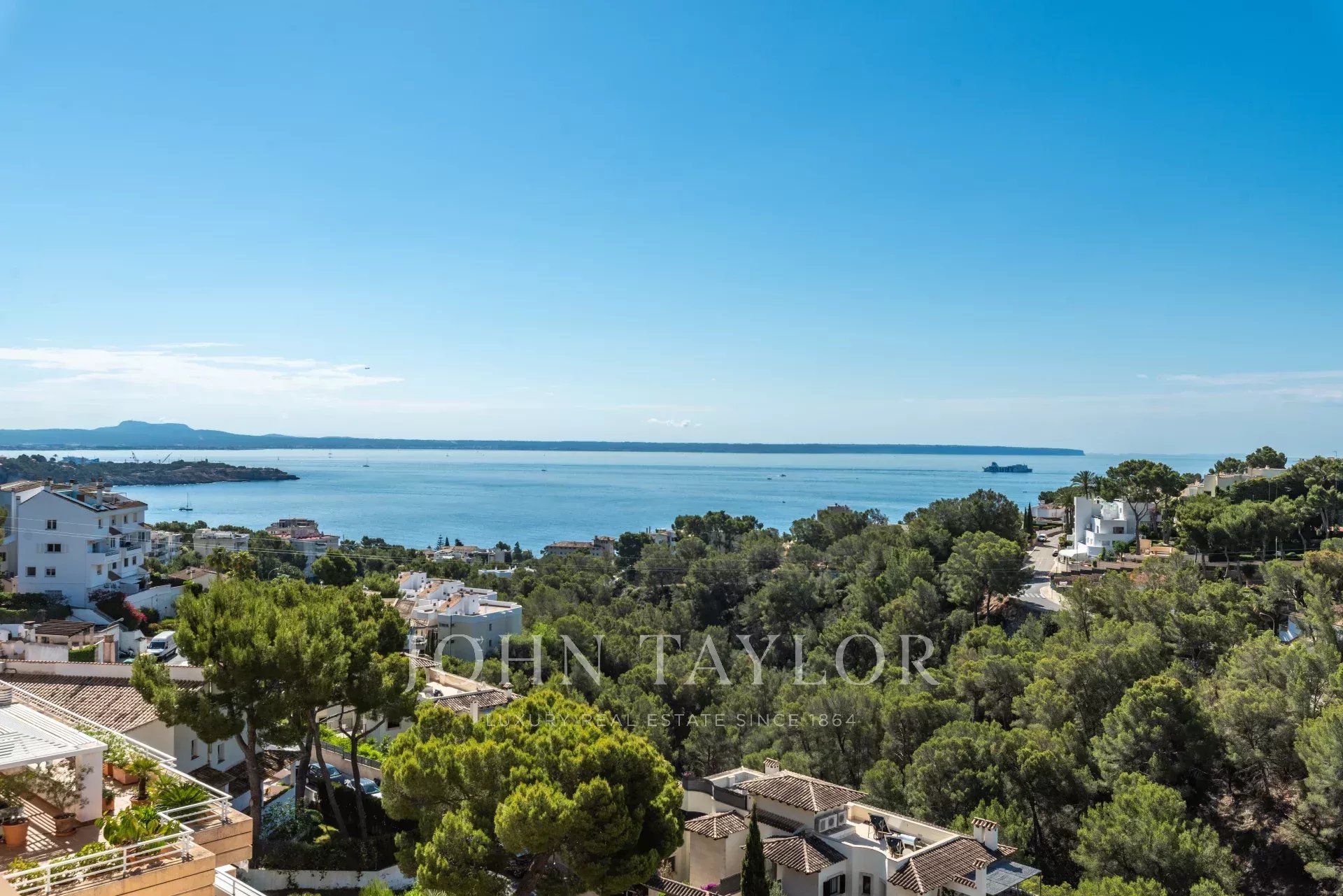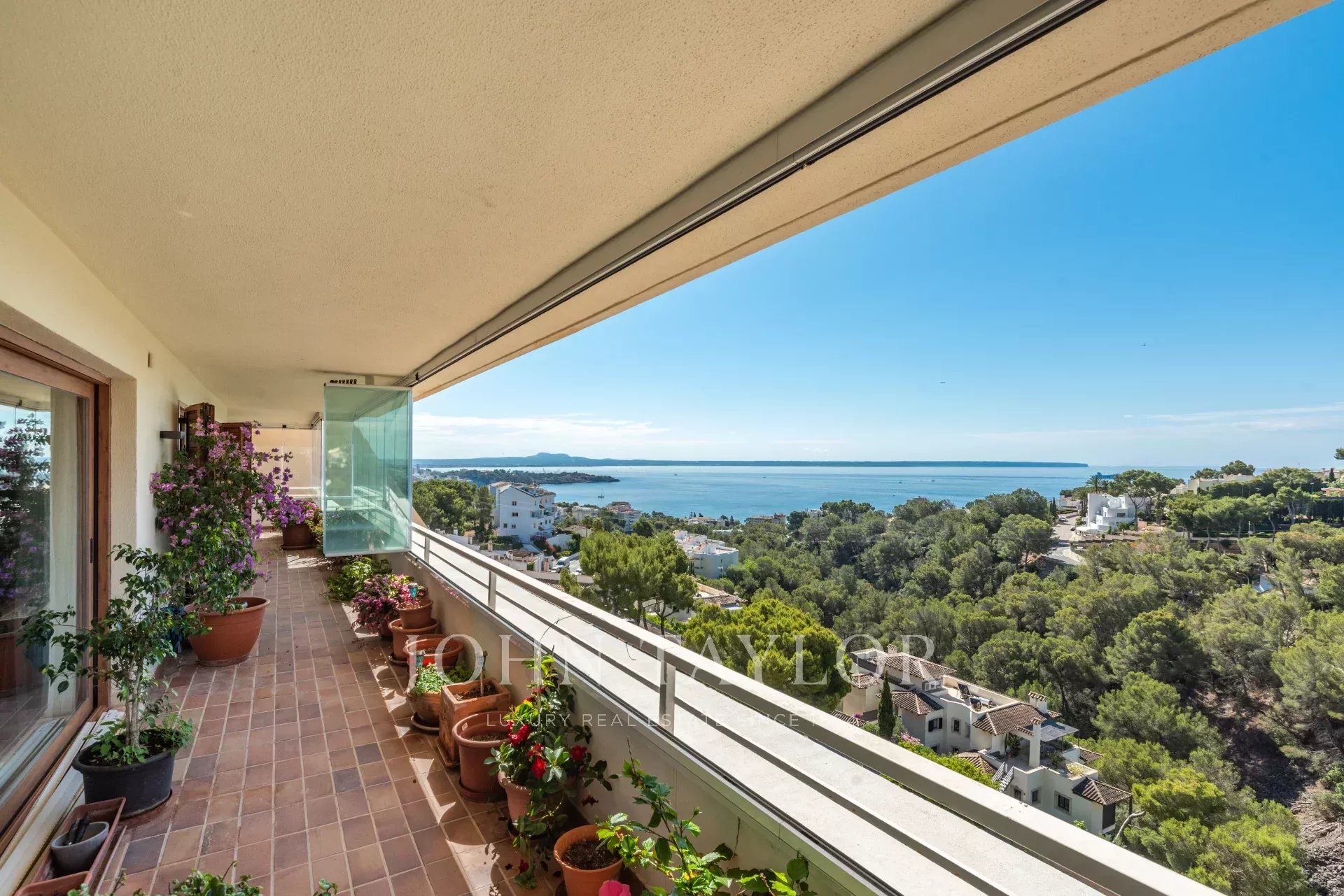 Nous vous proposons ce penthouse exclusif avec une vue imprenable sur la mer, situé dans l'une des zones les plus privilégiées de Majorque. Il offre un luxueux et généreux salon-salle à manger avec une cuisine spacieuse adjacente, quatre chambres à coucher, dont la spacieuse suite parentale avec dressing et terrasse qui offre également des vues sur la mer.