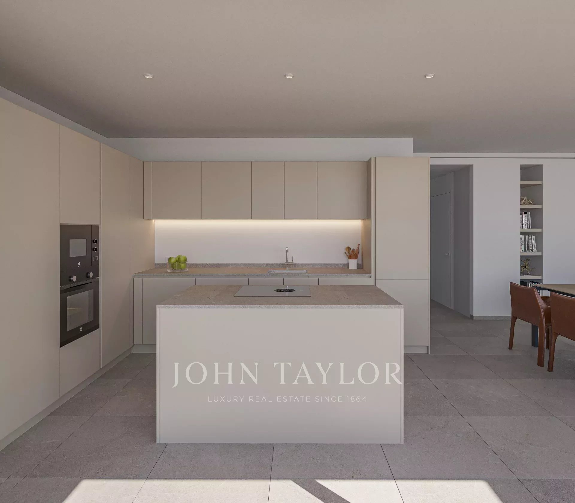 L'intérieur de l'immeuble s'inspire du mode de vie majorquin. Des façades de fenêtres allant du sol au plafond, des portes et des éléments de placard à hauteur de plafond et des sols en pierre sur toute leur surface permettent aux pièces de se fondre les unes dans les autres et confèrent à chaque appartement une élégance particulière. Associés à un design moderne, simple et fonctionnel et à une palette de couleurs méditerranéennes claires, les intérieurs développent leur propre caractère moderne et intemporel.