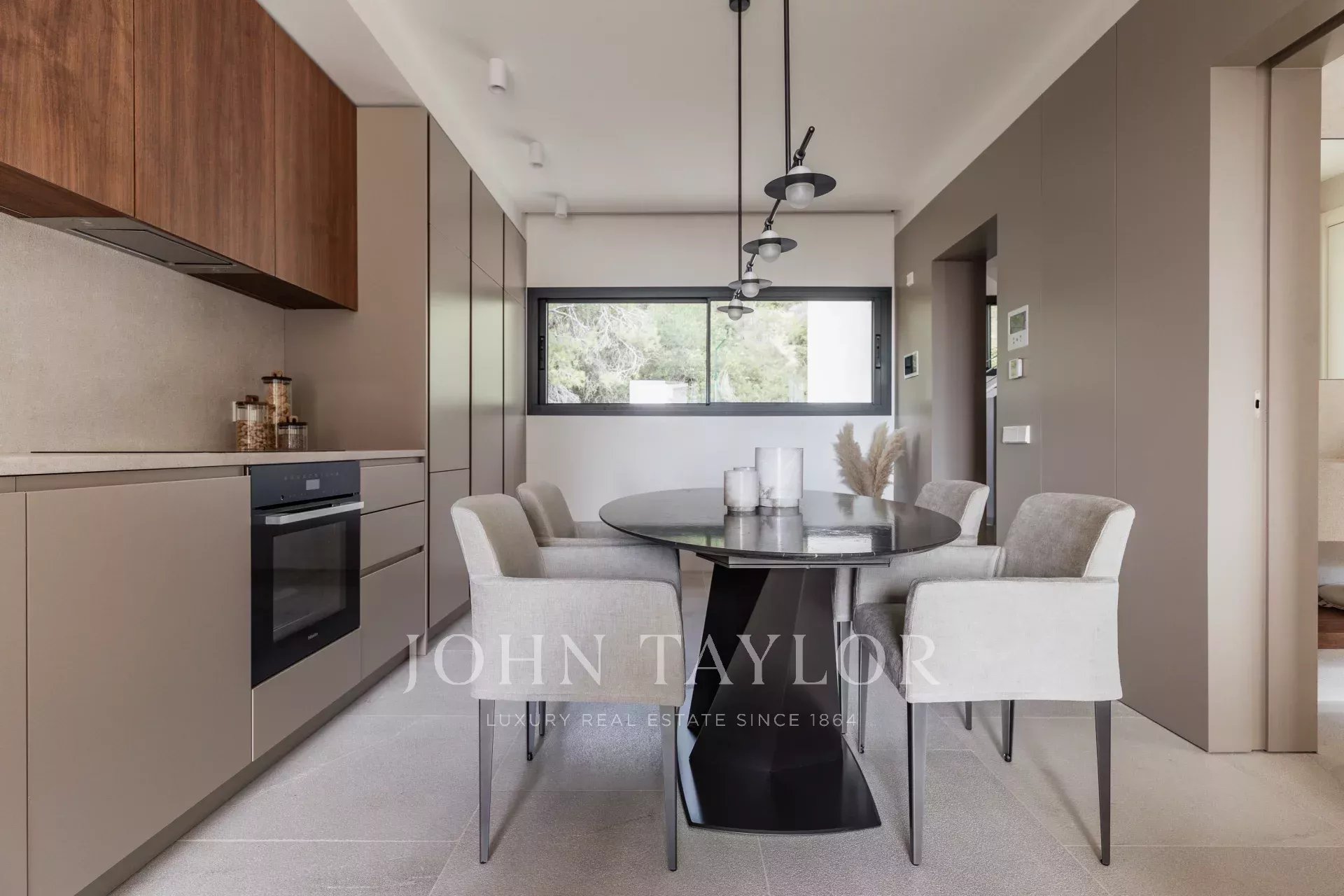 Entièrement meublé avec des pièces italiennes sur mesure de Barzaghi Salotti et Ethimo, chaque espace reflète un savoir-faire exceptionnel. Toutes les menuiseries - y compris les cuisines, les armoires et les salles de bains - ont été fabriquées à la main par des artisans majorquins, ce qui garantit la précision et la qualité de l'ensemble.