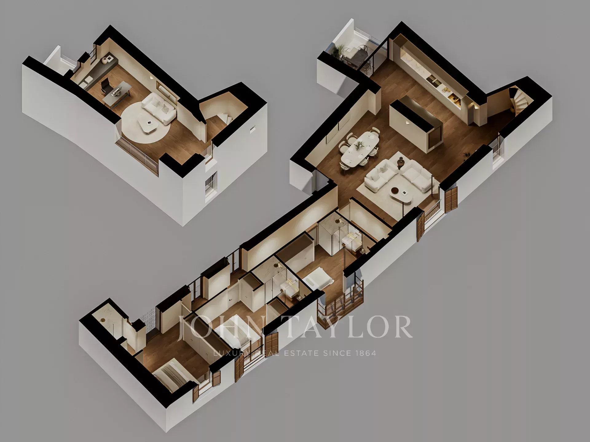 Le bâtiment fait l'objet d'une rénovation complète, qui devrait s'achever en septembre 2026. Le projet vise à préserver son histoire tout en l'adaptant au confort moderne, au style et à la vie haut de gamme. Cet appartement du premier étage offre 209 m2 d'espace intérieur avec une cuisine ouverte sur mesure avec des appareils Miele, une salle à manger et un salon qui s'ouvre sur l'extérieur, une terrasse confortable de 6 m2. Depuis la cuisine, on accède également au bureau du premier étage, au salon de détente, à la salle de jeux ou à l'espace home cinéma, selon les préférences du propriétaire. L'appartement comprend trois chambres à coucher, chacune avec une salle de bains attenante et des toilettes pour les invités, ainsi qu'une buanderie. L'appartement comprend le chauffage par le sol, la climatisation centrale, le double vitrage, du parquet en chêne et une pièce de rangement séparée.