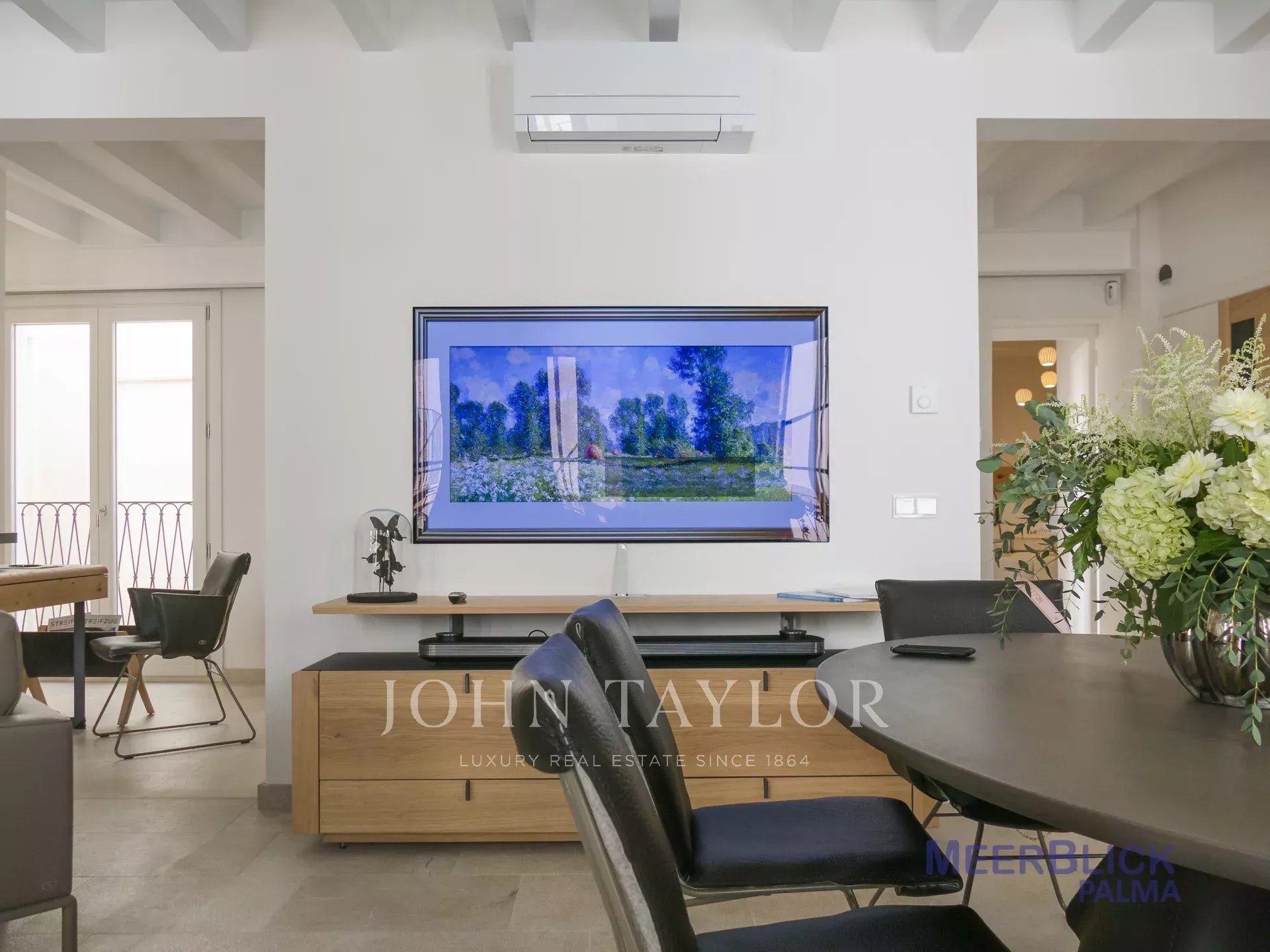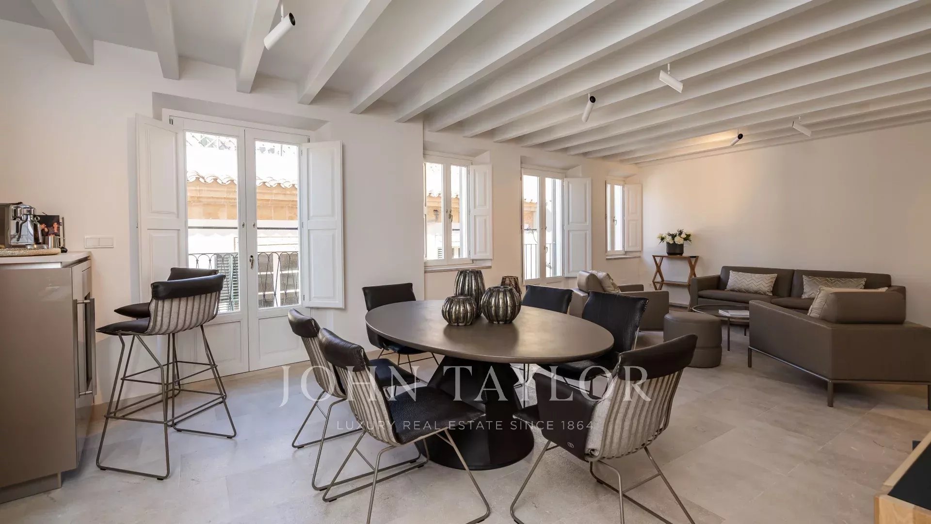"La résidence Sea View Palma est située dans l'une des rues les plus emblématiques de Palma, juste à côté de la Plaza Santa Eulalia. Cet appartement du premier étage se distingue par ses lignes modernes et épurées et ses pièces lumineuses grâce à ses fenêtres allant du sol au plafond. L'intérieur présente des tons naturels et chauds avec des meubles soigneusement sélectionnés. La cuisine ouverte, la salle à manger et le salon avec un plafond surélevé donnent une impression de loft, et la collaboration avec des marques telles que De Sede, Voglaur, Joka, Häcker, Miele et Gaggenau garantit un maximum de qualité et de confort. Il dispose de deux chambres à coucher, d'une salle de bains pour les invités et d'un patio privé. La propriété sera vendue entièrement meublée et comprend le chauffage par le sol, la climatisation centrale et la domotique. Un garage est disponible en option, moyennant un supplément.