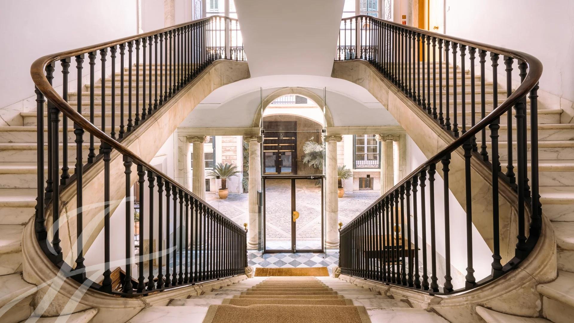 Situé dans l'une des rues les plus prestigieuses de Palma, juste à côté d'El Born, il offre un maximum de confort pour la vie de tous les jours. Cet immeuble résidentiel d'importance historique est un véritable bijou et une rareté. Son entrée imposante et sa magnifique cage d'escalier témoignent de sa grandeur, qui s'accroît avec la terrasse et le jardin communs, dont certains éléments spectaculaires en pierre ont été préservés. La propriété, située au troisième étage, comprend 3 chambres à coucher, 3 salles de bains, une cuisine entièrement équipée, une buanderie et un salon à deux niveaux. Il est accompagné d'une place de parking dans le garage et d'une salle de stockage.