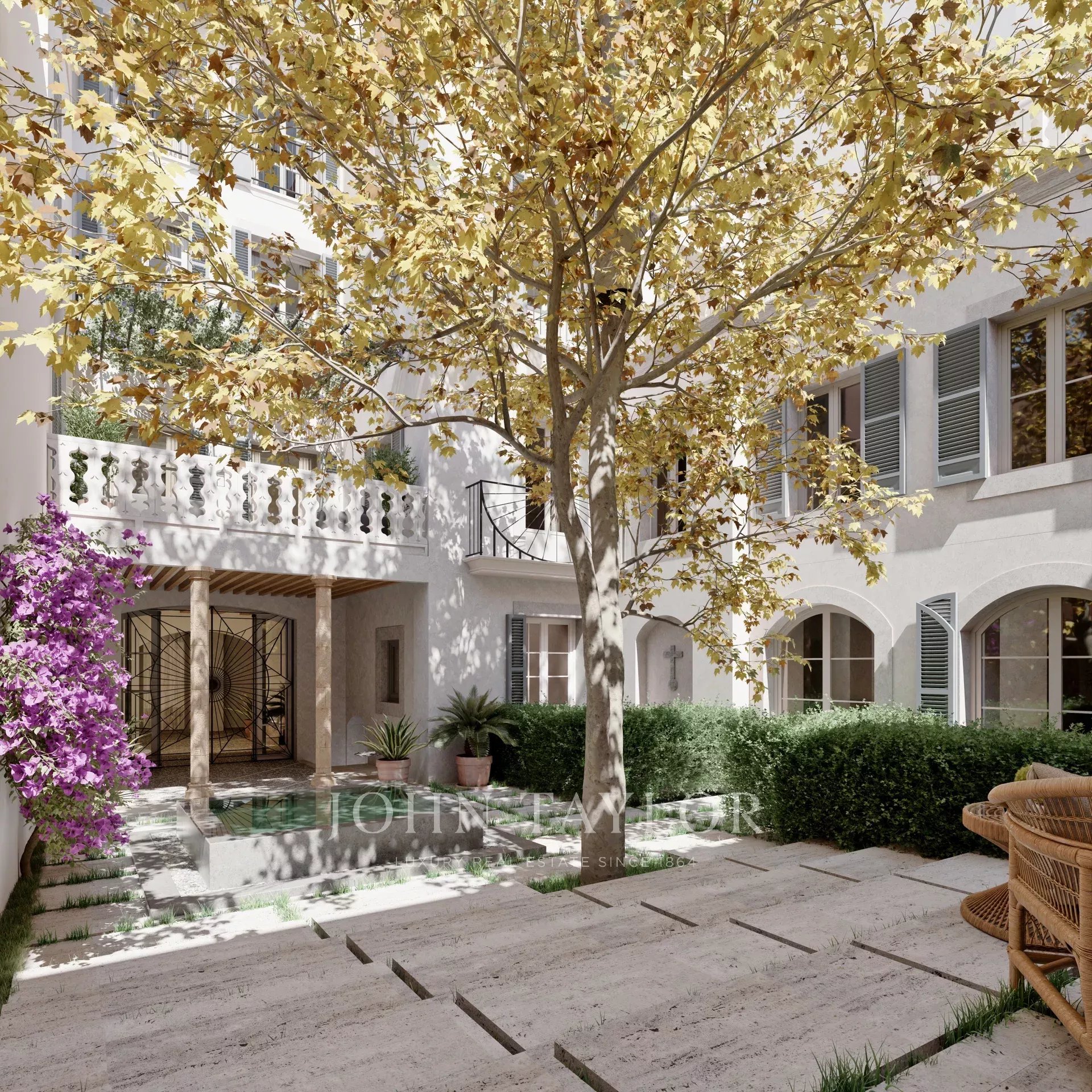 Ce fabuleux nouveau projet en cours de construction sera transformé en une superbe résidence de cinq logements construite autour d'un jardin privé. Cet élégant complexe fait partie intégrante de la vieille ville et offre une véritable oasis de paix, d'ombre en été et de tranquillité (en hiver, les grands arbres à feuilles caduques perdent leurs feuilles et laissent passer le soleil). Les unités varient entre appartements de jardin, duplex et triplex, de 81m2 à 190m2, avec 1, 2 et 3 chambres à coucher. Les unités du rez-de-chaussée et du dernier étage sont dotées d'espaces extérieurs, idéaux pour les loisirs ou la détente. Le projet se concentre sur la restauration du bâtiment dans sa gloire d'origine avec tous les avantages de la vie moderne tels que les plafonds à poutres apparentes, les fenêtres du sol au plafond, le chauffage par le sol, les cuisines entièrement équipées avec des appareils Siemens, la climatisation centrale et le système de domotique, et l'utilisation de matériaux nobles tels que la pierre naturelle de Binissalem et le parquet en chêne.