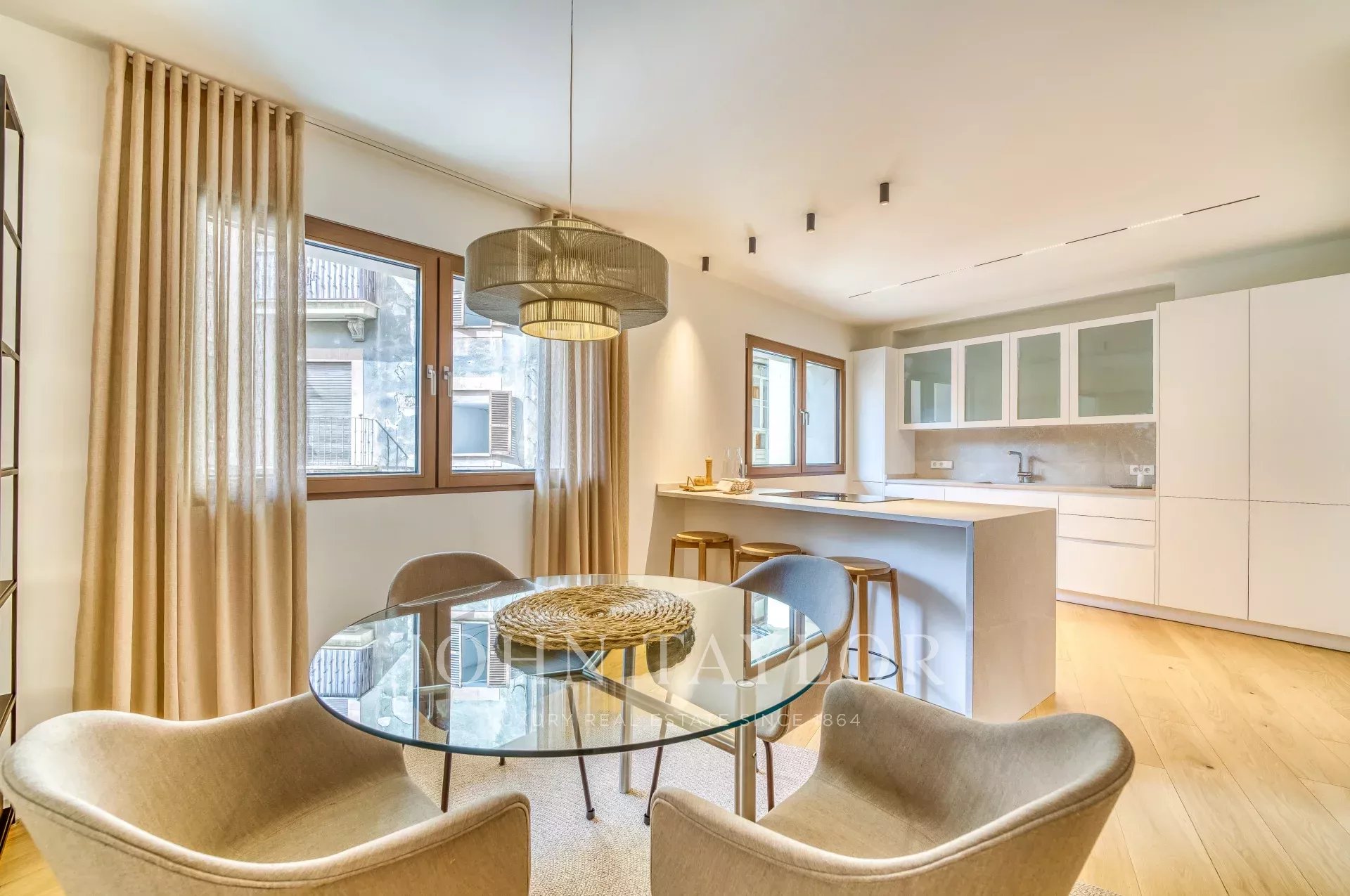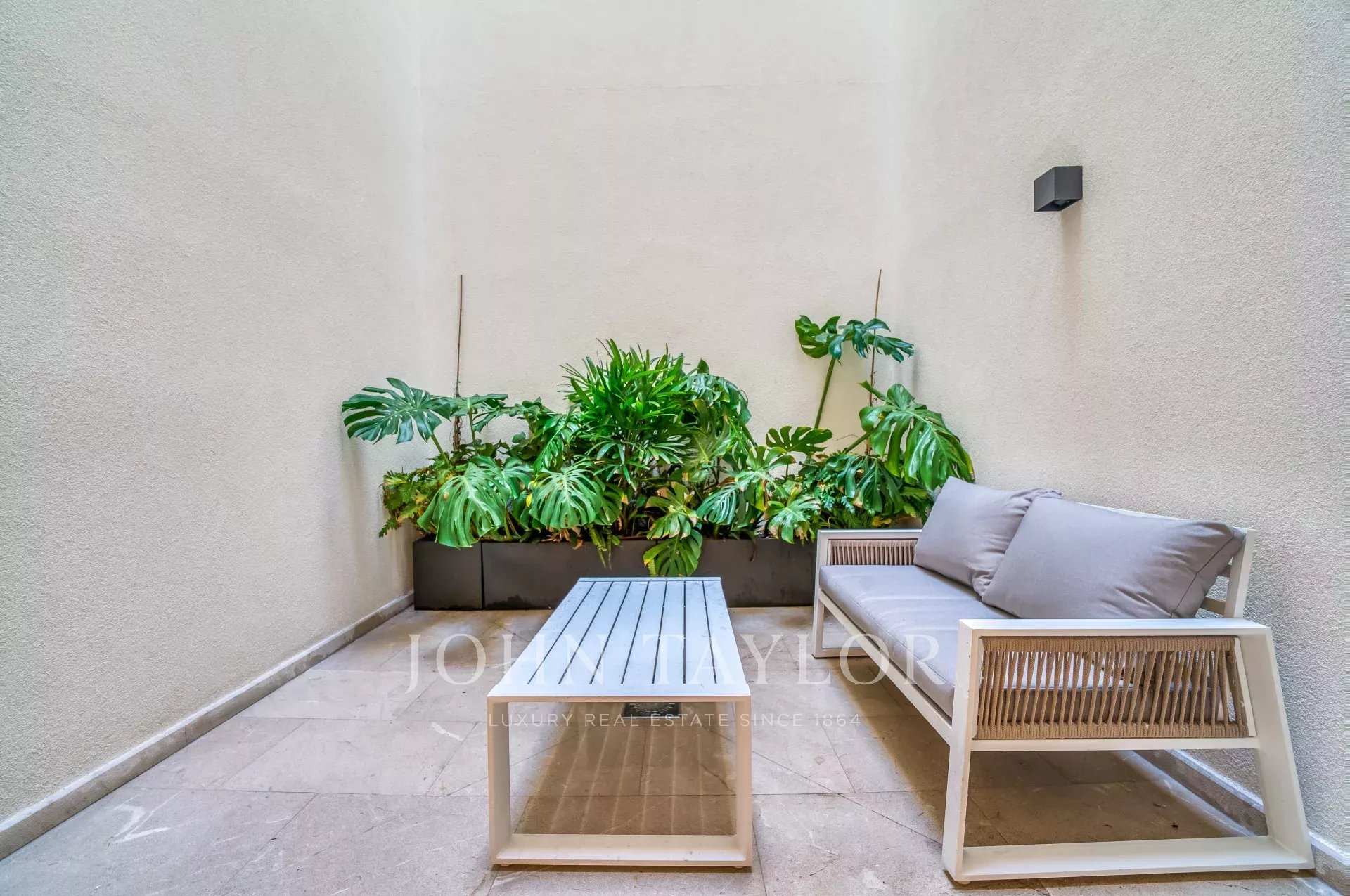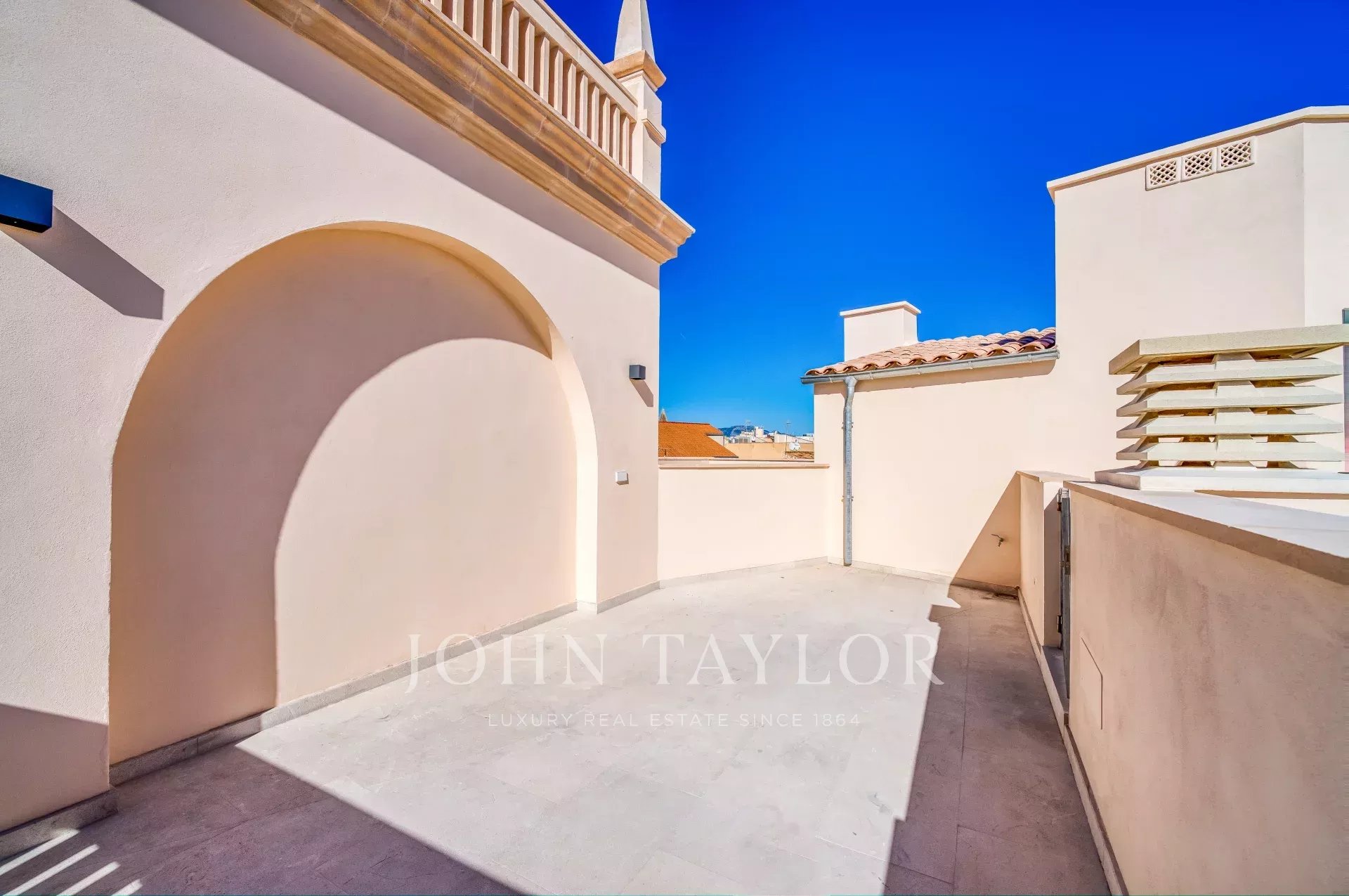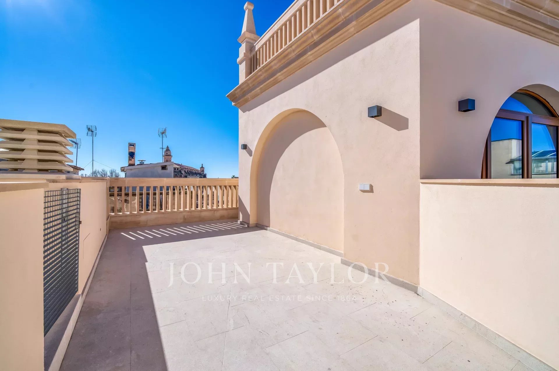 Situé sur une place tranquille au cœur de la vieille ville de Palma, ce luxueux appartement comprend deux chambres à coucher, trois salles de bains (deux en-suite, une salle de bains pour les invités), un patio confortable ainsi qu'une terrasse privée sur le toit. Tandis que l'entrée offre un plan ouvert pour la cuisine/salle à manger/salon, les chambres à coucher créent une intimité tranquille à l'arrière de l'appartement et de l'immeuble. Les grandes fenêtres personnalisées, le parquet et les tons chauds de l'intérieur assurent un environnement confortable dans toutes les pièces. Le point fort de la propriété est la terrasse privée sur le toit pour profiter du soleil ou recevoir des amis. Pour votre confort, l'ensemble de l'appartement est équipé d'un chauffage au sol, de l'air conditionné ainsi que de la domotique et dispose d'un débarras au niveau de l'entrée de l'immeuble. Si nécessaire, un garage dans le même immeuble peut être acheté en supplément.