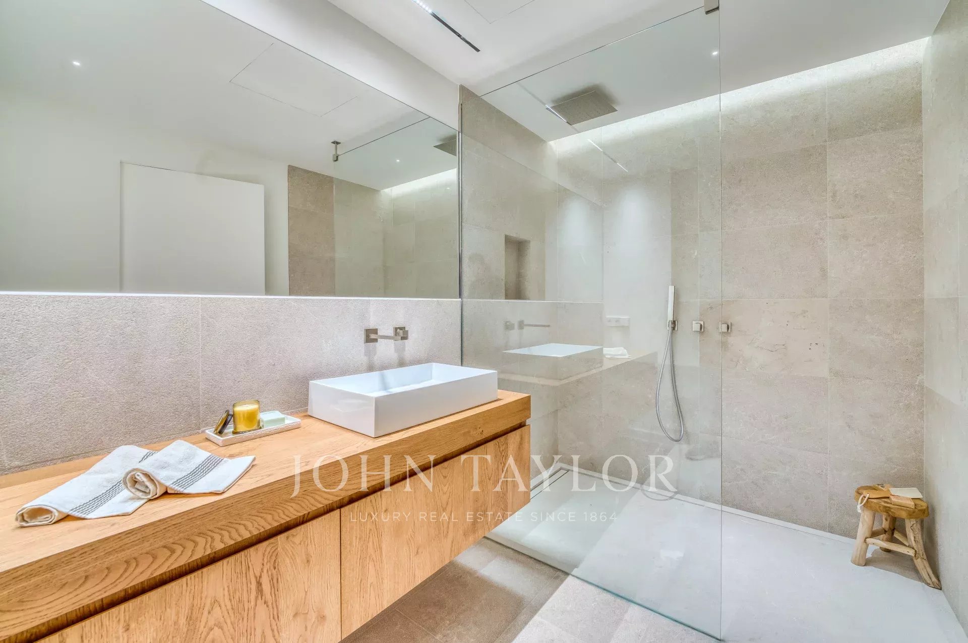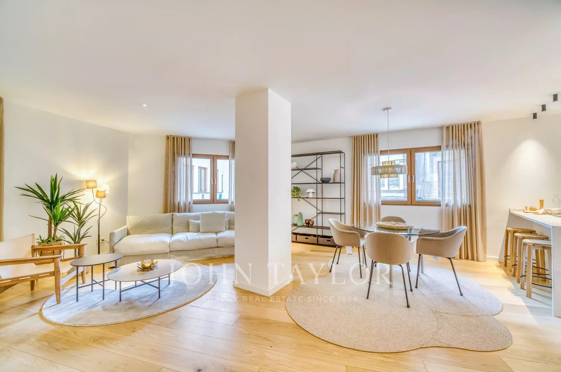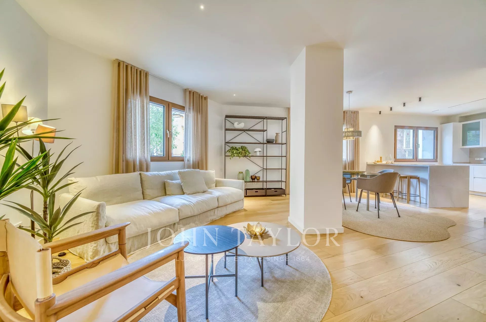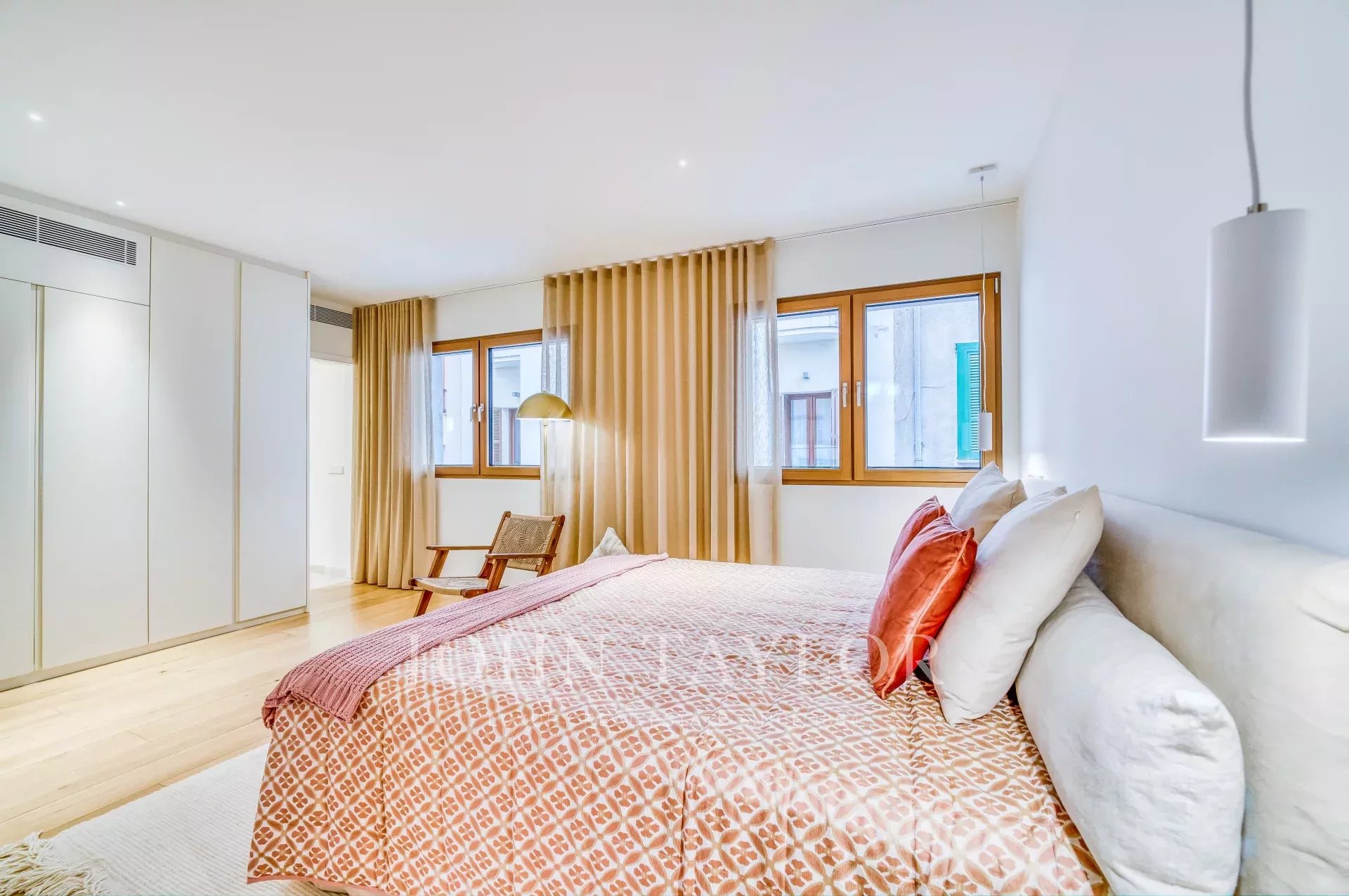 Situé sur une place tranquille au cœur de la vieille ville de Palma, ce luxueux appartement comprend deux chambres à coucher, trois salles de bains (deux en-suite, une salle de bains pour les invités), un patio confortable ainsi qu'une terrasse privée sur le toit. Tandis que l'entrée offre un plan ouvert pour la cuisine/salle à manger/salon, les chambres à coucher créent une intimité tranquille à l'arrière de l'appartement et de l'immeuble. Les grandes fenêtres personnalisées, le parquet et les tons chauds de l'intérieur assurent un environnement confortable dans toutes les pièces. Le point fort de la propriété est la terrasse privée sur le toit pour profiter du soleil ou recevoir des amis. Pour votre confort, l'ensemble de l'appartement est équipé d'un chauffage au sol, de l'air conditionné ainsi que de la domotique et dispose d'un débarras au niveau de l'entrée de l'immeuble. Si nécessaire, un garage dans le même immeuble peut être acheté en supplément.