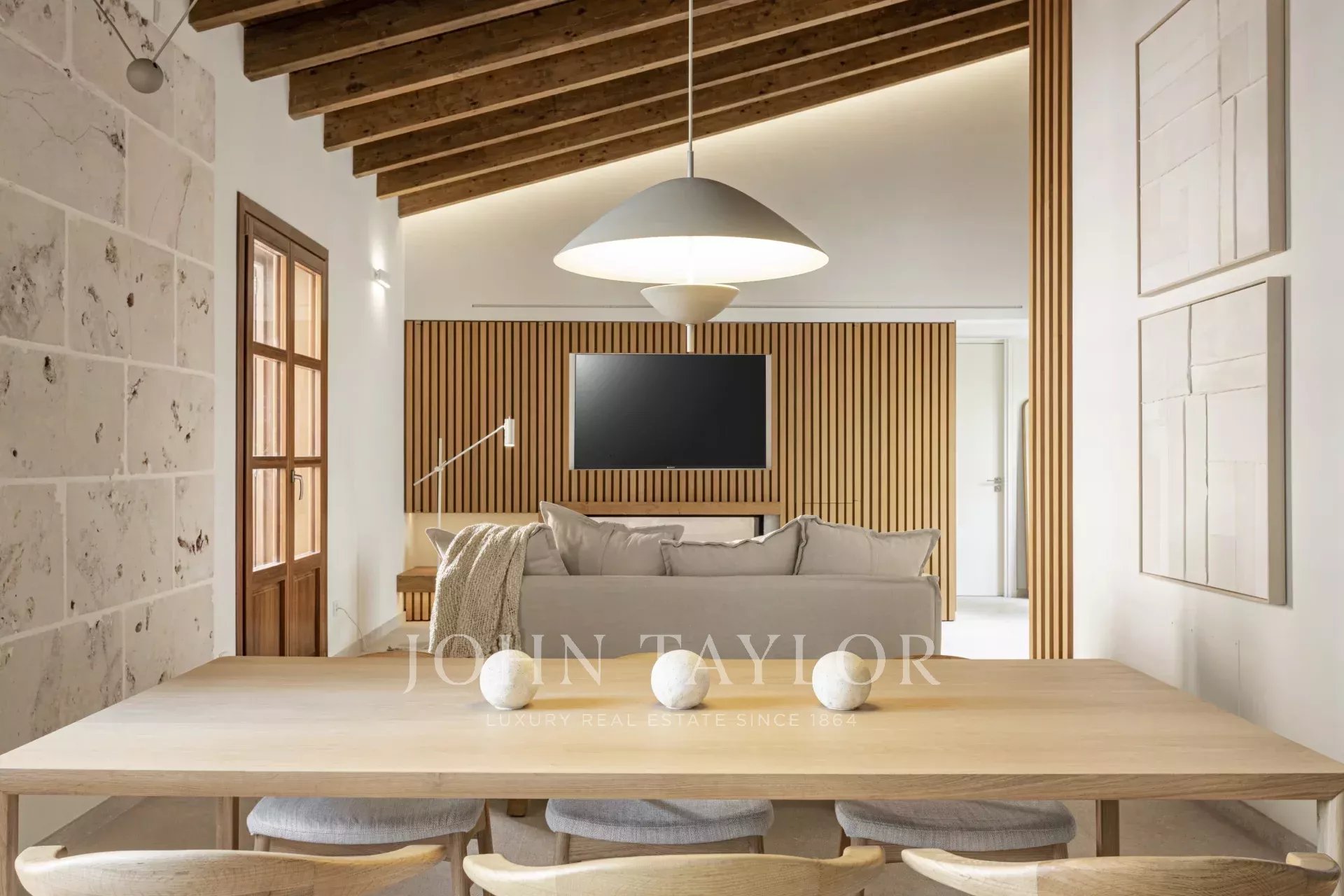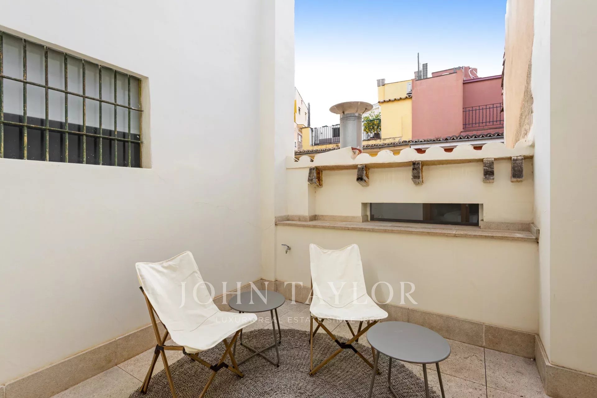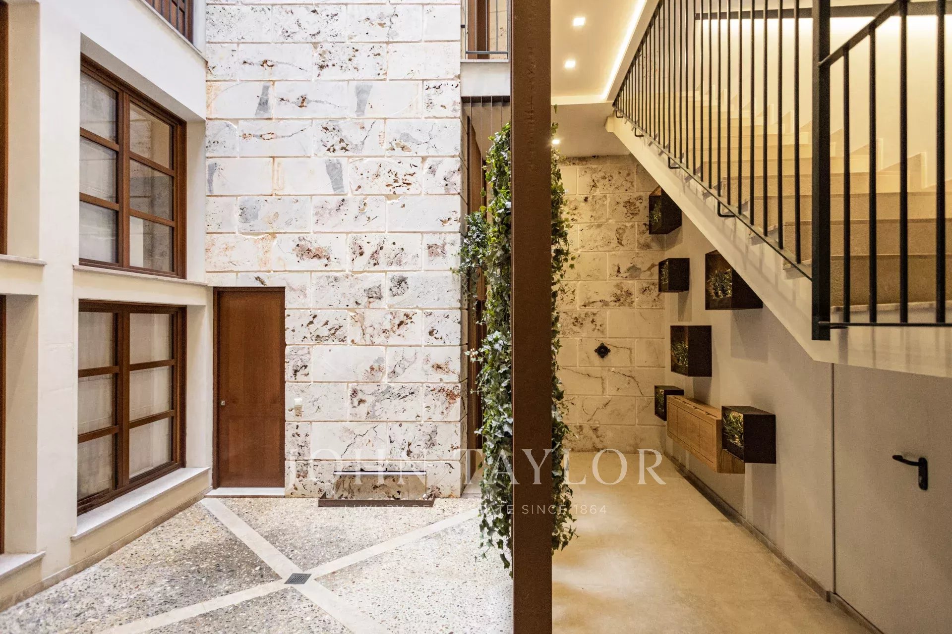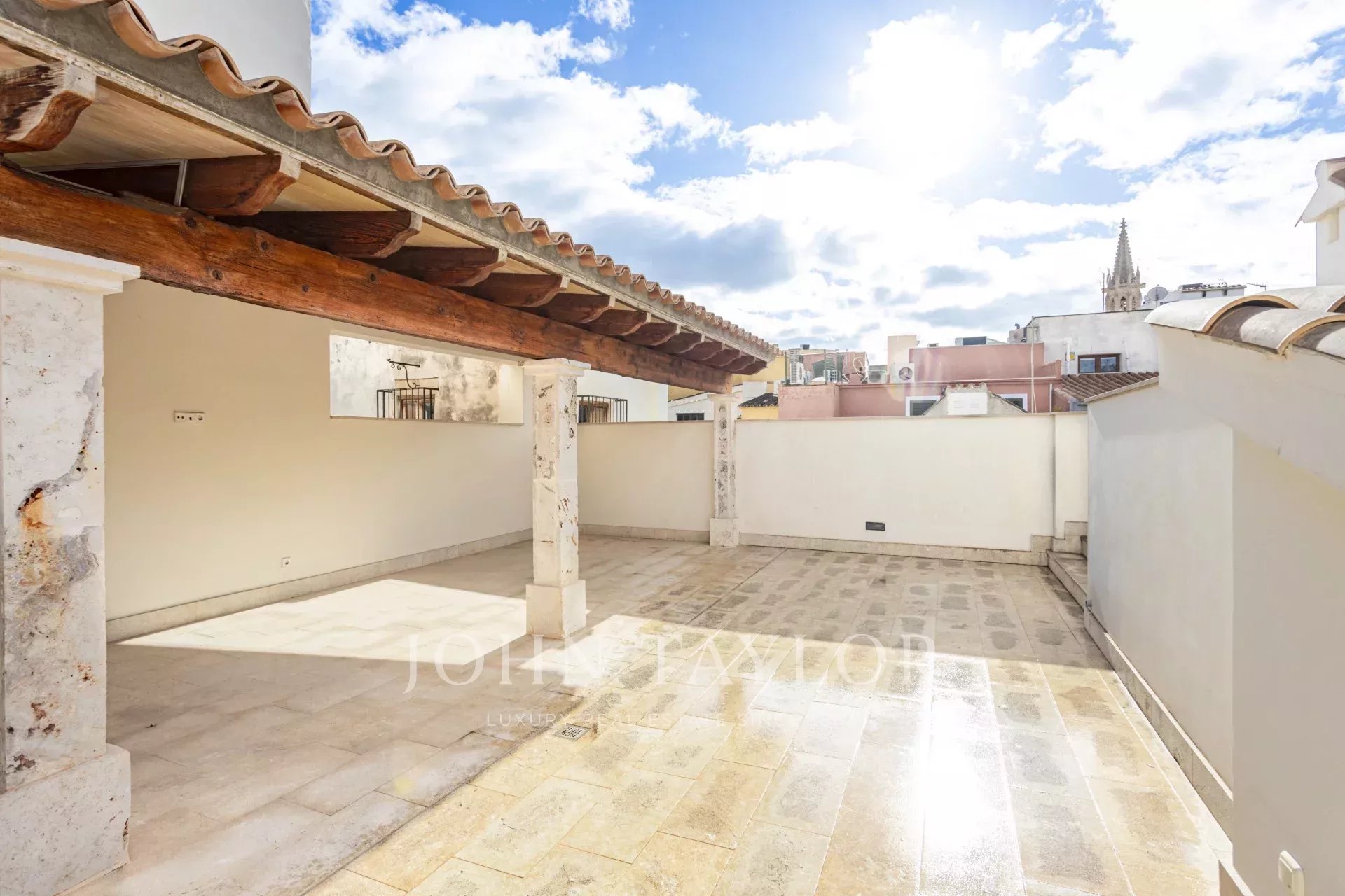 Nous vous présentons un bijou exquis niché au cœur du centre historique de Palma. Découvrez le charme de ce bâtiment méticuleusement restauré, parfaitement situé dans une charmante rue de la vieille ville de Palma, en raison de sa proximité avec la Banque d'Espagne. Le penthouse se trouve au troisième étage, auquel on accède facilement par l'ascenseur. Entrez dans le salon/salle à manger ouvert, inondé de lumière naturelle et agrémenté d'une cuisine ouverte contemporaine. Cet espace extraordinaire est doté d'une cheminée qui apporte chaleur et ambiance. D'une surface habitable d'environ 120 m2, cette résidence comprend trois chambres à coucher, chacune avec une salle de bains privative. La chambre principale offre une retraite luxueuse inégalée, avec un accès à un charmant patio de 8 m2 au même niveau. Elle a également l'usage exclusif d'un porche de 30 m2 et d'une terrasse de 30 m2. Les tons naturels et les touches de bois imprègnent l'appartement, créant une atmosphère de sérénité chaleureuse. Ce penthouse exceptionnel est complété par un spacieux garage de 30 m2, directement relié à l'élégante entrée de l'immeuble. Cet espace polyvalent permet non seulement d'accueillir une grande voiture, mais aussi de répondre à vos besoins de stockage.