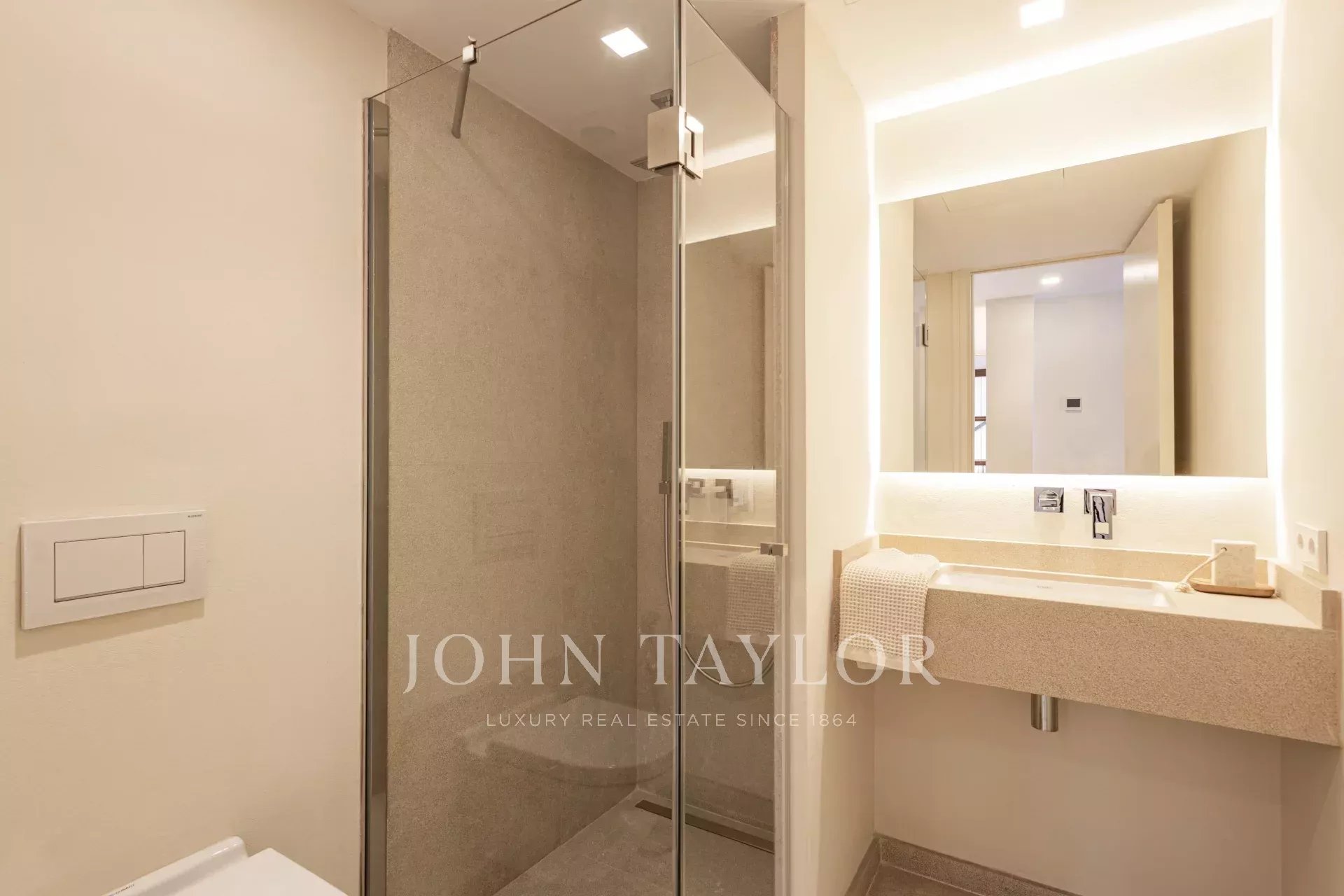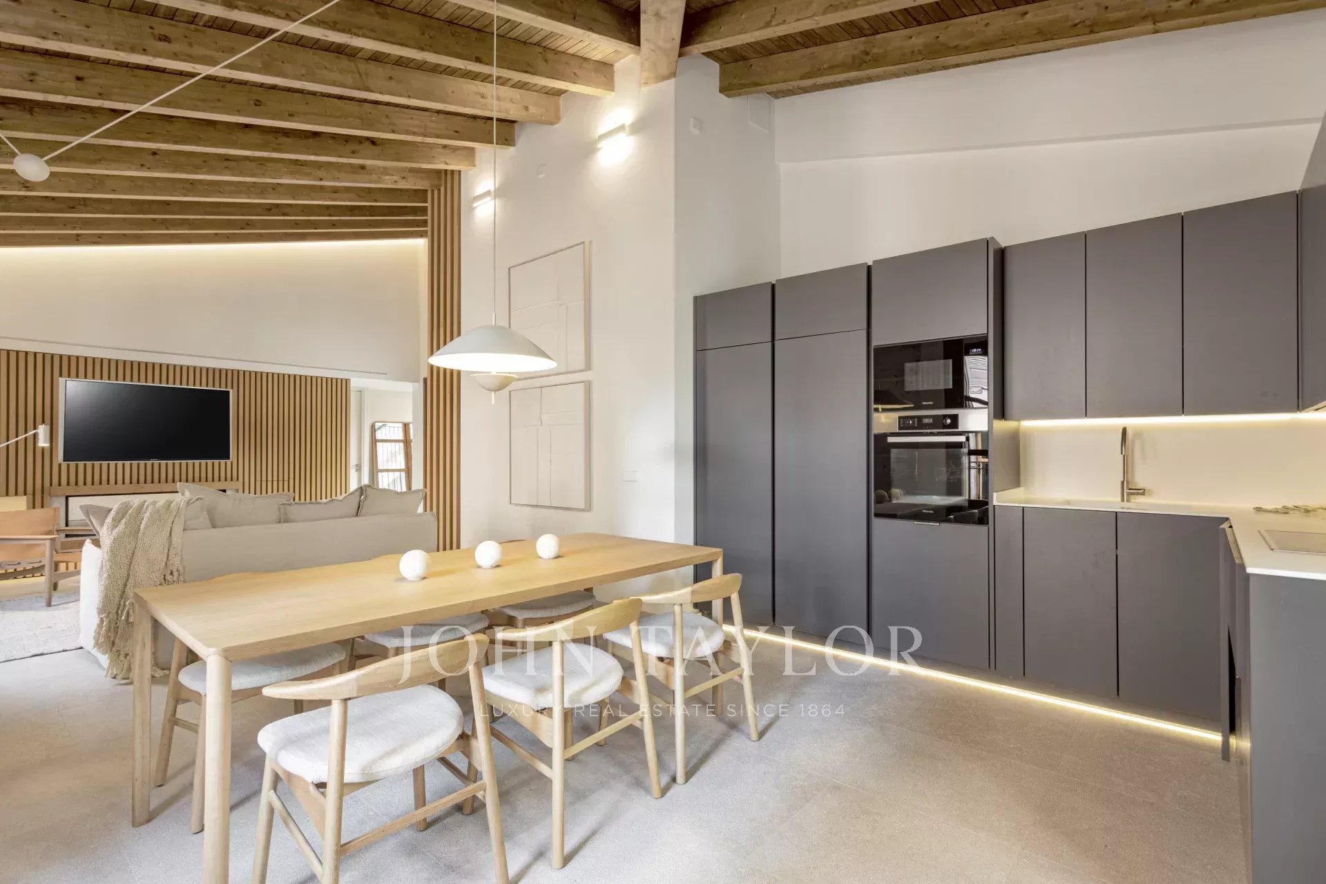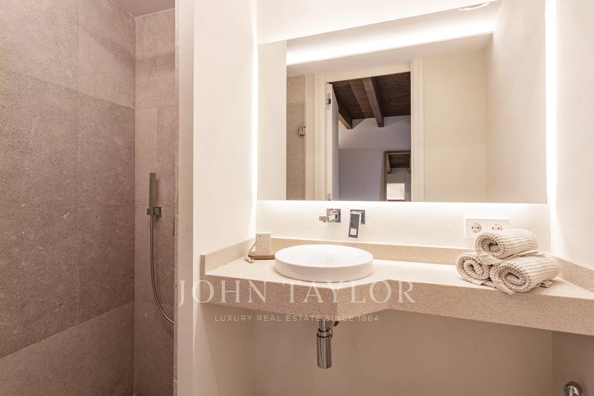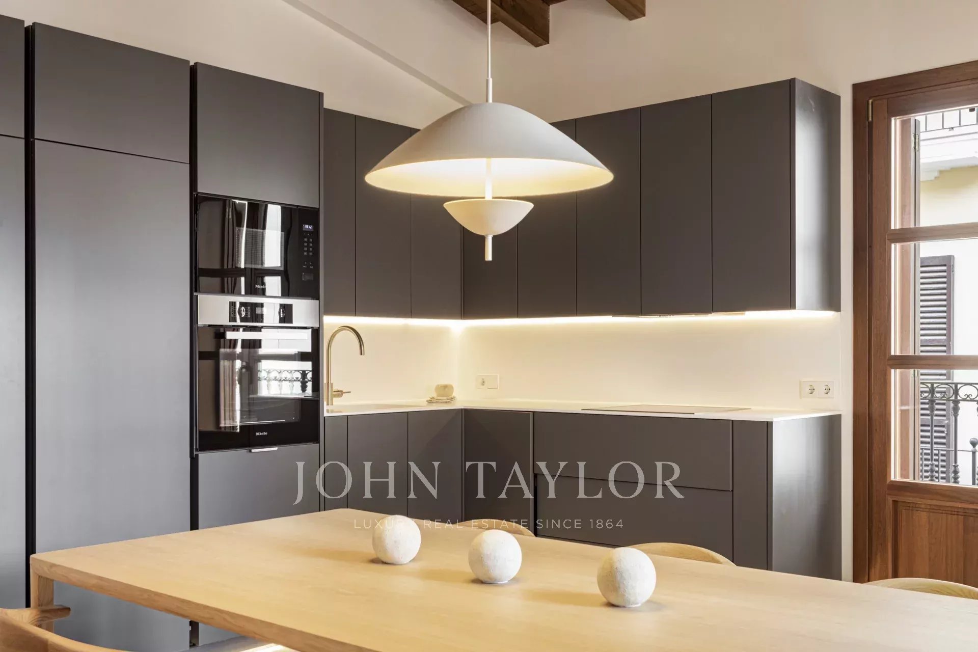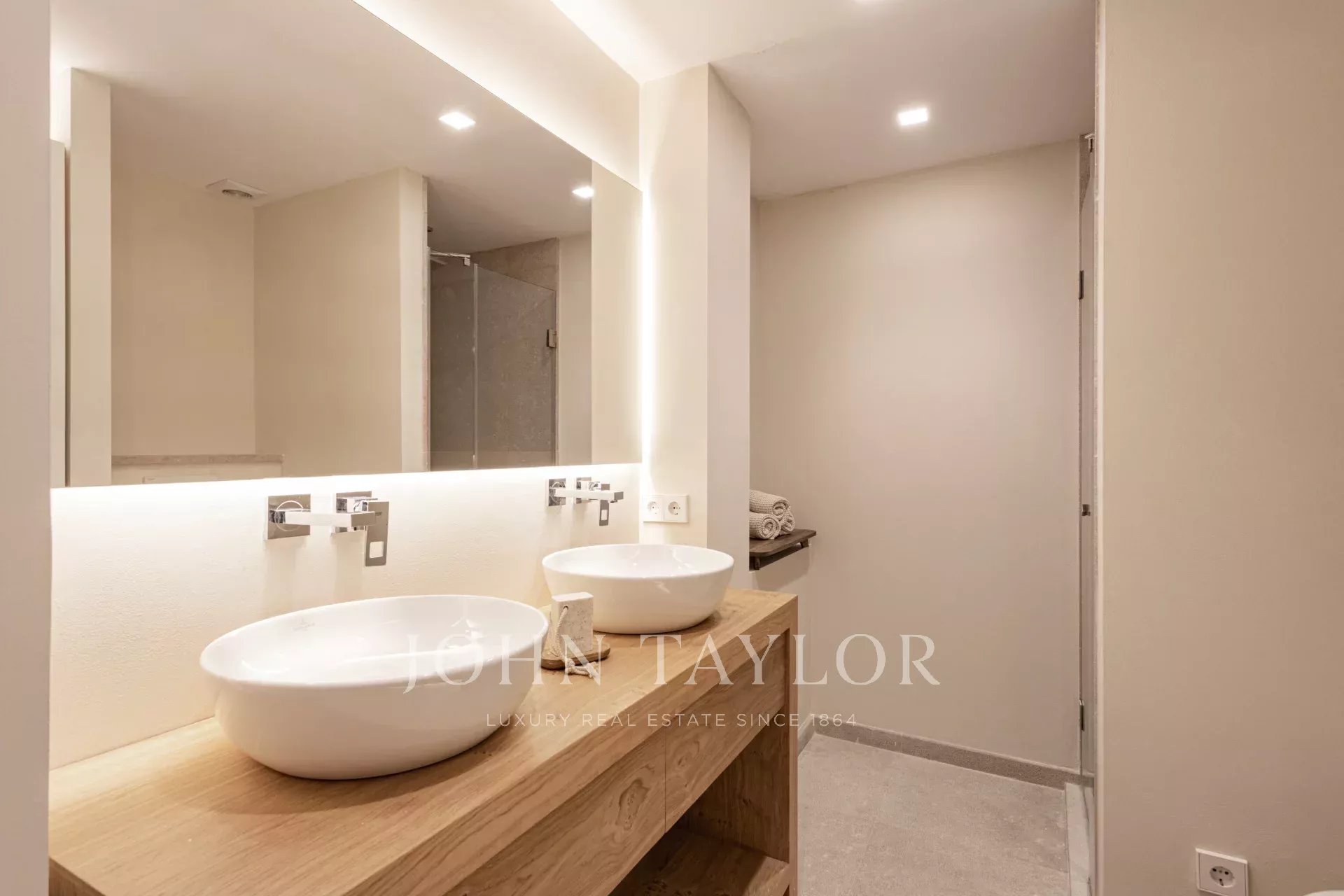 Nous vous présentons un bijou exquis niché au cœur du centre historique de Palma. Découvrez le charme de ce bâtiment méticuleusement restauré, parfaitement situé dans une charmante rue de la vieille ville de Palma, en raison de sa proximité avec la Banque d'Espagne. Le penthouse se trouve au troisième étage, auquel on accède facilement par l'ascenseur. Entrez dans le salon/salle à manger ouvert, inondé de lumière naturelle et agrémenté d'une cuisine ouverte contemporaine. Cet espace extraordinaire est doté d'une cheminée qui apporte chaleur et ambiance. D'une surface habitable d'environ 120 m2, cette résidence comprend trois chambres à coucher, chacune avec une salle de bains privative. La chambre principale offre une retraite luxueuse inégalée, avec un accès à un charmant patio de 8 m2 au même niveau. Elle a également l'usage exclusif d'un porche de 30 m2 et d'une terrasse de 30 m2. Les tons naturels et les touches de bois imprègnent l'appartement, créant une atmosphère de sérénité chaleureuse. Ce penthouse exceptionnel est complété par un spacieux garage de 30 m2, directement relié à l'élégante entrée de l'immeuble. Cet espace polyvalent permet non seulement d'accueillir une grande voiture, mais aussi de répondre à vos besoins de stockage.