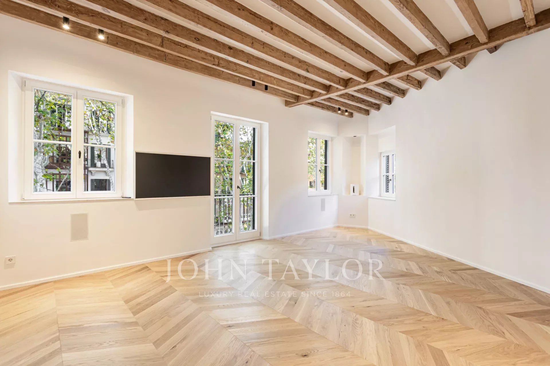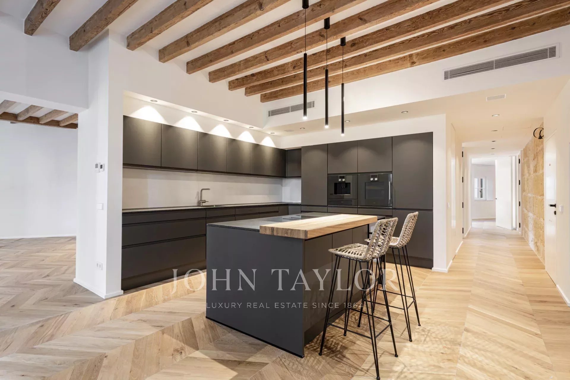 Découvrez cet appartement de luxe exceptionnel, situé au cœur de la vieille ville de Palma, sur la célèbre Rambla. Achevée en octobre 2024, cette propriété allie l'élégance moderne au charme historique, offrant un accès direct au style de vie animé de Palma, à ses restaurants et à ses boutiques. L'appartement est spacieux et ouvert, avec une cuisine entièrement équipée, une salle à manger et un salon. Des fenêtres allant du sol au plafond inondent l'espace de lumière naturelle, mettant en valeur le superbe parquet en chêne naturel, les murs en pierre marée d'origine et les poutres en bois authentiques. Ce mélange de design moderne et de matériaux traditionnels crée une atmosphère chaleureuse et accueillante. La propriété comprend trois chambres et trois salles de bains, dont deux avec salle de bains privative. La chambre principale dispose d'un dressing privé, gage de confort et de luxe. L'une des caractéristiques les plus remarquables est la terrasse communautaire qui offre des vues à couper le souffle sur la Rambla bordée d'arbres, idéale pour se détendre ou recevoir des invités. Possibilité de louer une place de parking à quelques mètres. Cette superbe propriété allie parfaitement les finitions haut de gamme au charme de la vieille ville de Palma, ce qui en fait un choix idéal pour ceux qui recherchent une vie de luxe dans un emplacement de choix.