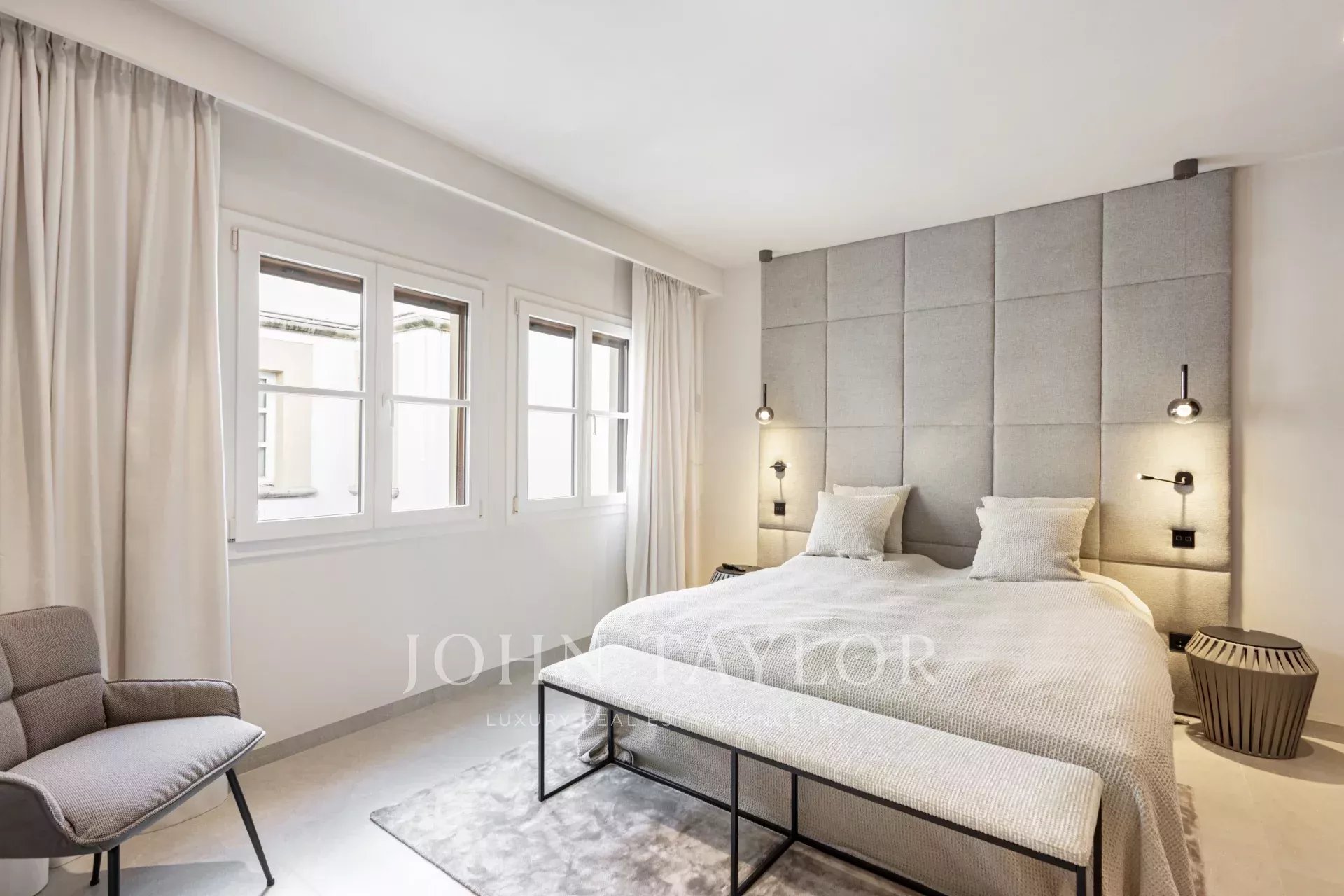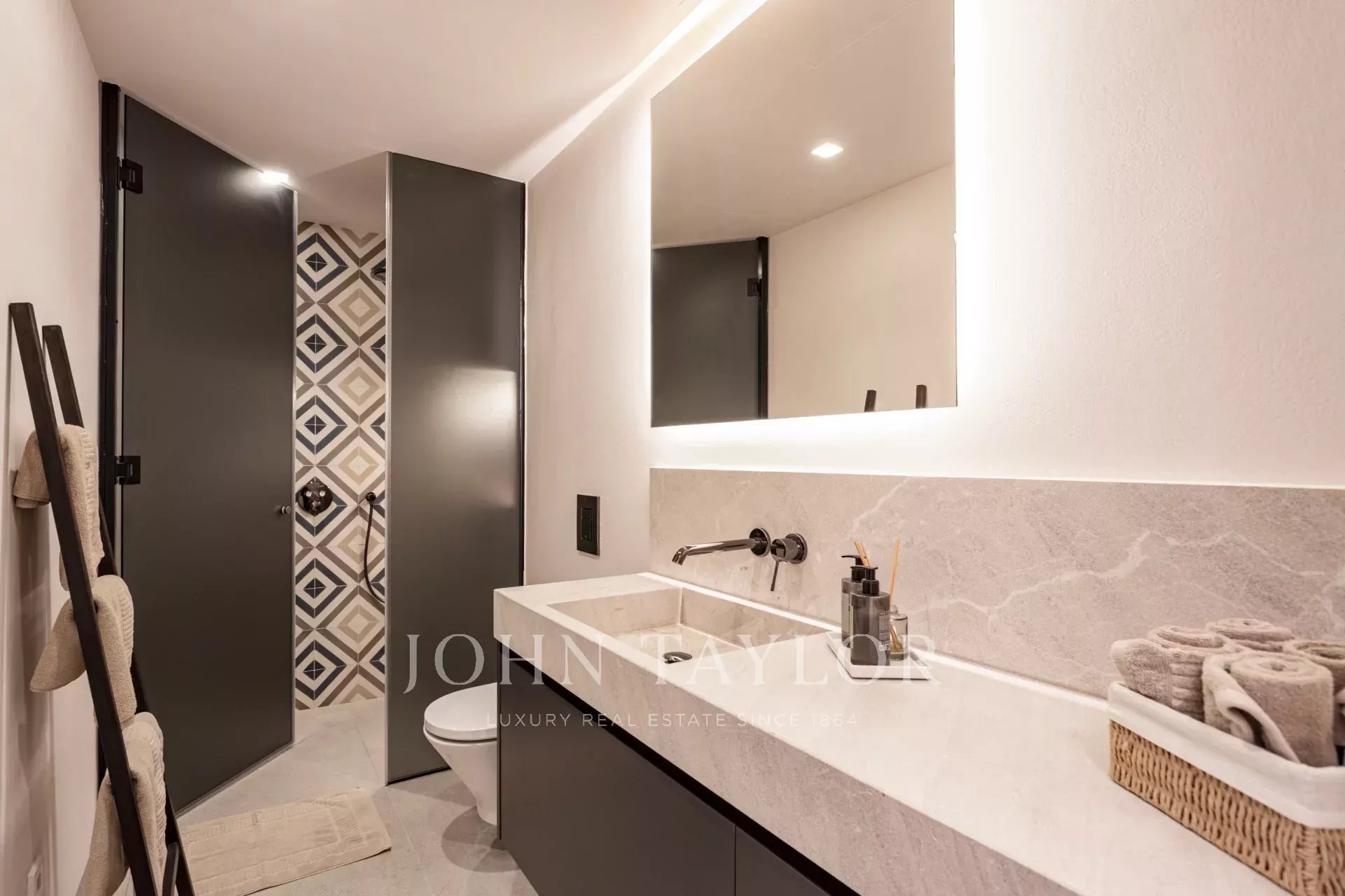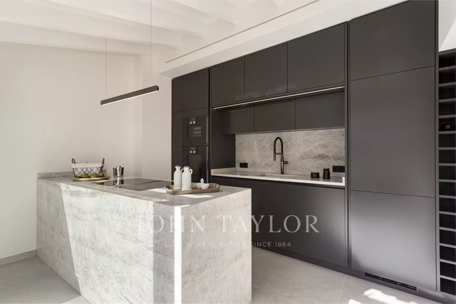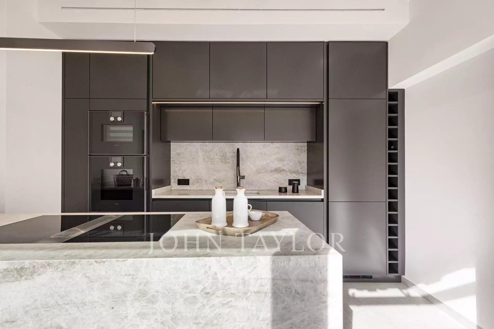 D'une superficie totale de 243 m², dont 58,9 m² de terrasses, l'appartement vous accueille avec un élégant hall d'entrée menant aux chambres : une chambre principale avec salle de bains privative et deux chambres supplémentaires partageant une élégante salle de bains. Au niveau supérieur, un spacieux salon et salle à manger avec cheminée à gaz et présentoir à vin sur mesure s'ouvre sur la terrasse adjacente - le cadre idéal pour des soirées élégantes ou des moments de détente sous les étoiles.