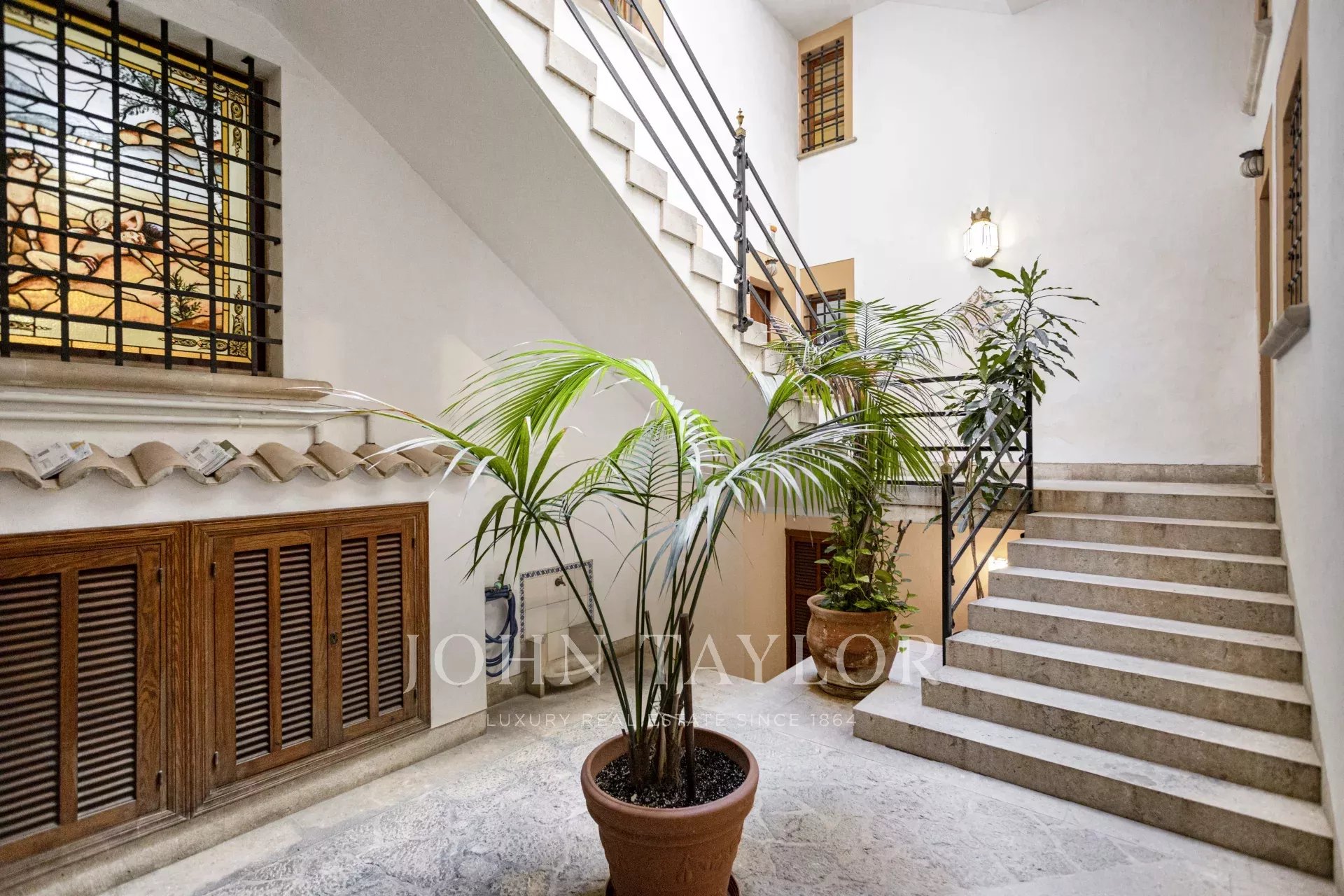 Situé dans l'une des rues les plus charmantes de la vieille ville de Palma, à quelques pas de l'hôtel de ville et de la cathédrale, cet exceptionnel penthouse en duplex allie merveilleusement le charme historique, le luxe moderne et le style de vie méditerranéen. Il occupe les deux derniers étages d'un bâtiment historique restauré avec soin, doté d'une ancienne porte d'entrée en bois et d'une charmante cour intérieure, offrant un haut degré d'intimité avec un seul voisin et l'accès au dernier étage par l'ascenseur.