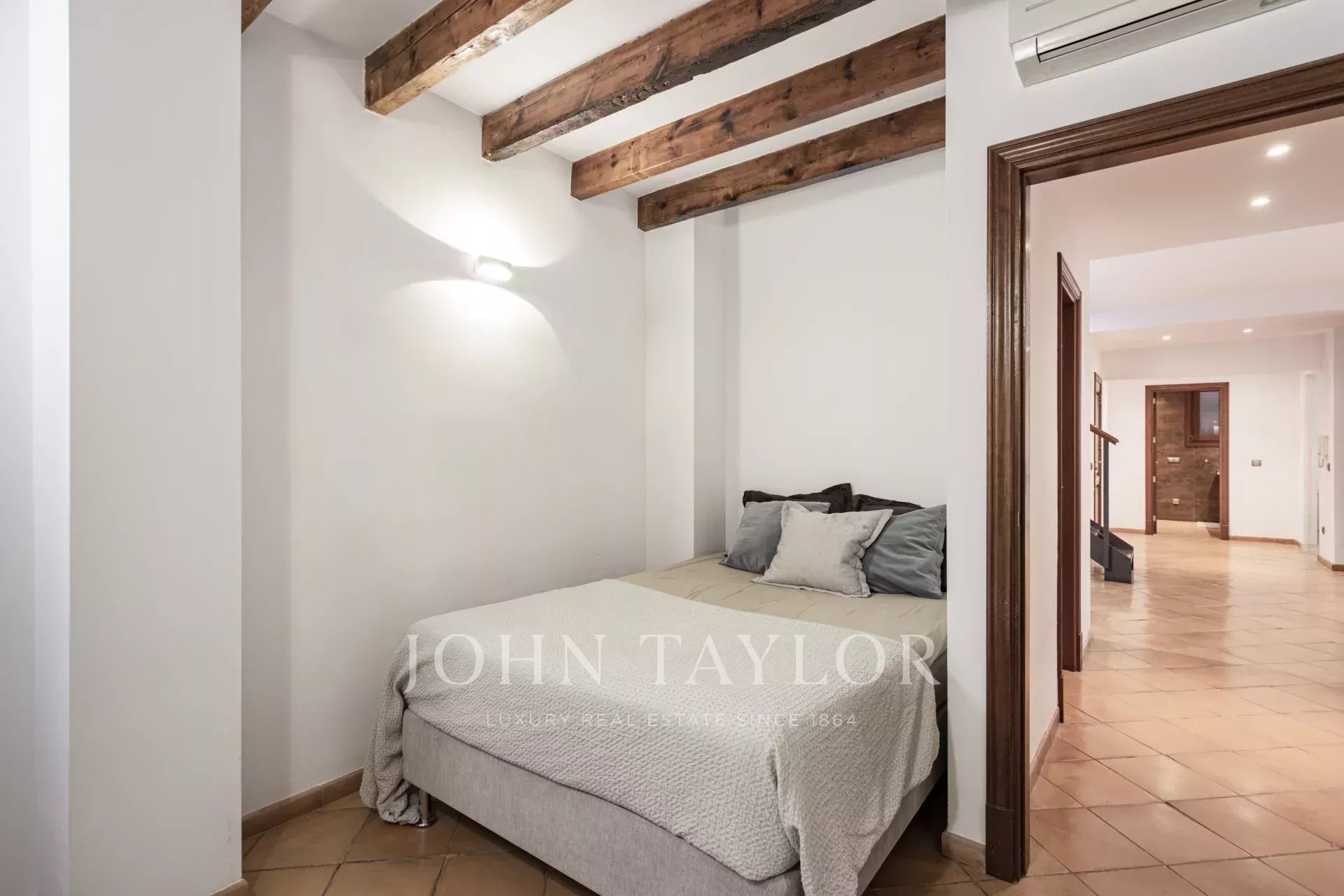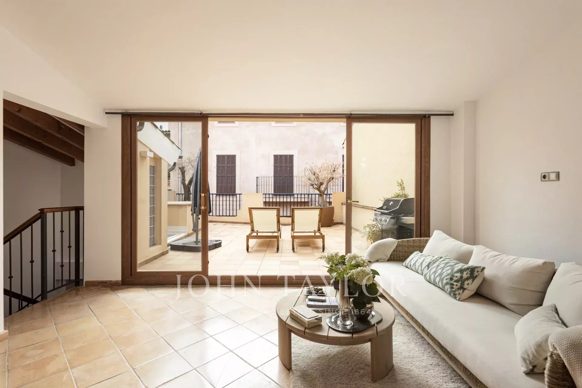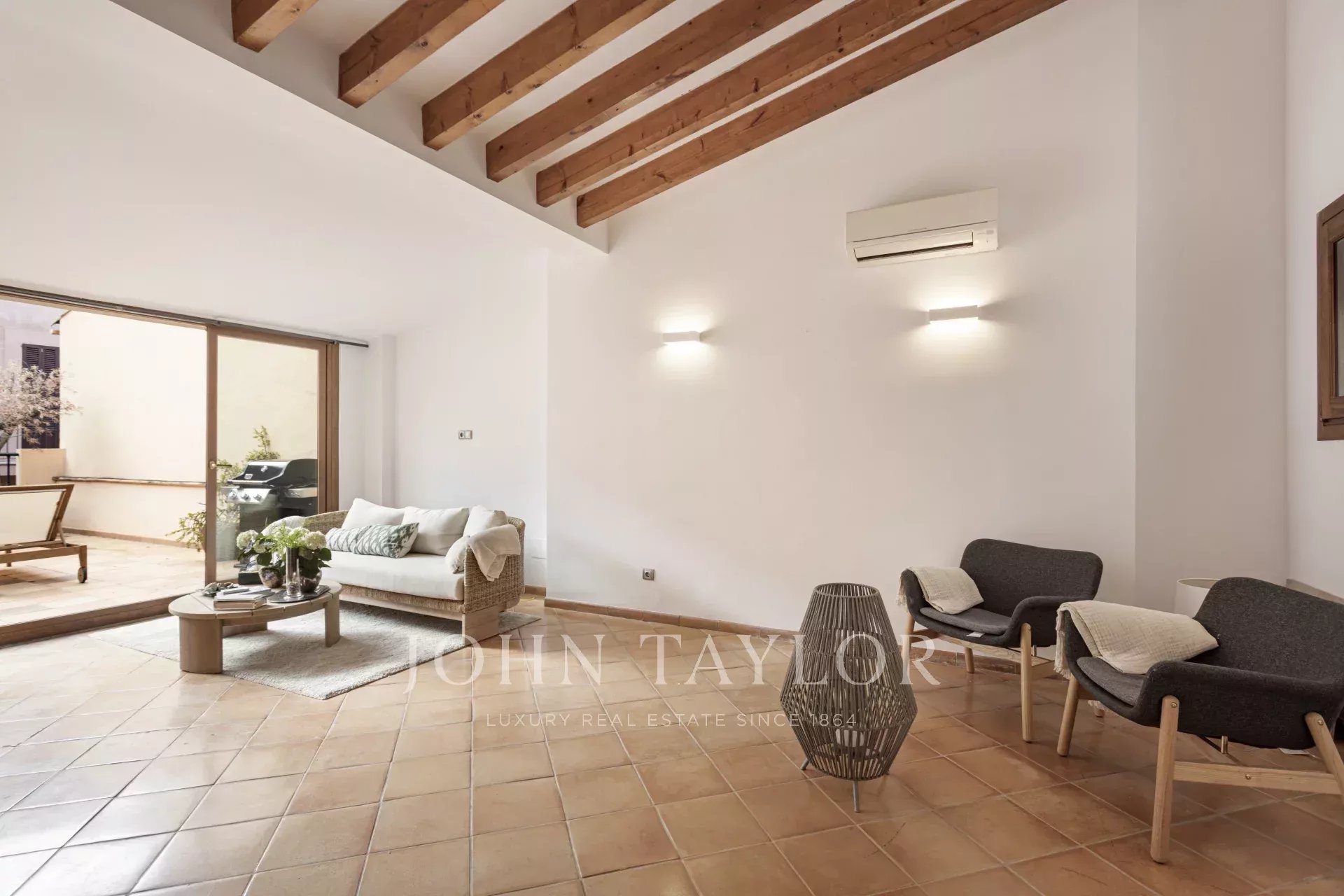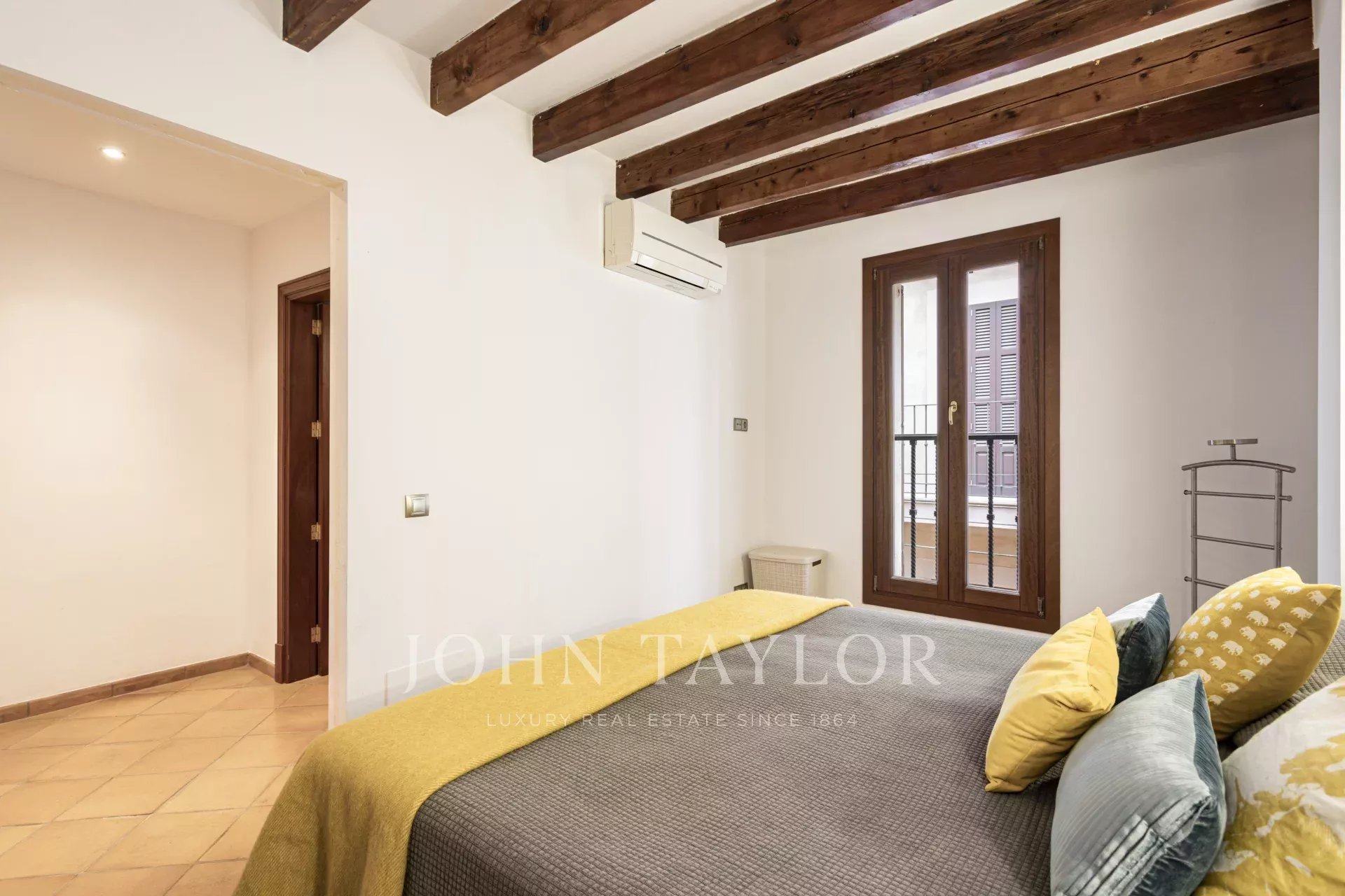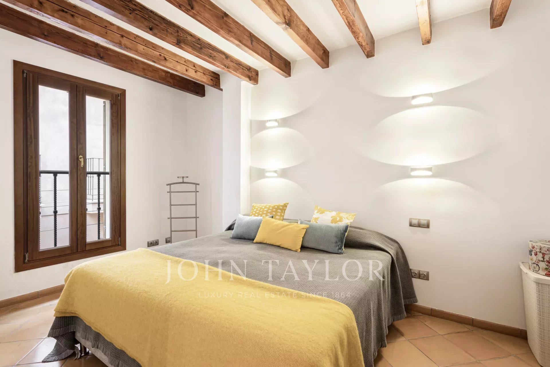 La propriété fait partie d'une petite communauté de seulement deux unités résidentielles et d'un local commercial, ce qui garantit l'intimité et l'exclusivité. Elle dispose également de deux entrées indépendantes : l'une par l'escalier commun et l'autre par un accès privé par ascenseur - une caractéristique rare et très recherchée dans le centre historique de Palma.