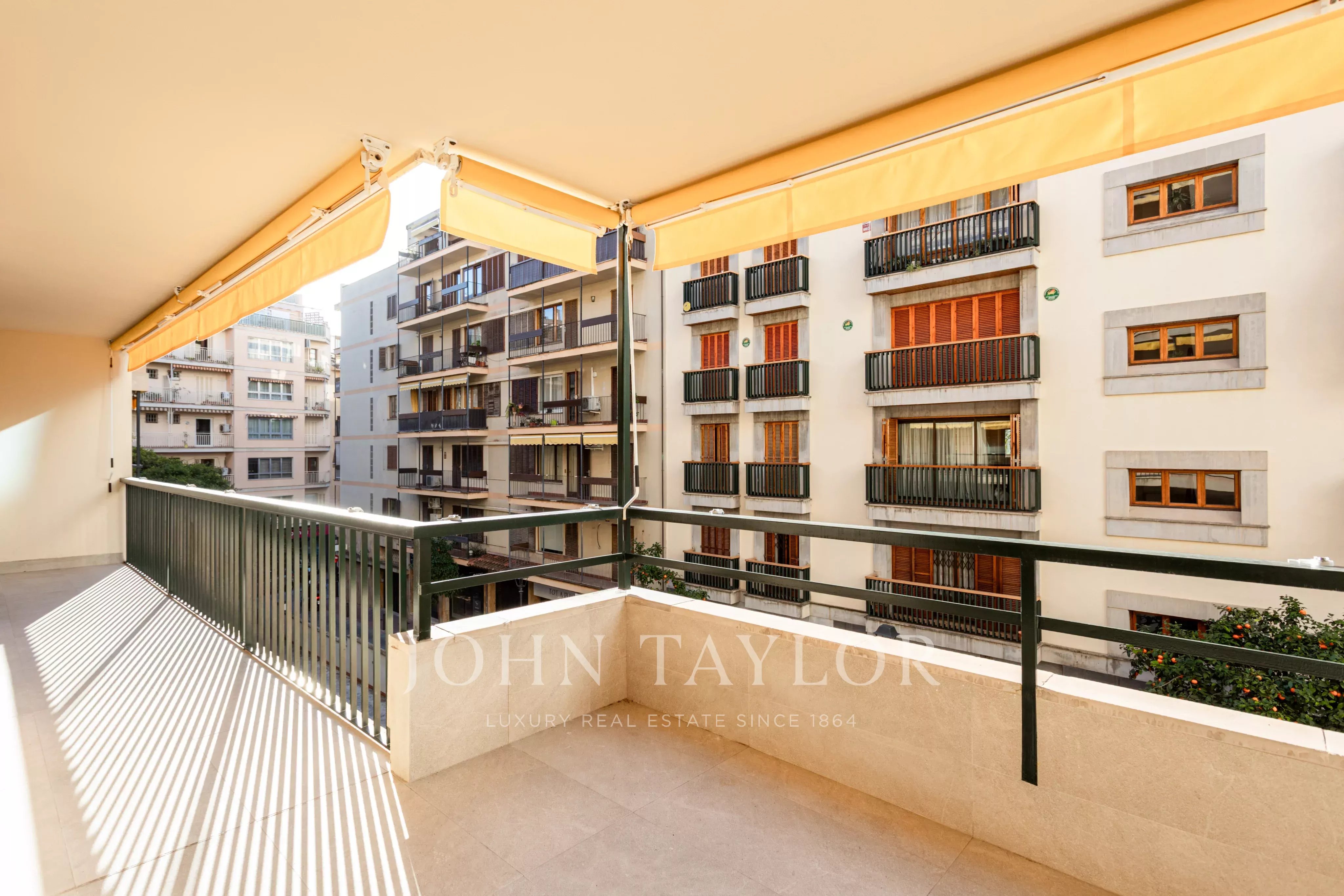 Ce fantastique appartement entièrement rénové est situé dans l'un des quartiers les plus prisés et les plus confortables de la vieille ville, à quelques pas de Jaime III, tout en restant à l'abri de la circulation et du bruit. Le nouvel agencement comprend un spacieux salon, une salle à manger et une cuisine design entièrement équipée, avec des armoires à vin. Cet espace de vie lumineux s'ouvre sur une terrasse couverte de 30 m², idéale pour les repas en plein air et les moments de détente à l'extérieur.