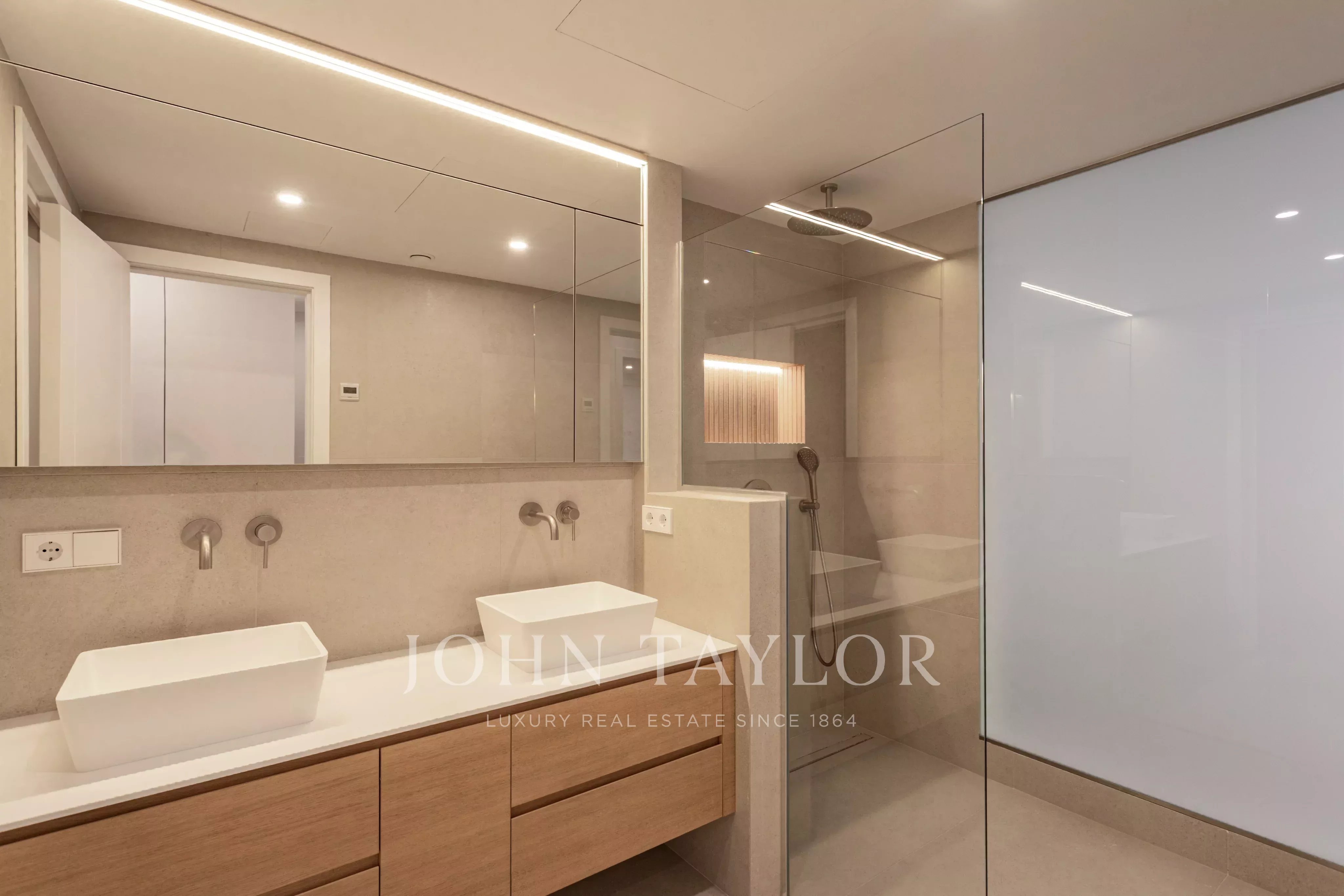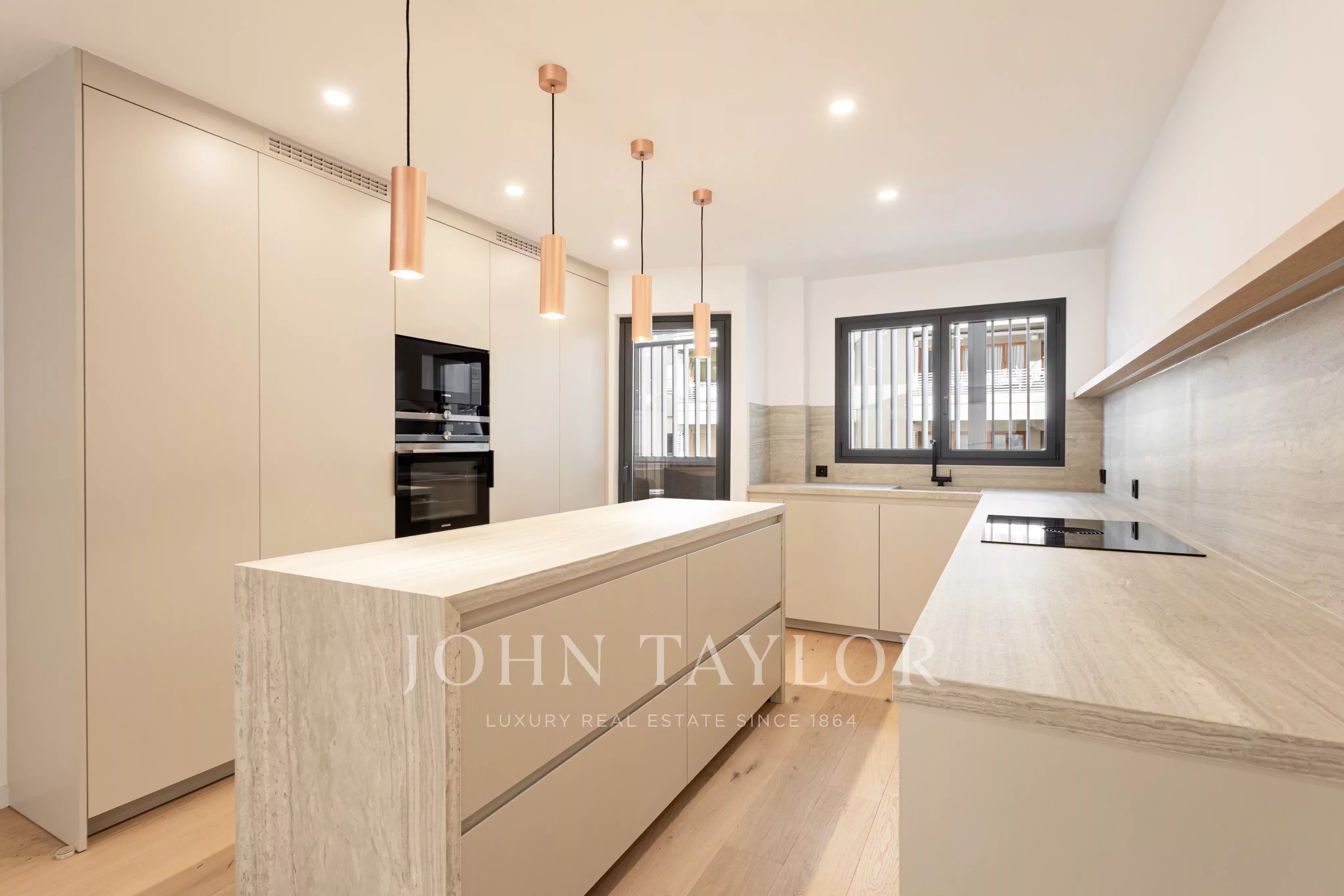 Des finitions haut de gamme sont présentes dans toute la propriété, notamment du parquet, une cuisine design équipée d'appareils Miele et Bora, et d'élégantes surfaces en pierre naturelle. Le chauffage central au gaz, la climatisation centrale et le chauffage par le sol dans le dressing garantissent le confort tout au long de l'année.