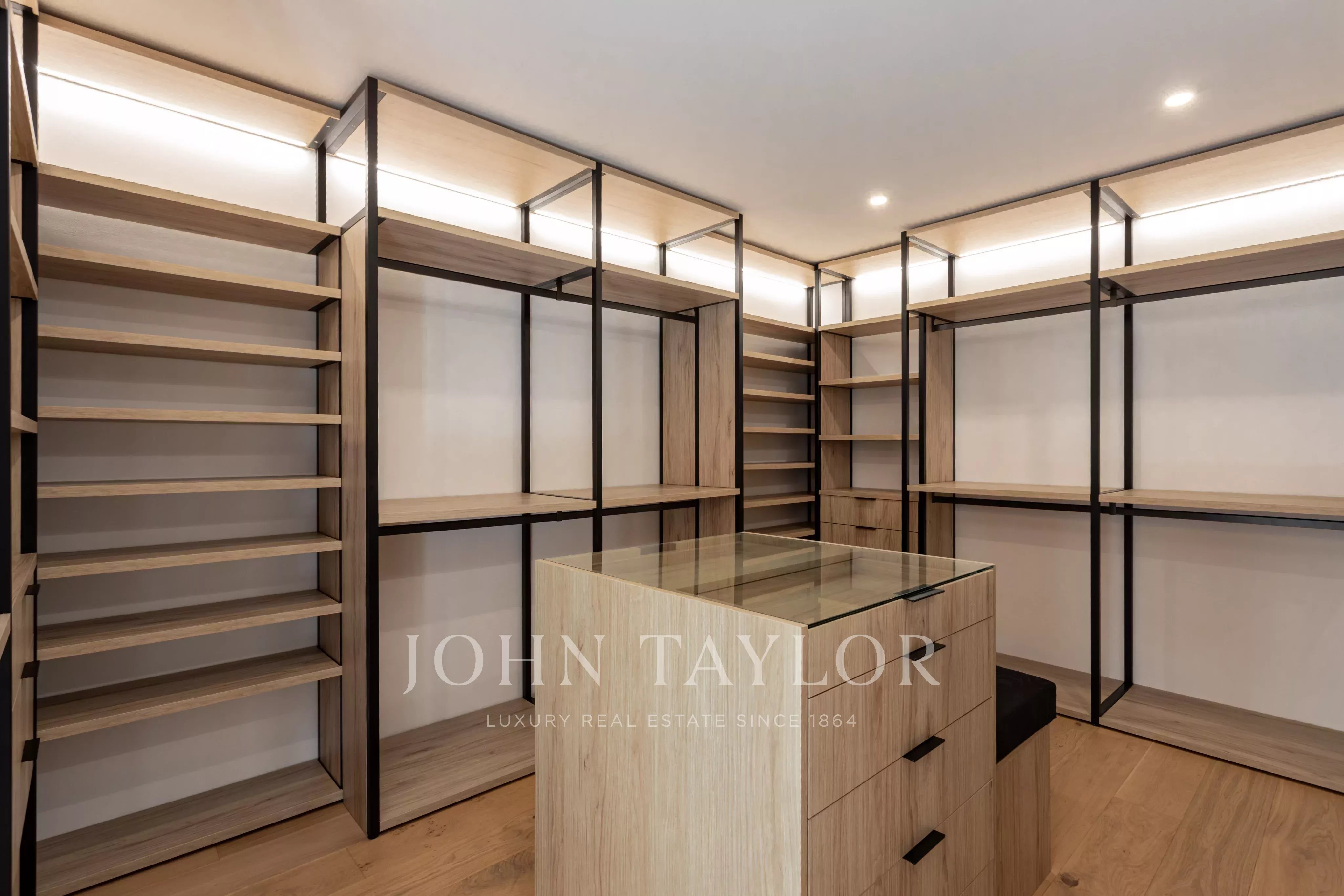 Adjacent à la cuisine se trouve une buanderie séparée avec des espaces de rangement supplémentaires. La suite du propriétaire est une retraite privée, offrant une chambre généreuse, une salle de bains attenante et deux dressings. L'appartement comprend également deux chambres supplémentaires, une salle de bains complète et des toilettes pour les invités.