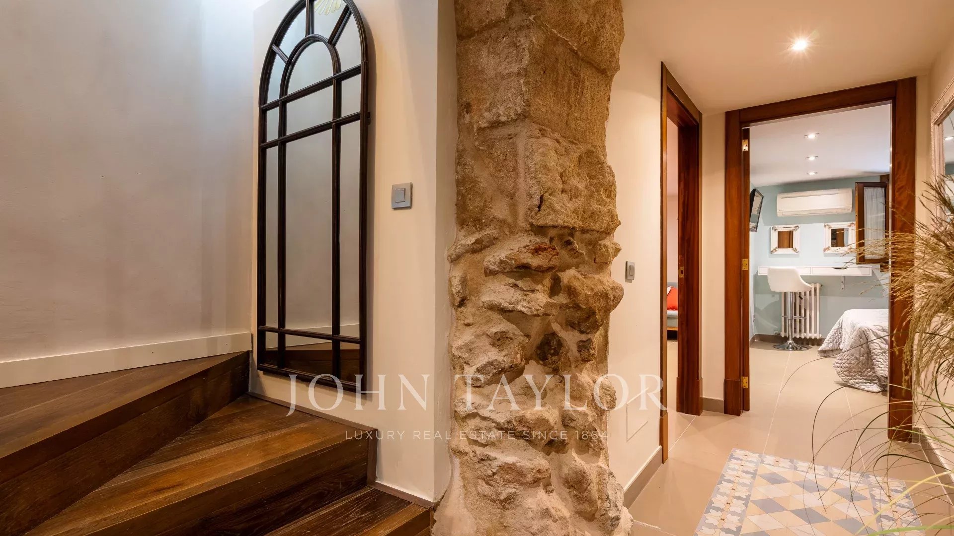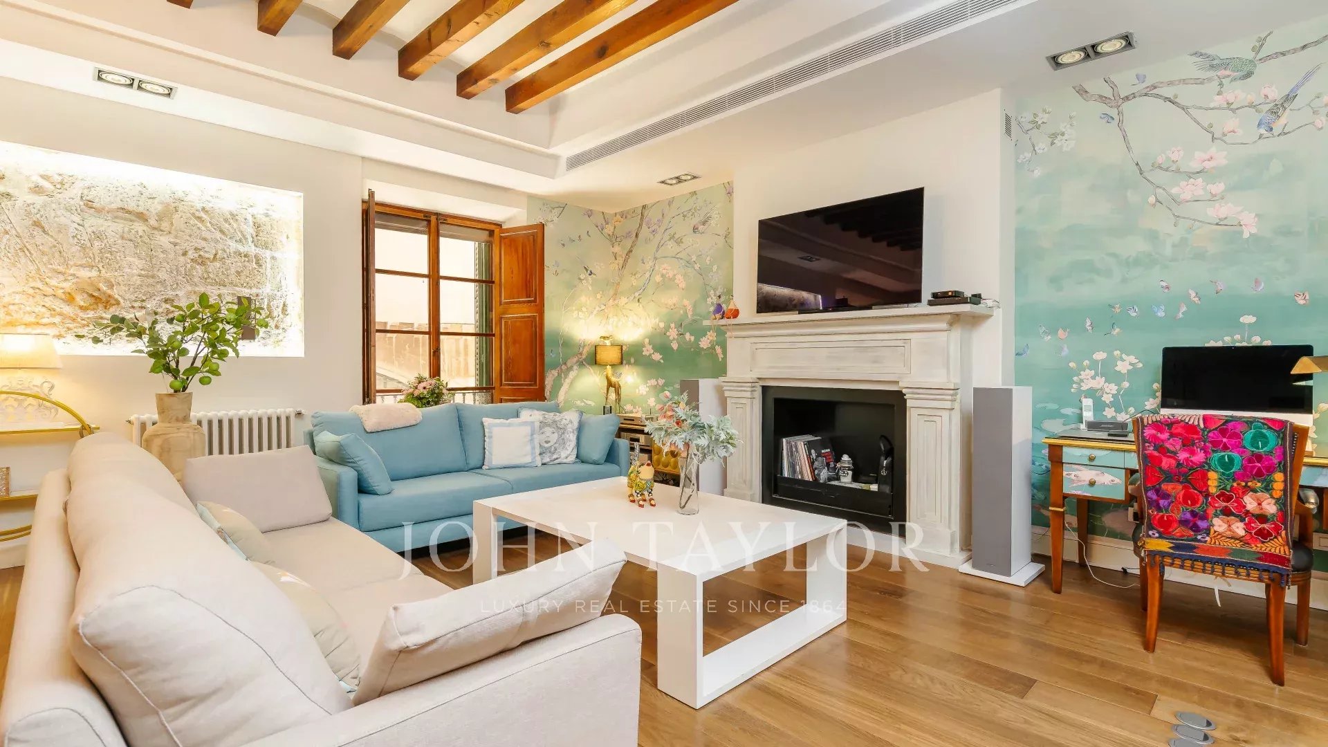 Situé au cœur de la vieille ville de Palma, juste à côté de la cathédrale, ce bâtiment historique représente la grandeur du passé avec l'avantage d'avoir été complètement réformé il y a quelques années. Avec seulement 5 résidences, cet appartement mezzanine en duplex qui a été entièrement rénové en 2020 offre un intérieur très spacieux, composé d'une cuisine ouverte entièrement équipée, d'une salle à manger et d'un salon avec une cheminée représentative, idéale pour des soirées douillettes à la maison. De grandes fenêtres assurent un maximum de lumière naturelle. La chambre principale avec salle de bains ensuite se trouve également au rez-de-chaussée. A l'étage inférieur se trouvent deux autres chambres et une salle de bains. La propriété est équipée d'une climatisation, d'un chauffage central au gaz garantissant une température parfaite tout au long de l'année et d'un parking privé pour une voiture. Sans aucun doute l'option parfaite pour ceux qui recherchent un emplacement privilégié qui donne à ses propriétaires l'accès à tout ce que la vieille ville de Palma offre.