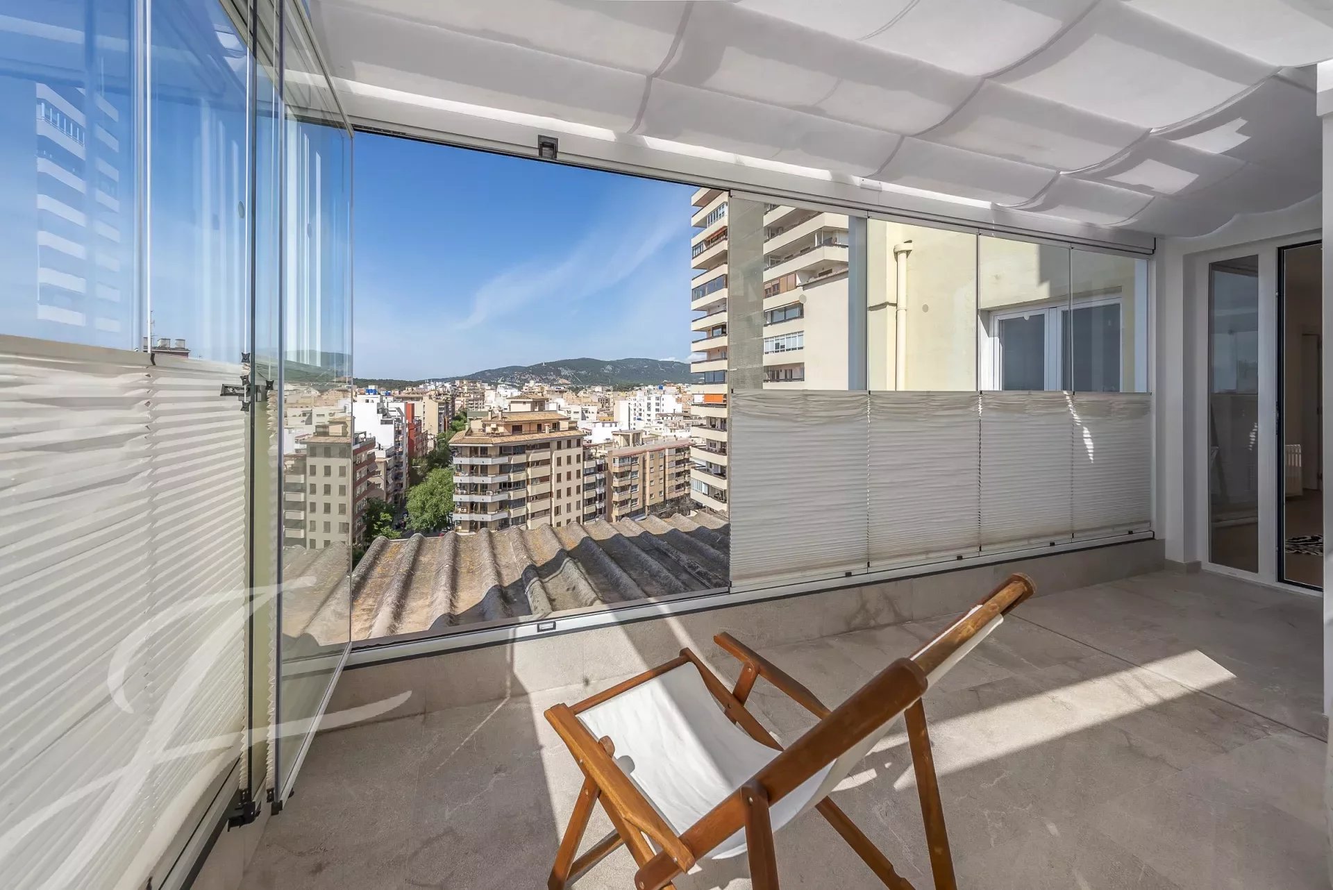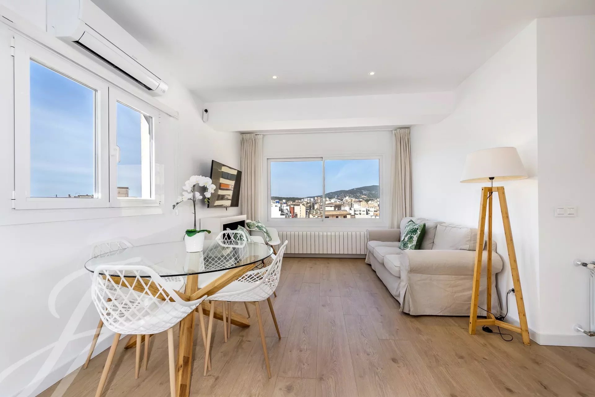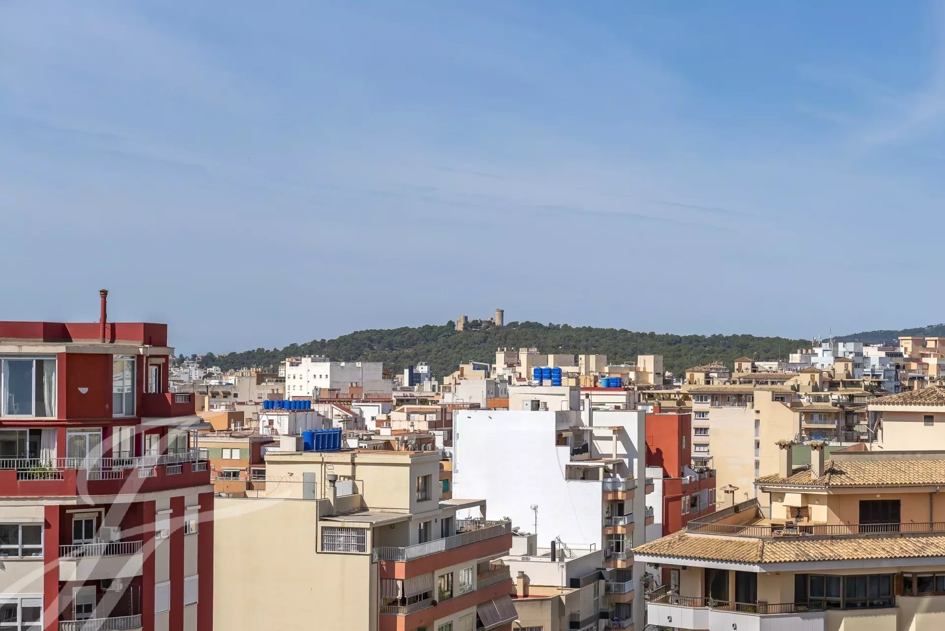 Lumineux penthouse récemment rénové avec des vues spectaculaires sur Palma. Très confortable et avec 2 grandes terrasses pour profiter du soleil ou de l'ombre à tout moment de la journée. De conception très moderne et confortable, il offre deux chambres à coucher, une cuisine ouverte et un salon, très bien différenciés l'un de l'autre et avec accès aux terrasses au même niveau. Une cuisine entièrement équipée, le chauffage central et l'air conditionné, ainsi qu'une cheminée garantissent un maximum de confort tout au long de l'année.Parking.