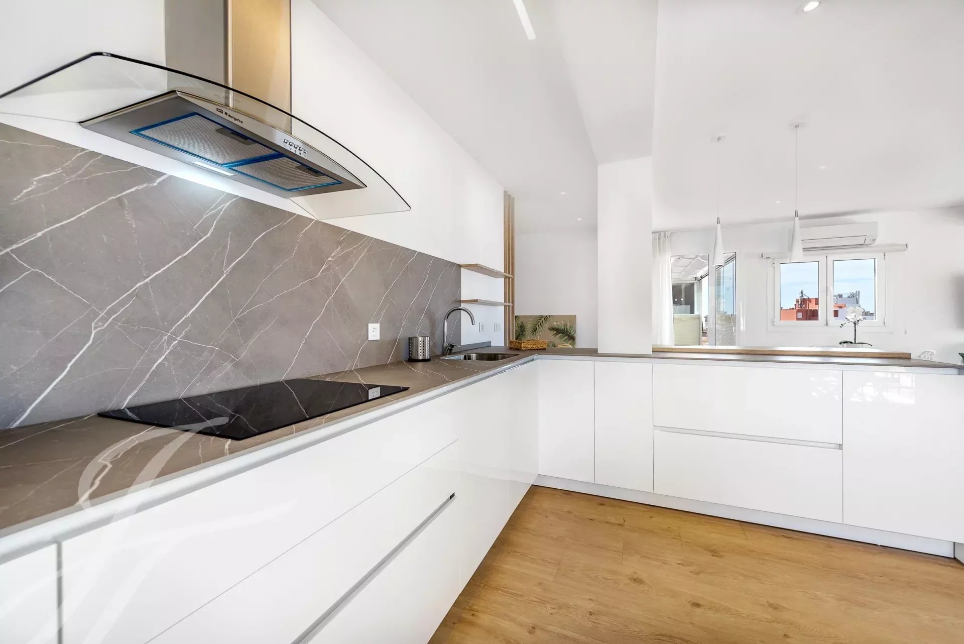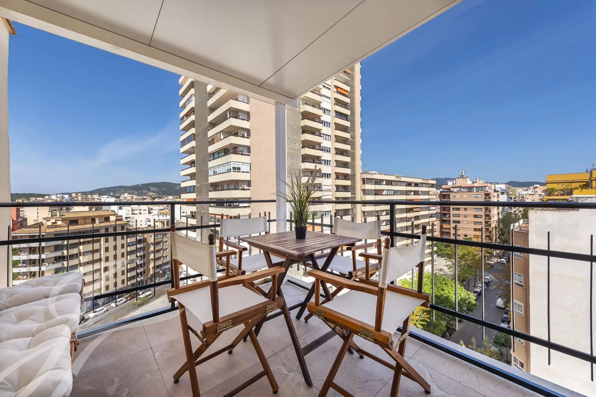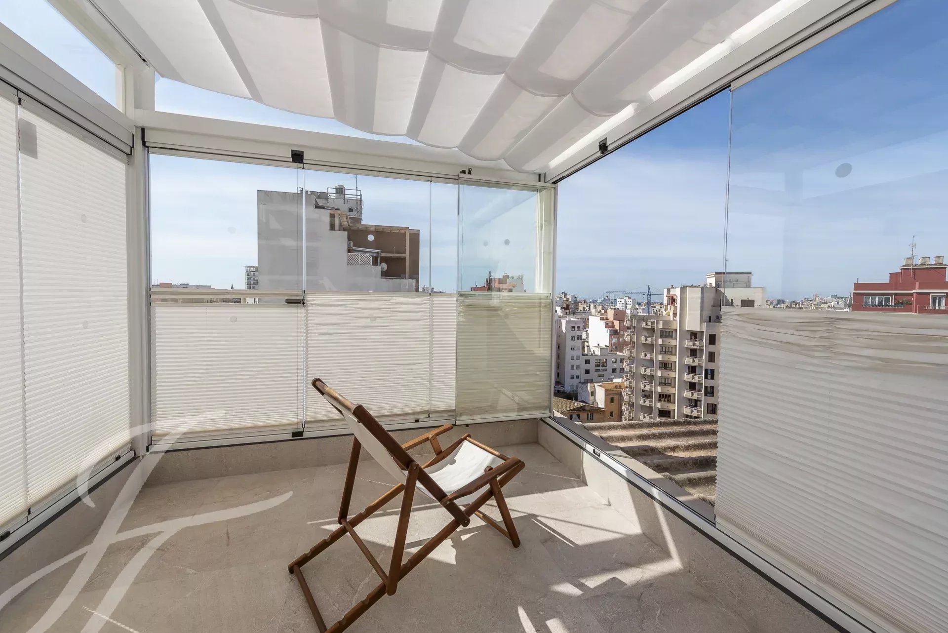Lumineux penthouse récemment rénové avec des vues spectaculaires sur Palma. Très confortable et avec 2 grandes terrasses pour profiter du soleil ou de l'ombre à tout moment de la journée. De conception très moderne et confortable, il offre deux chambres à coucher, une cuisine ouverte et un salon, très bien différenciés l'un de l'autre et avec accès aux terrasses au même niveau. Une cuisine entièrement équipée, le chauffage central et l'air conditionné, ainsi qu'une cheminée garantissent un maximum de confort tout au long de l'année.Parking.