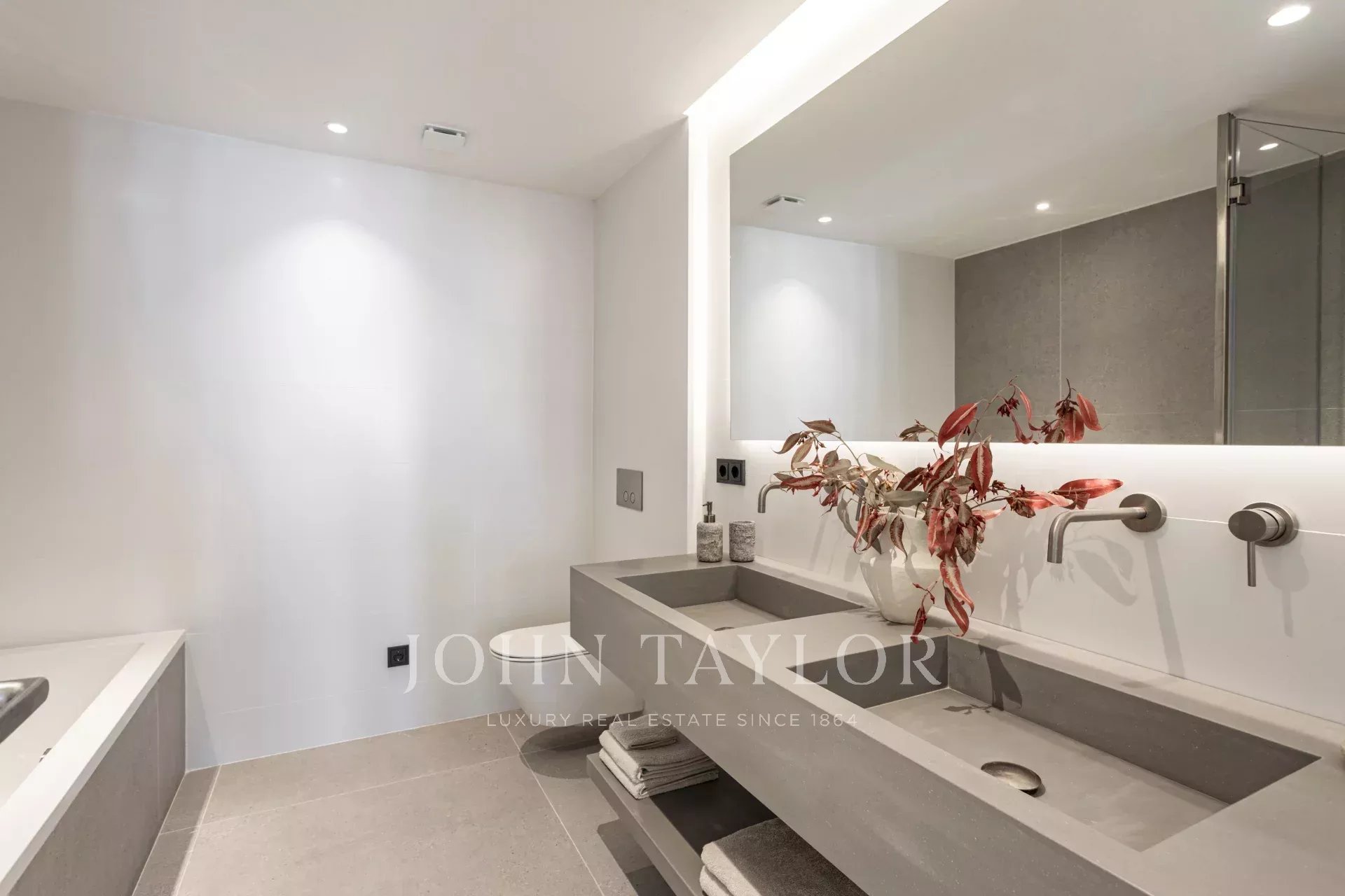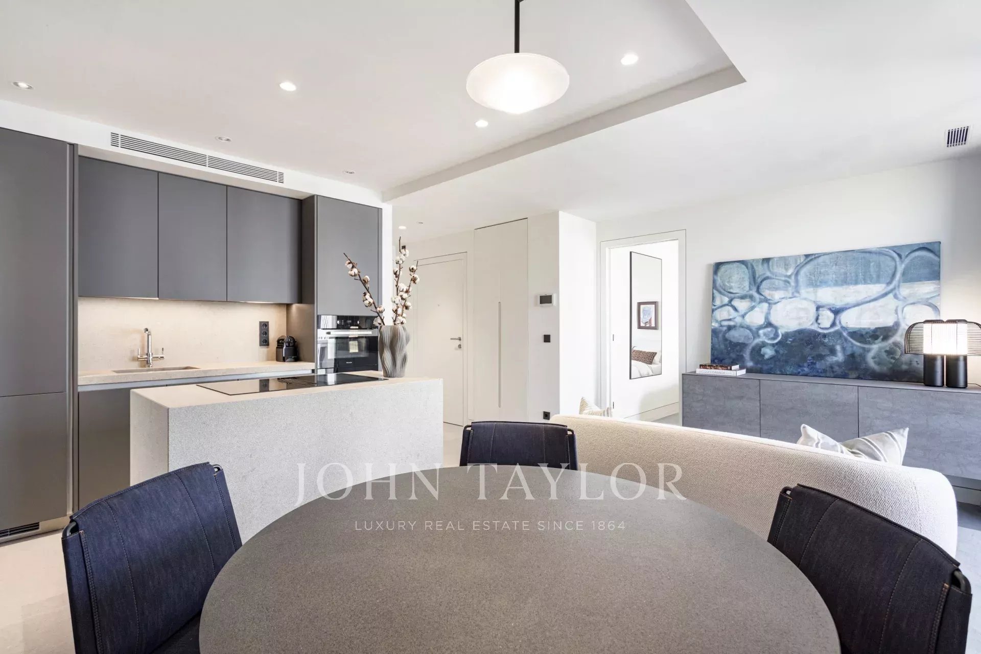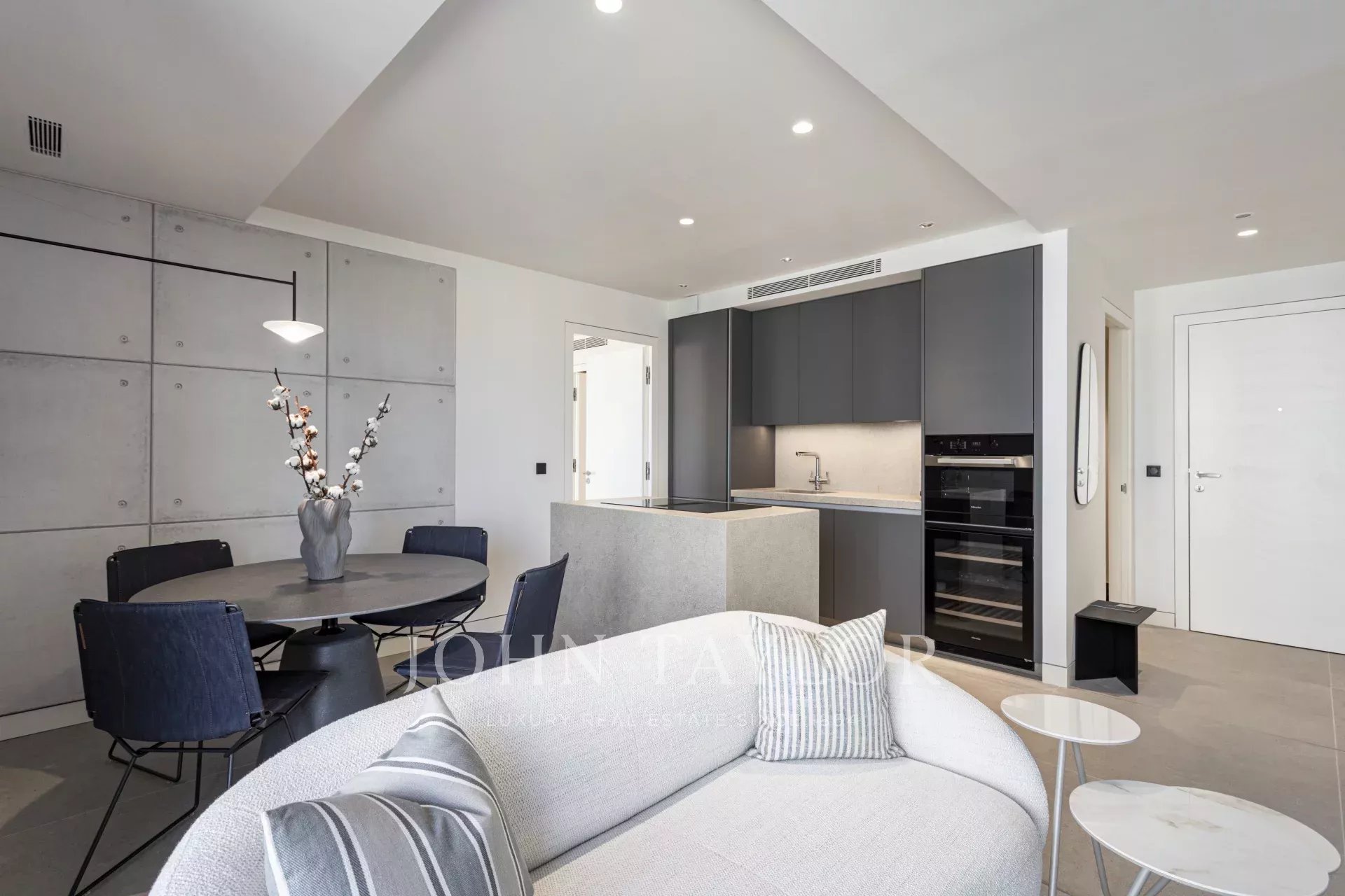 Entièrement meublé et décoré par le studio Creative Interior Design, cet appartement clé en main comprend un système de maison intelligente, des stores automatisés, une télévision, un réfrigérateur à vin, un réfrigérateur, un micro-ondes, un four, une plaque de cuisson, un lave-linge, un lave-vaisselle et un système de purification de l'eau.