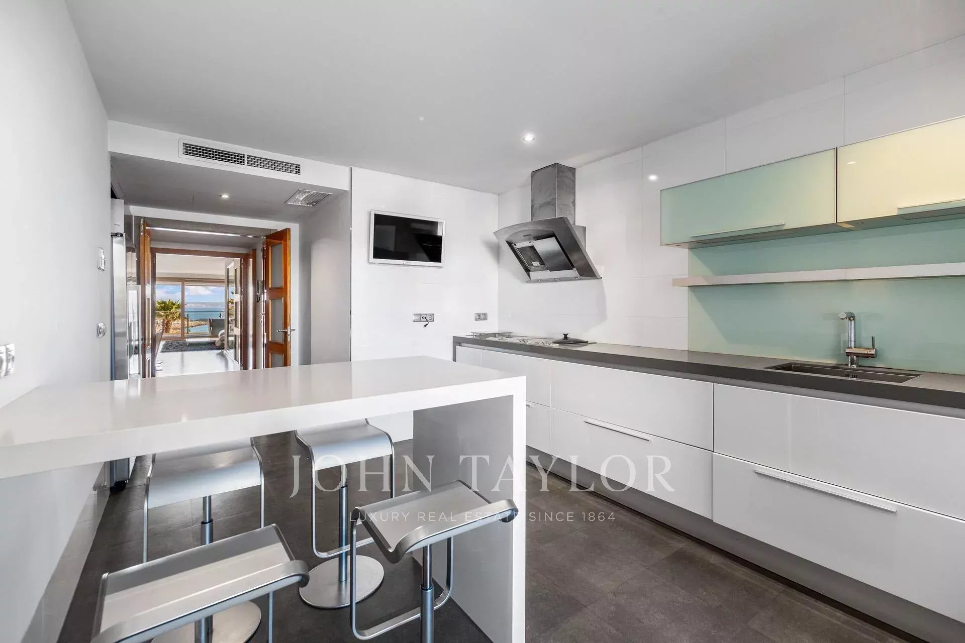 Cet appartement spectaculaire situé sur le front de mer de Portixol allie tout le confort moderne à un design moderne ouvert sur les magnifiques vues sur la mer qu'offre la maison, avec toute la baie de Palma et le charmant port comme véritable cadre de luxe. Le quartier de Portixol jouit d'une excellente situation dans la capitale de Majorque, avec la mer à ses pieds et à seulement 15 minutes de marche du centre historique de Palma. Il dispose d'un grand choix de restaurants proposant la meilleure cuisine méditerranéenne et de célèbres clubs de plage installés sur le sable, ainsi que d'un accès direct à la seule plage de sable de Palma. Il s'agit d'un appartement spacieux avec des lignes modernes et des espaces inondés par une grande entrée de lumière naturelle, il a 230 m2 où des matériaux de première qualité ont été utilisés. Il est distribué en quatre grandes chambres à coucher avec des armoires encastrées et la principale avec un dressing, trois salles de bains, l'une d'elles en suite et une toilette de courtoisie. Une seule surface est occupée par le salon-salle à manger, avec de grandes fenêtres qui permettent une grande entrée de lumière et nous donnent accès à la fantastique terrasse de 30 m2 avec des vues incroyables sur la mer. La cuisine spacieuse est aménagée de manière indépendante, entièrement équipée, et dispose d'une buanderie en plus d'avoir une autre terrasse arrière. Il convient de noter que la maison fait partie d'un complexe exclusif qui nous offre deux magnifiques piscines communes, une aire de jeux, un court de paddle, une sécurité 24 heures sur 24, un parking souterrain et une salle de stockage.