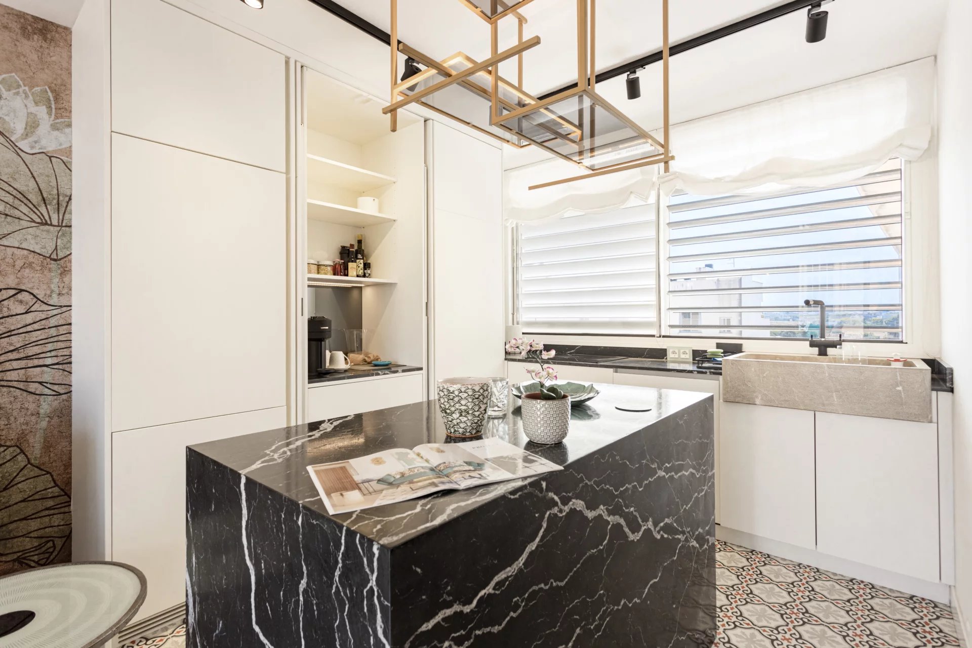 Cet appartement exclusif est doté d'équipements haut de gamme, tels que le chauffage par le sol, la climatisation, un système d'eau osmosée, des auvents électriques, un refroidisseur à vin, des appareils Miele, des toilettes avec douche à la japonaise, un système d'alarme et un ascenseur. Un garage privé est également inclus, ainsi que le mobilier.