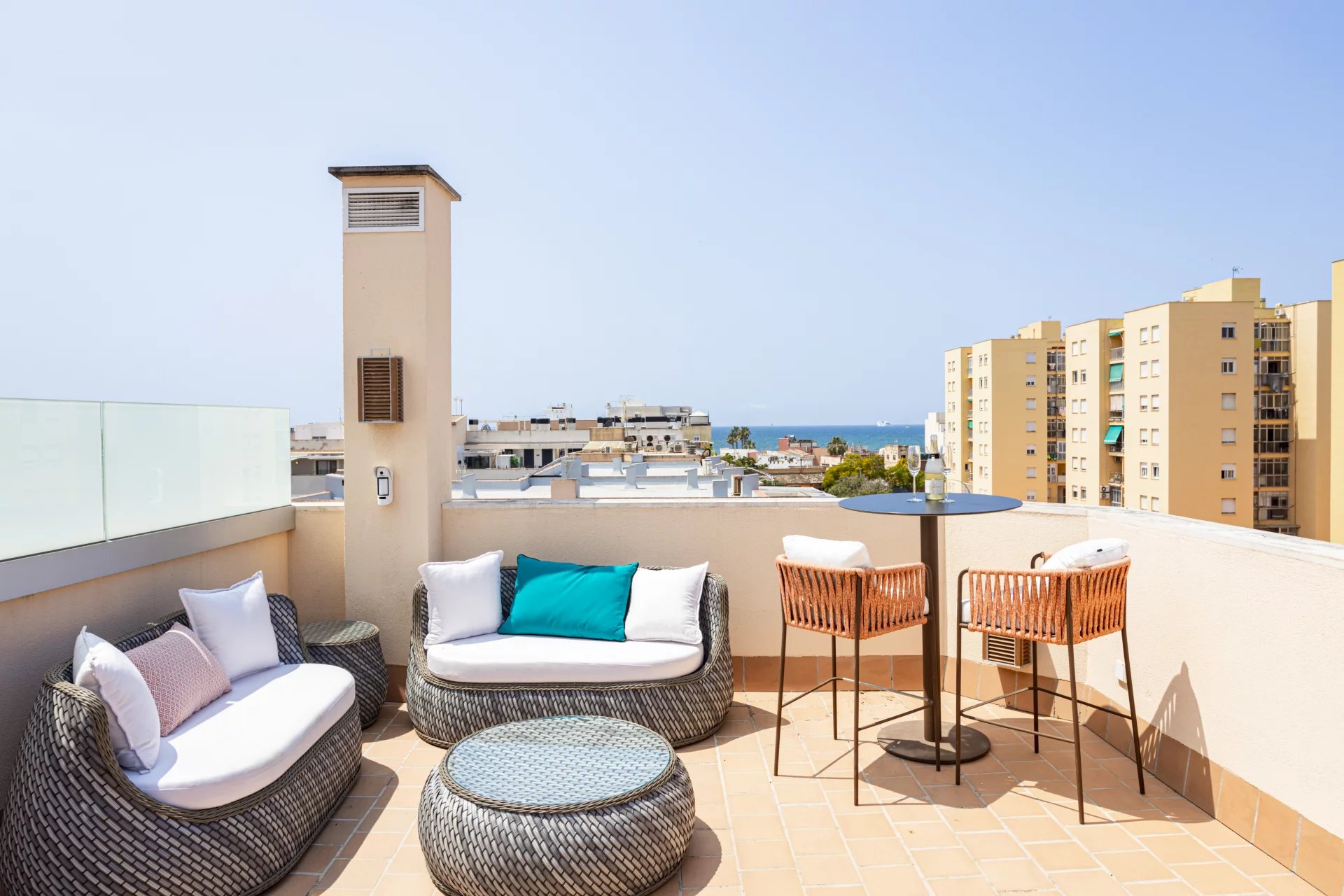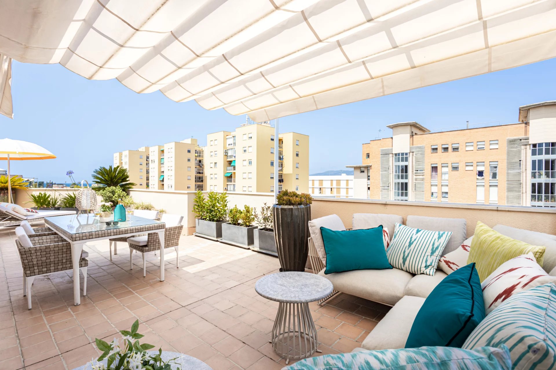 Le point fort de ce penthouse de luxe à Palma est sa vaste terrasse sur le toit, qui comprend une cuisine extérieure entièrement équipée, un grill de qualité professionnelle et plusieurs espaces de détente. De là, vous pourrez profiter de vues panoramiques sur la mer et recevoir des invités.