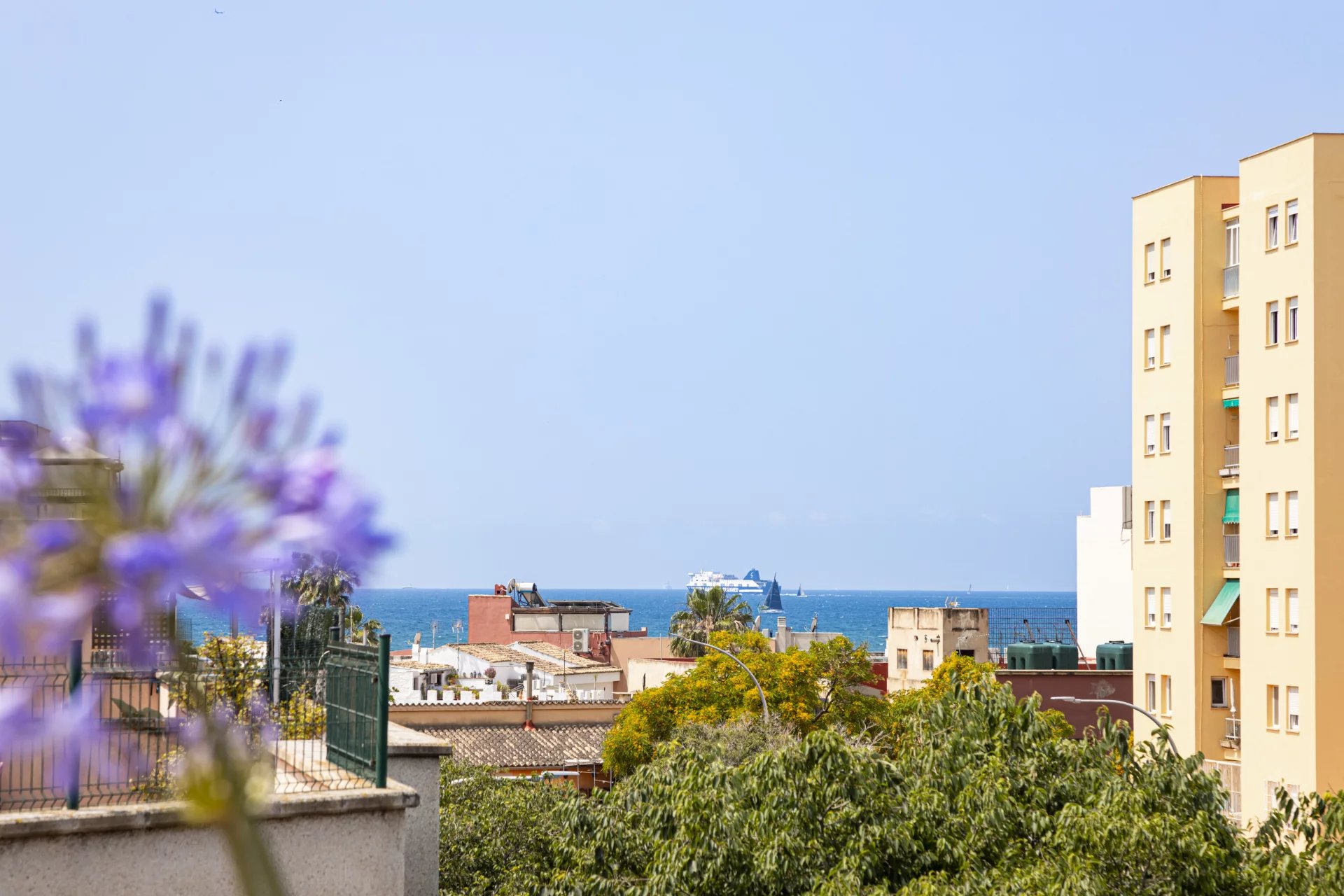 L'intérieur comprend un salon et une salle à manger ouverts, avec de grandes fenêtres qui inondent l'espace de lumière naturelle. La chambre principale est spacieuse, tandis que la deuxième chambre est actuellement utilisée comme bureau à domicile, ce qui permet de travailler à distance. La terrasse inférieure offre une vue partielle sur la mer et une atmosphère paisible à quelques pas de la Méditerranée.