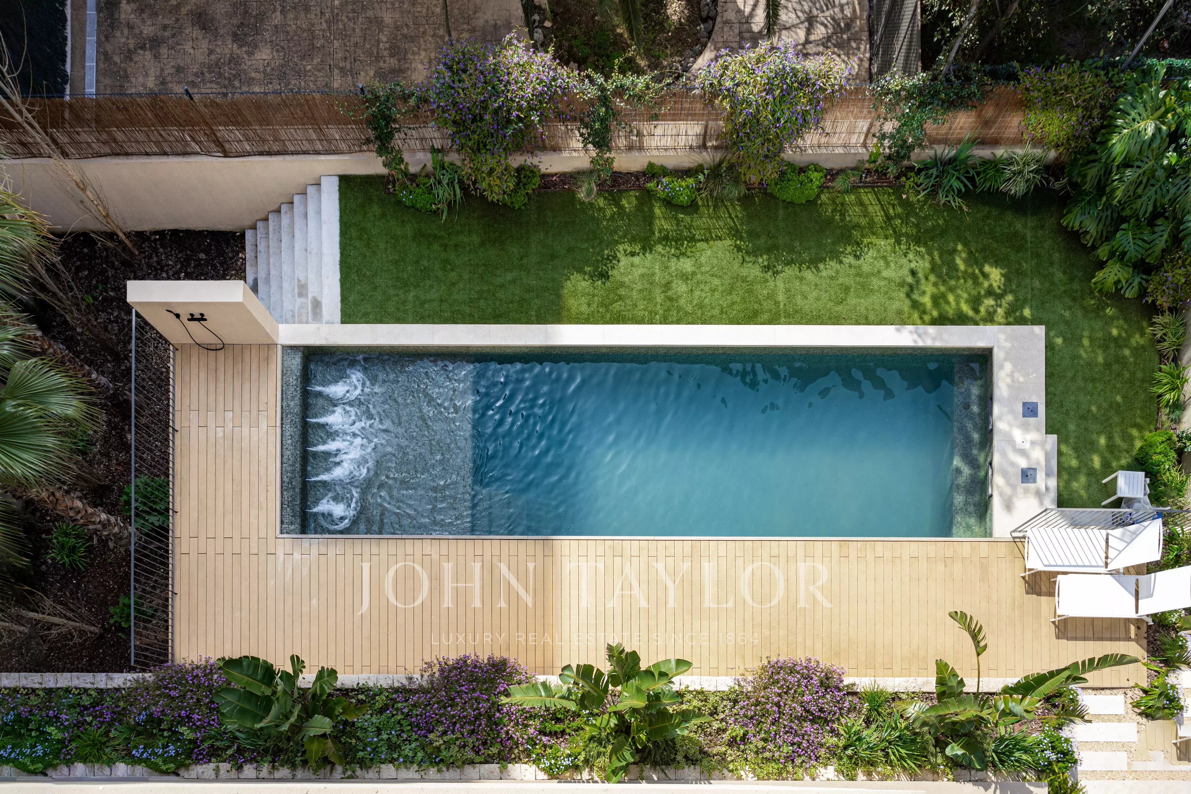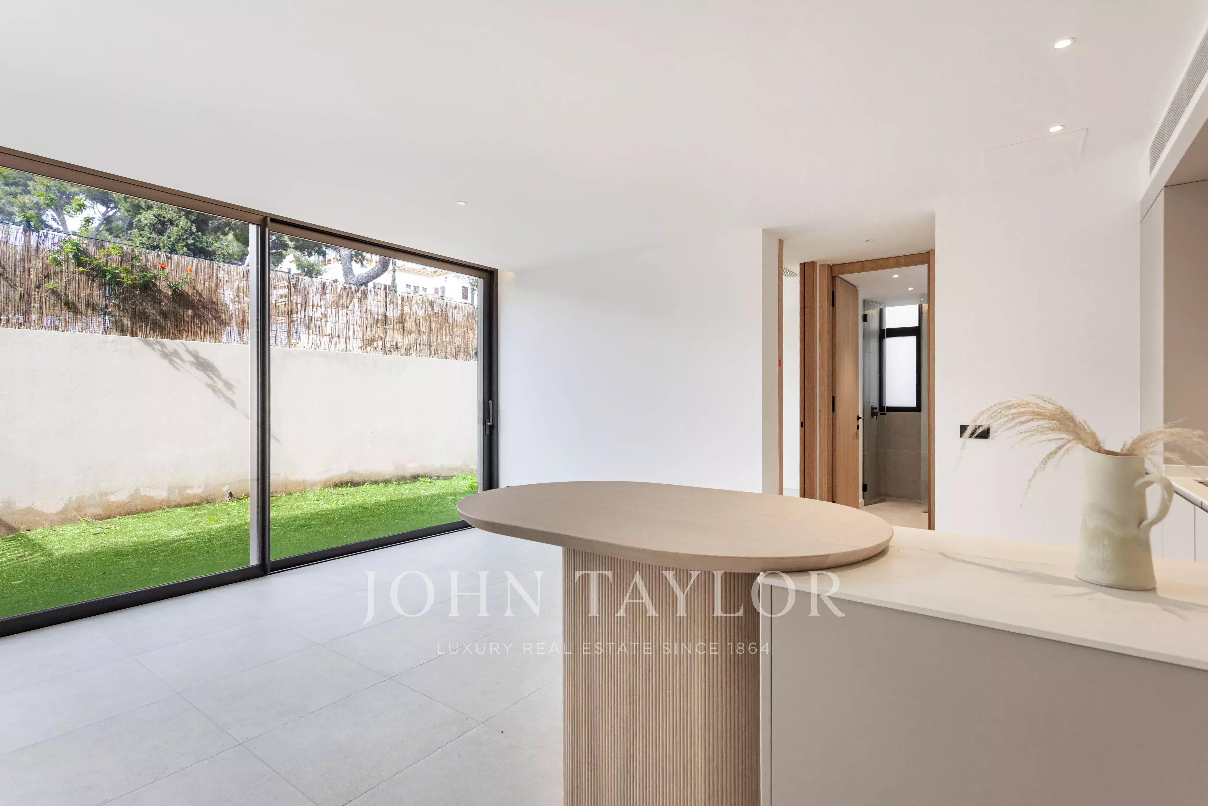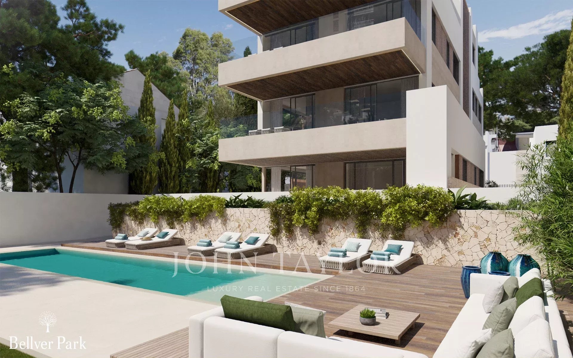 Cet appartement situé au rez-de-chaussée dispose d'un grand jardin orienté au sud, ce qui donne l'impression d'être dans une maison plutôt que dans un appartement. Il est légèrement surélevé, de sorte que vous n'êtes pas au niveau de la piscine communautaire, mais vous avez un accès direct à l'espace piscine depuis le jardin. Cet appartement de trois chambres et deux salles de bains offre 93 m2 de surface habitable intérieure et 75 m2 de jardin extérieur. Une place de parking souterrain et une salle de stockage sont incluses dans le prix. Il y a une liste d'extras où vous pouvez ajouter une pergola, un jacuzzi, ou des arbres et des plantes supplémentaires.