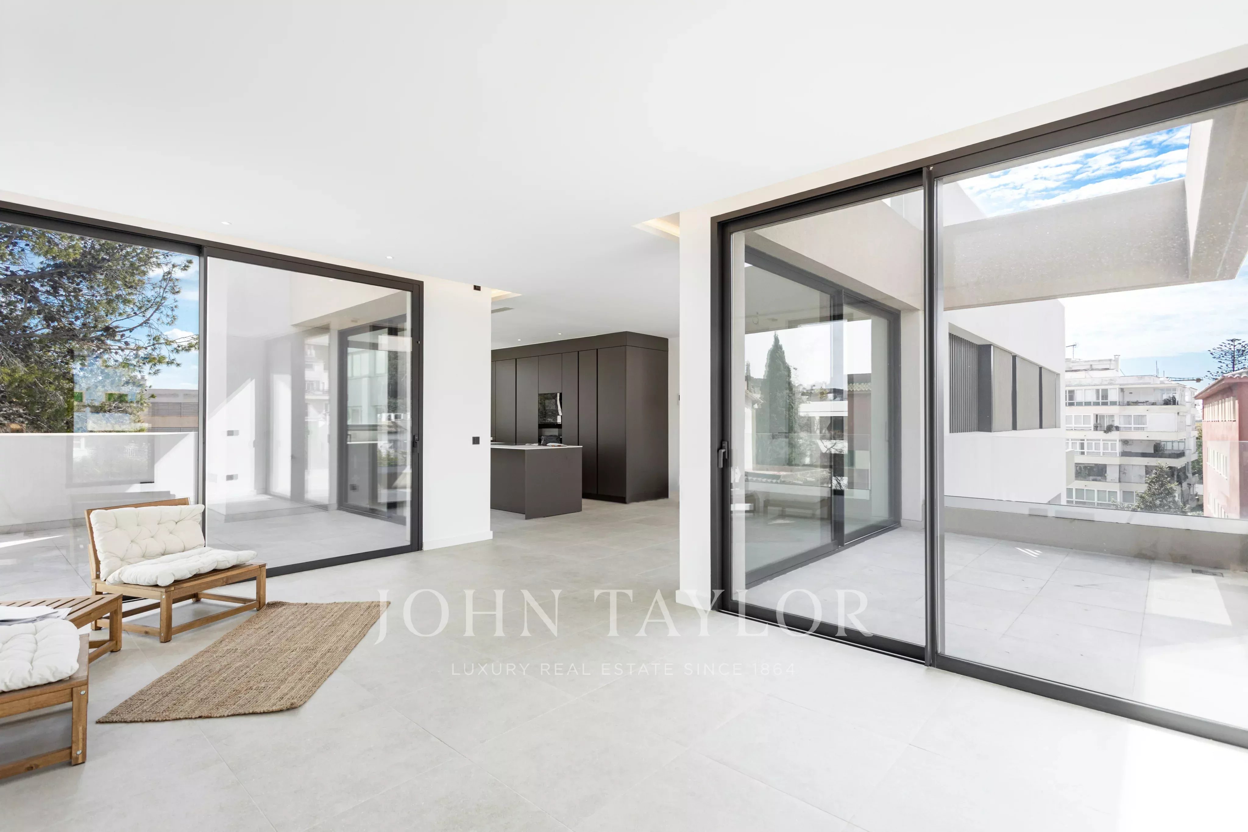 Le penthouse est un mélange parfait de vie intérieure et extérieure et comprend une terrasse privée sur le toit avec une piscine, un barbecue et un coin salon. La surface habitable intérieure est de 144 m2 et comprend 3 chambres, 2 salles de bains, une cuisine ouverte, une salle à manger et un salon, ainsi qu'une buanderie séparée. Les terrasses extérieures totalisent 220 m2, couvertes ou non. L'appartement est équipé d'un chauffage par le sol et d'une climatisation, d'un éclairage indirect, de sols en pierre et en bois, et tous les matériaux utilisés pour la salle de bains, la cuisine et les sols proviennent de Porcelanosa. Deux places de parking souterrain et un espace de stockage sont inclus dans le prix.