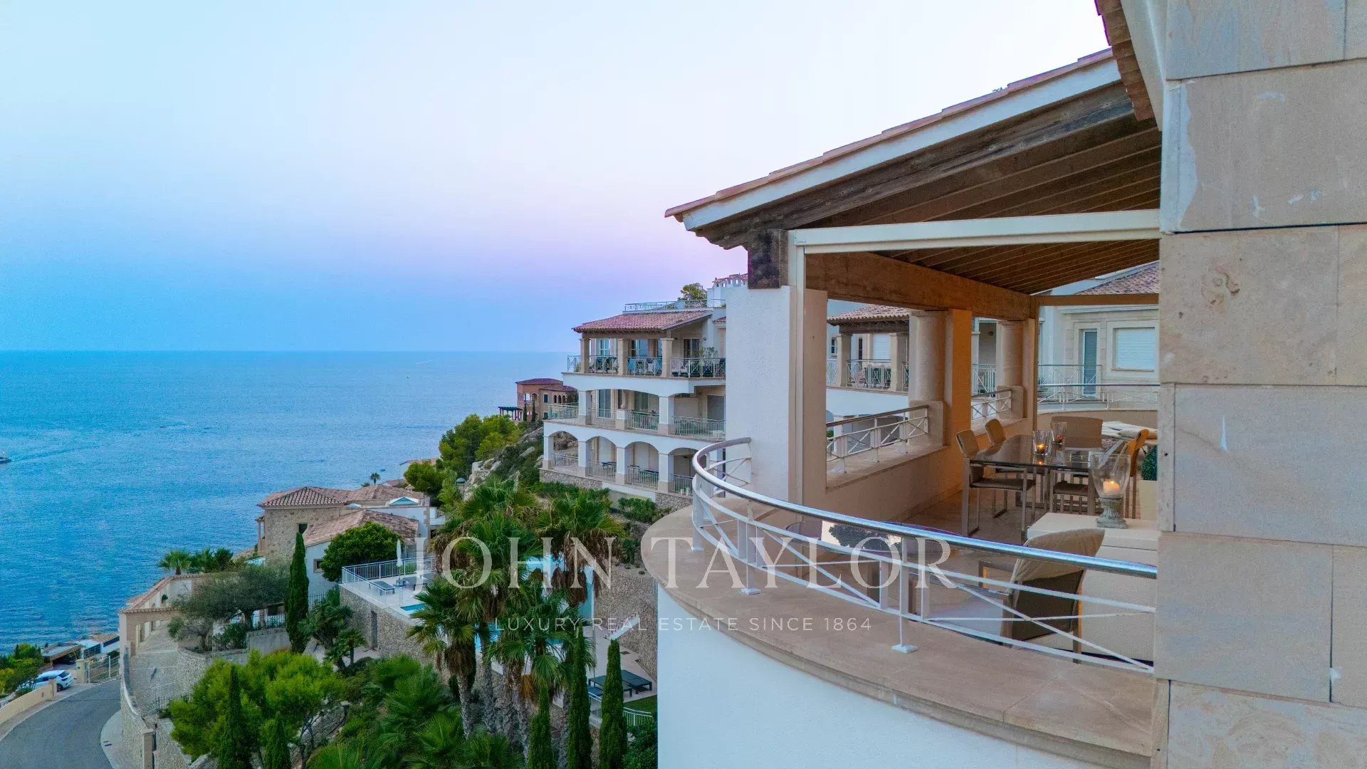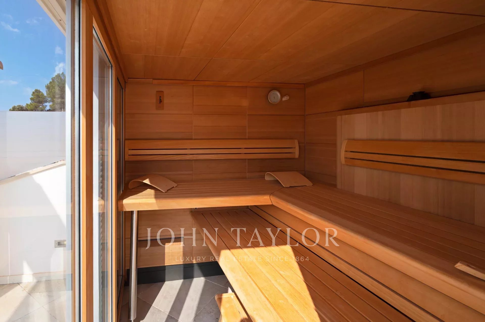 Parmi les caractéristiques qui font la différence, citons la terrasse qui vous invite à vous détendre tout en contemplant des vues à couper le souffle, ainsi que les deux piscines communes idéalement conçues pour les loisirs et le bien-être. En outre, la propriété comprend une pré-installation pour une cuisine extérieure, un sanarium KLAFS combinant sauna et bain de vapeur avec vue sur la mer, et une installation domotique KNX qui contrôle l'éclairage, l'air conditionné et le chauffage, assurant un confort maximal et une efficacité énergétique.