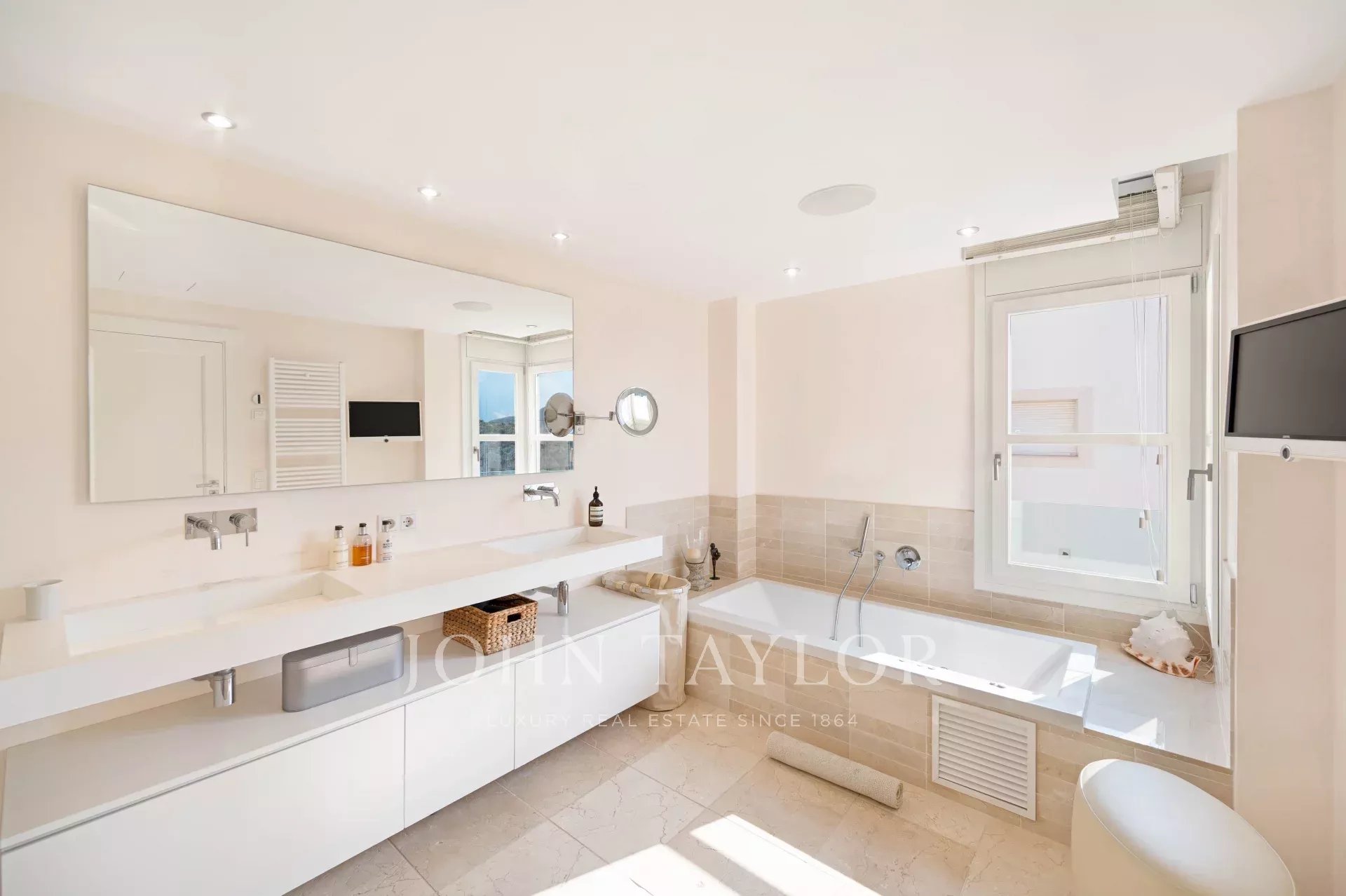 Avec un agencement impeccable, le penthouse dispose de 3 chambres spacieuses, chacune avec sa propre salle de bains, et d'un élégant WC pour les invités. Le salon et la salle à manger spacieux, reliés à une cuisine ouverte moderne équipée d'appareils haut de gamme Liebherr et Miele, créent l'ambiance parfaite pour les réunions de famille et les moments inoubliables.