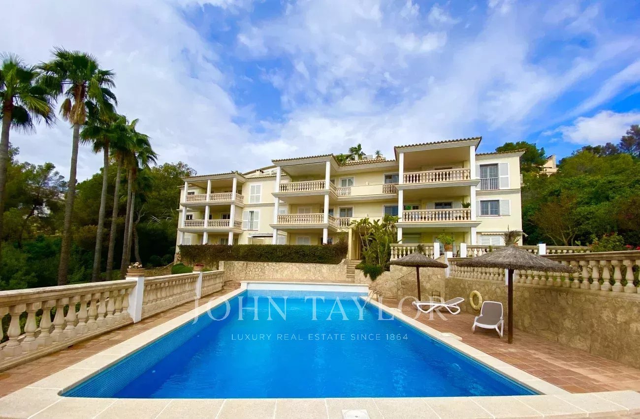 Situé dans une communauté fermée distinguée dans la prestigieuse enclave de Portals Nous, cet élégant appartement offre une combinaison impeccable de sophistication, de confort et d'intimité. Son salon spacieux, agrémenté d'une cheminée accueillante, s'ouvre harmonieusement sur une terrasse privée offrant des vues panoramiques sur les jardins communs luxuriants et la piscine, offrant ainsi un cadre serein et exclusif. La cuisine moderne, équipée d'appareils haut de gamme et conçue dans des tons neutres, est complétée par une buanderie séparée très pratique. Une charmante salle de petit-déjeuner ajoute une touche confortable et fonctionnelle, avec un accès direct au salon et à la cuisine. L'agencement de la propriété comprend deux chambres doubles spacieuses et une chambre simple. La suite principale, baignée de lumière naturelle, dispose d'un accès direct à une terrasse ensoleillée orientée au sud et d'une élégante salle de bains attenante. Une deuxième salle de bains, conçue avec des finitions de haute qualité, complète l'aménagement intérieur de cette propriété exceptionnelle. Conçu pour les plaisirs extérieurs, cet appartement dispose d'une généreuse terrasse privée, idéale pour se détendre ou partager des moments inoubliables dans un environnement d'une tranquillité absolue. La communauté soigneusement conçue offre une magnifique piscine entourée de terrasses, de parasols et de zones de jardin, créant une oasis de paix dans l'un des endroits les plus recherchés de Majorque. En outre, la propriété comprend une place de parking privée dans un garage souterrain, ce qui offre une commodité et une sécurité supplémentaires. Une opportunité unique pour ceux qui recherchent l'exclusivité, l'intimité et un emplacement imbattable au cœur de Portals Nous.