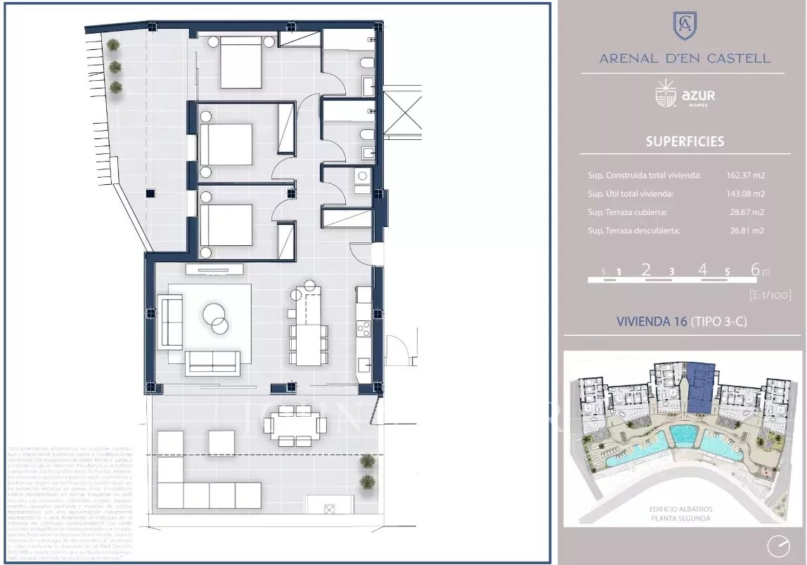 Si vous recherchez des vues imprenables sur la mer et un appartement moderne et luxueux, cette propriété pourrait être une opportunité en or. Ici, vous vivrez à seulement 200 mètres de la plage de S’Arenal d’en Castell, avec toutes les commodités nécessaires pour le bien-être tout au long de l’année. Vous trouverez des appartements de 1, 2 ou 3 chambres avec de grandes terrasses allant de 100 à 260 mètres carrés. L’espace de vie est généreux et extrêmement lumineux, vous permettant de profiter de l’environnement merveilleux depuis votre canapé. Après avoir profité des espaces intérieurs, vous aurez accès à des espaces communs comprenant une aire de jeux pour enfants, un espace de coworking, une piscine, une salle de sport et un spa. L’appartement dispose d’un garage et d’une débarras.